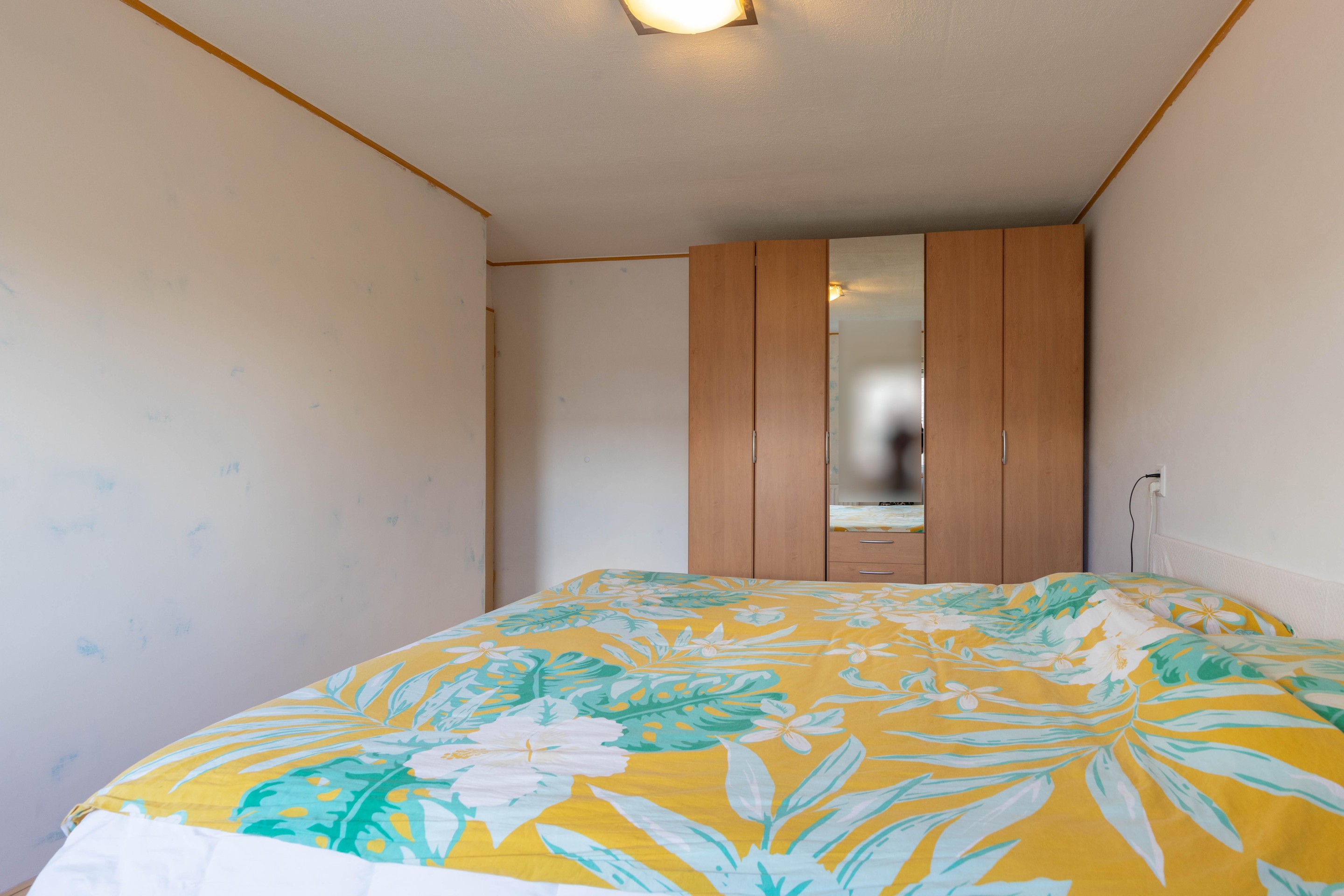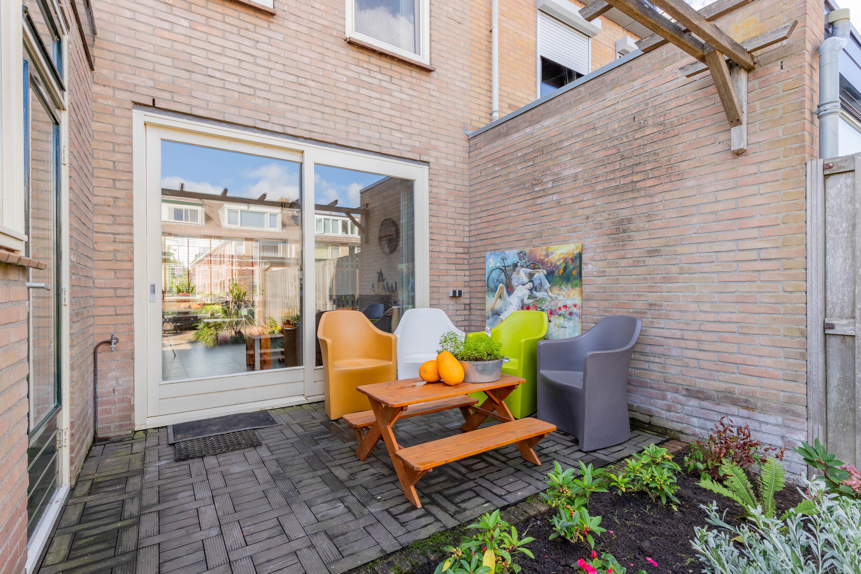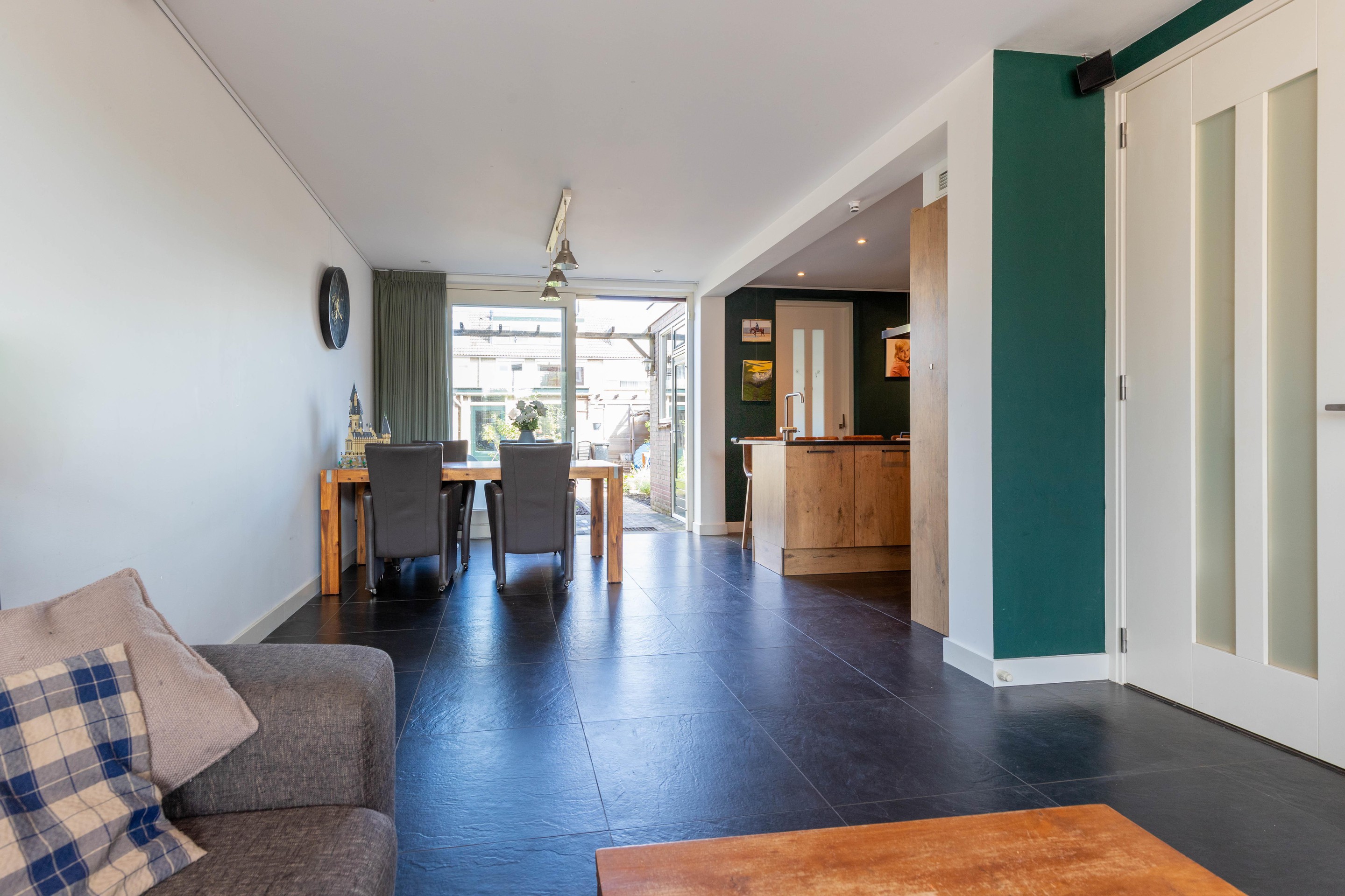 Aan de achterzijde van de woning is er via de schuifpui toegang tot de tuin, deze is ook te bereiken via de bijkeuken/kantoorruimte.