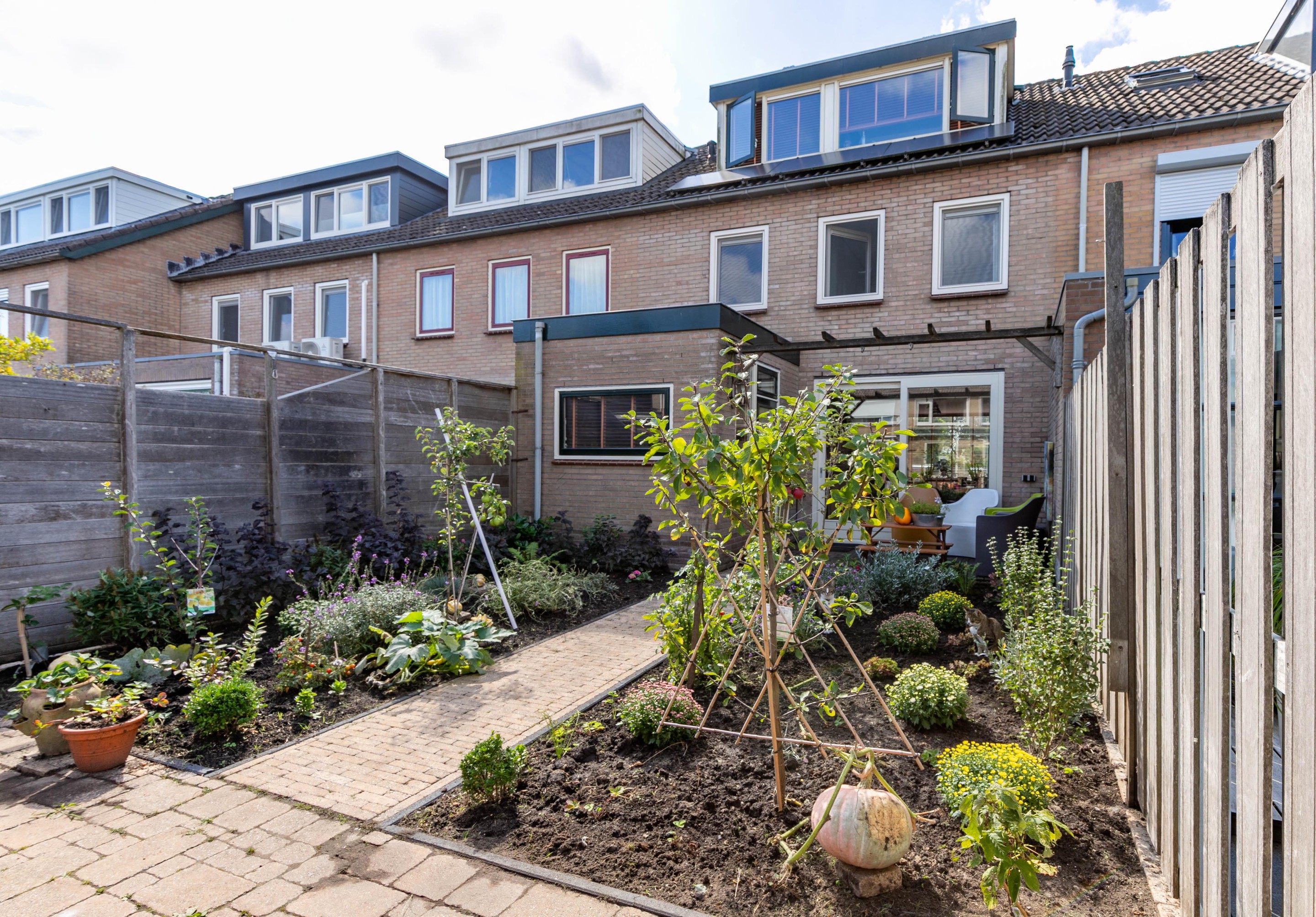 Tuin De achtertuin is een heerlijke plek om te genieten van rust en privacy. Met een diepte van bijna 15 meter is dit een heerlijke zonnige plek. daarnaast beschikt het over een achterom en een vrijstaande stenen berging van maar liefst 9m2.