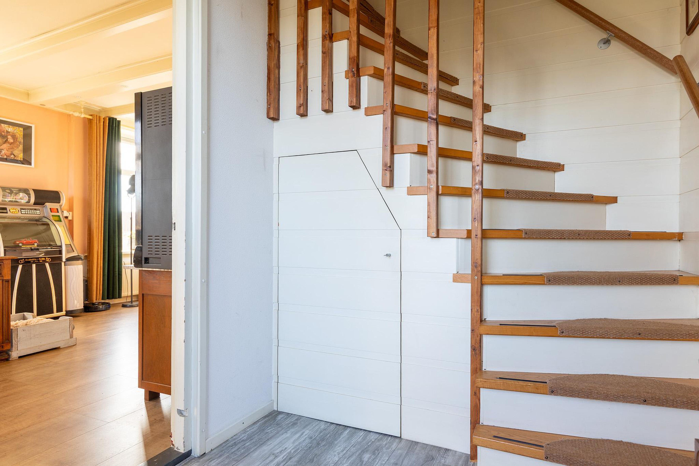 Via de trap in de hal kom je op de overloop. Vanaf hier zijn drie slaapkamers en de badkamer bereikbaar. Daarnaast bevindt zich op de overloop een praktische bergkast met de opstelplaats van de cv-ketel.