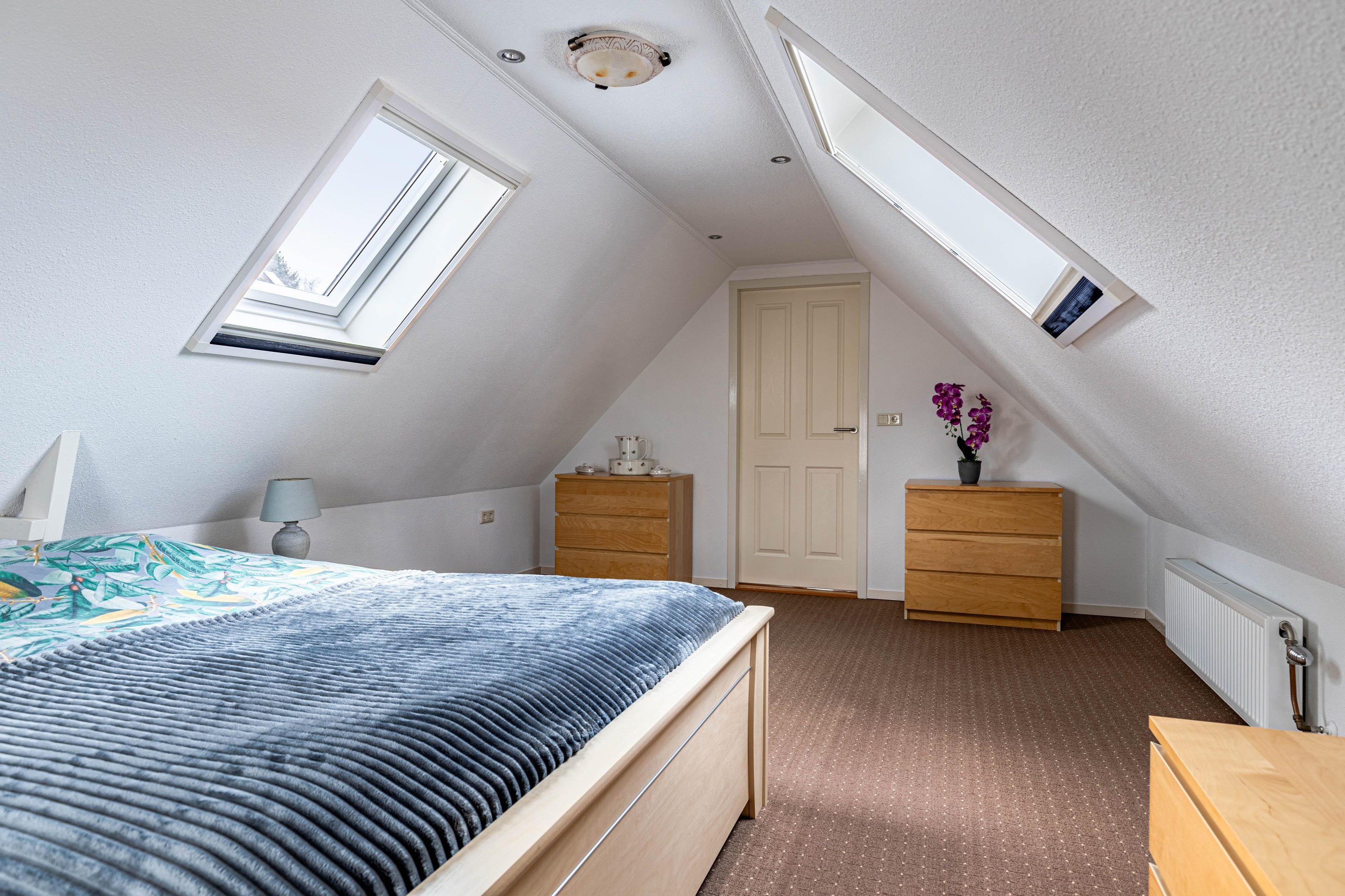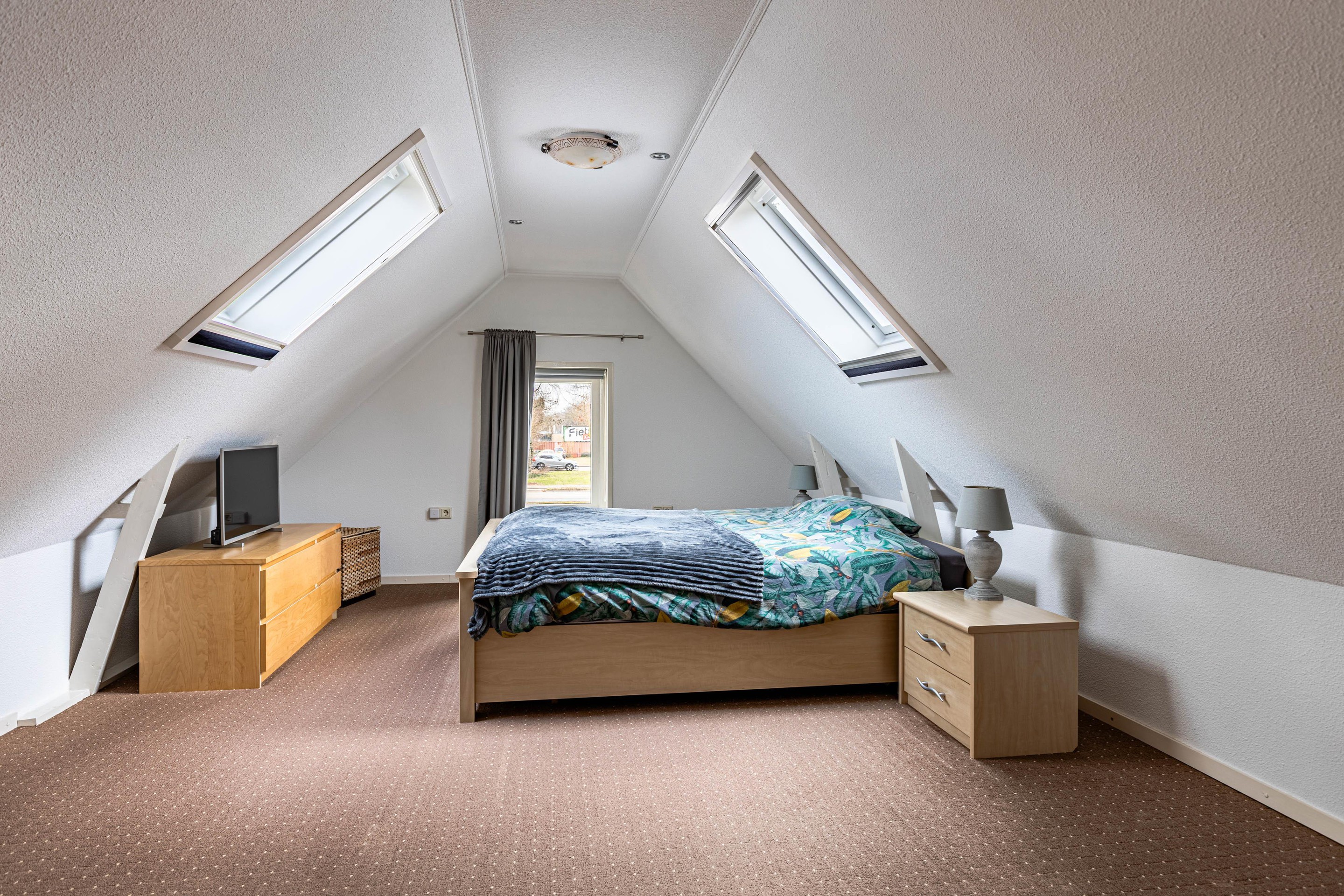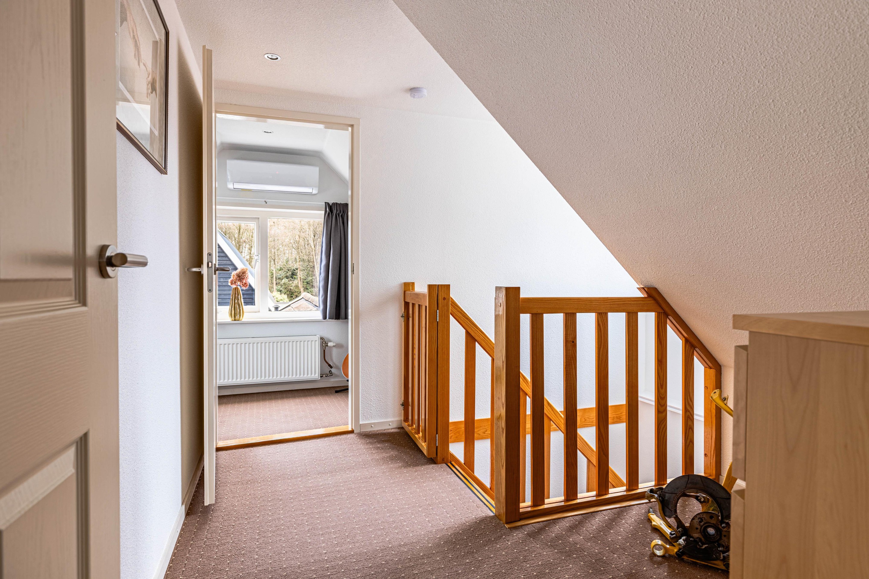 Overloop v.v. dakkapel, slaapkamer voorzijde v.v. twee dakramen, slaapkamer achterzijde v.v. grote dakkapel, airconditioning en bergruimte.