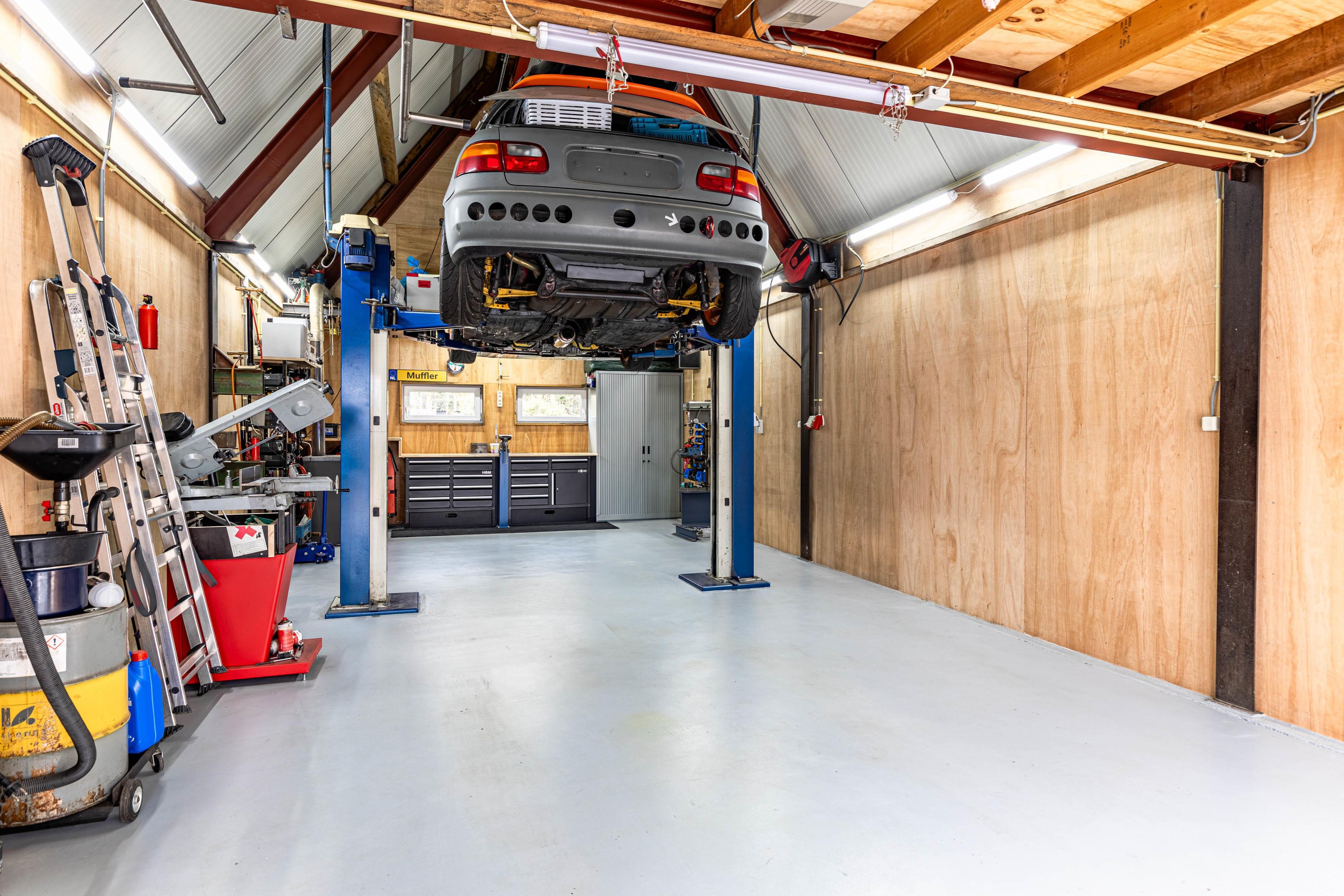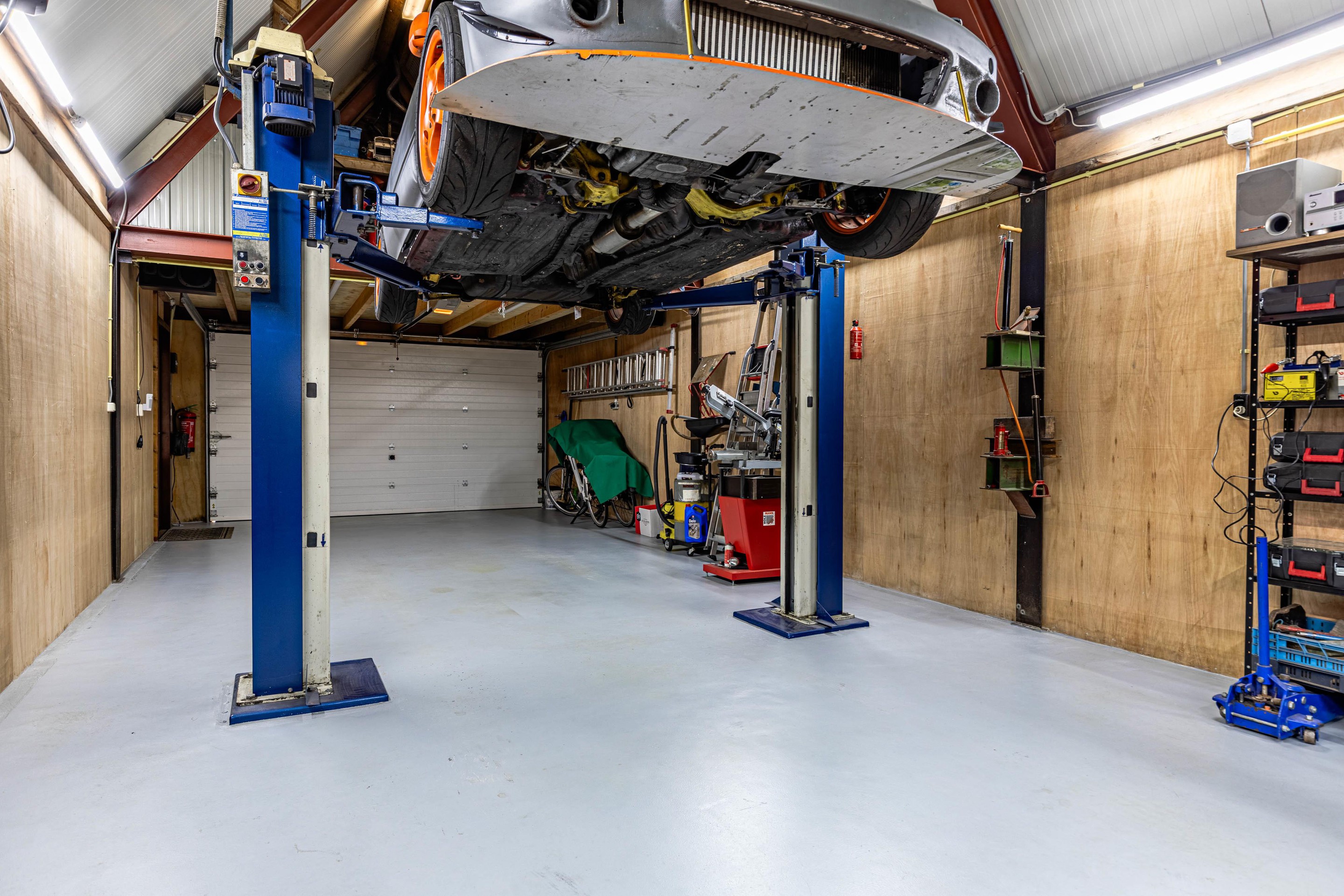 Sleutelt u graag aan auto's? De brug in de keurige geheel geïsoleerde garage staat al voor u klaar!