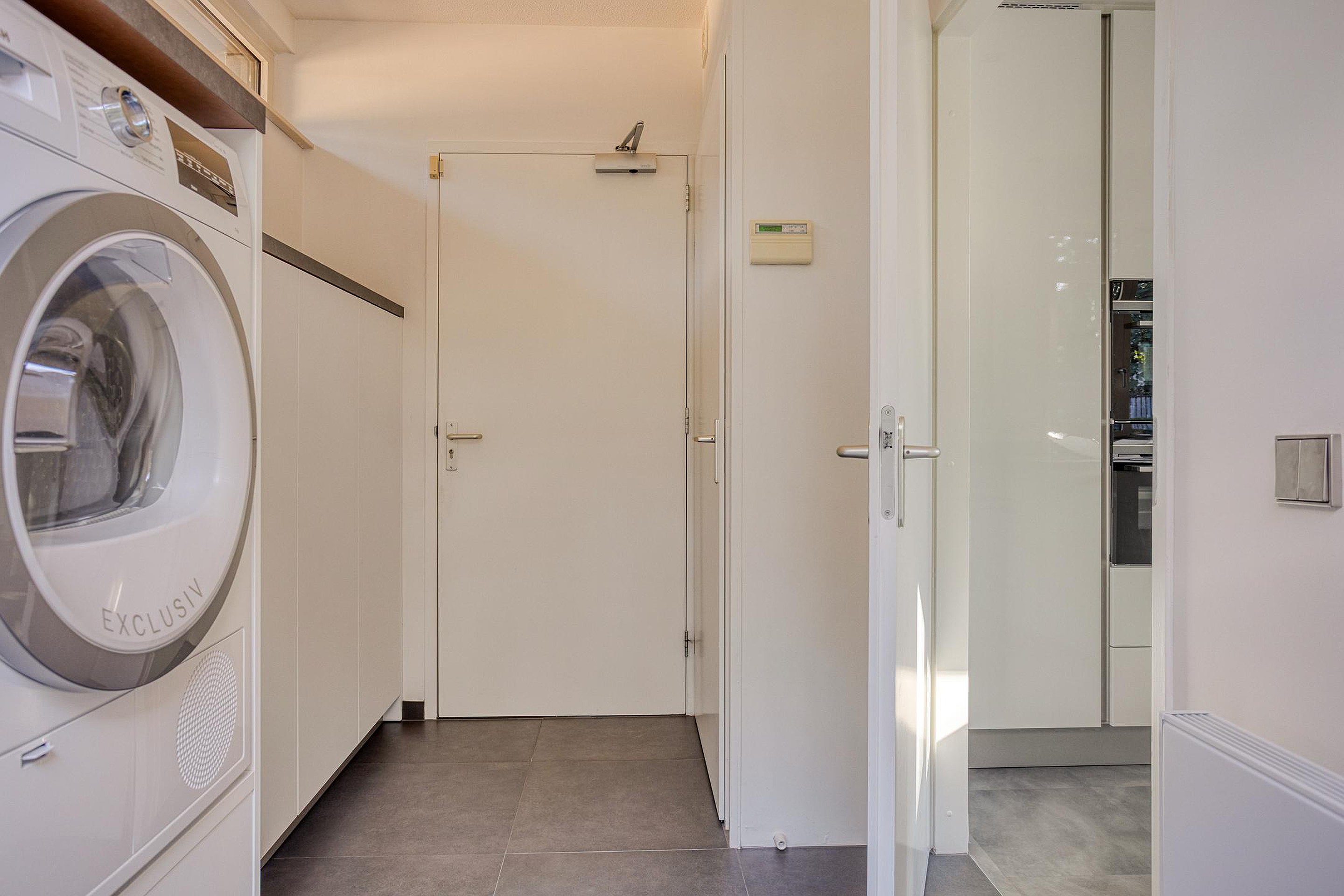 In de bijkeuken staan maatwerk kasten, met de wasmachine en droger op hoogte ingebouwd. Hier ligt een tegelvloer. Er is een aparte ruimte voor de ketel (2019, onderhoudscontract aanwezig). Vanuit de bijkeuken is er toegang tot de garage en de tuin.