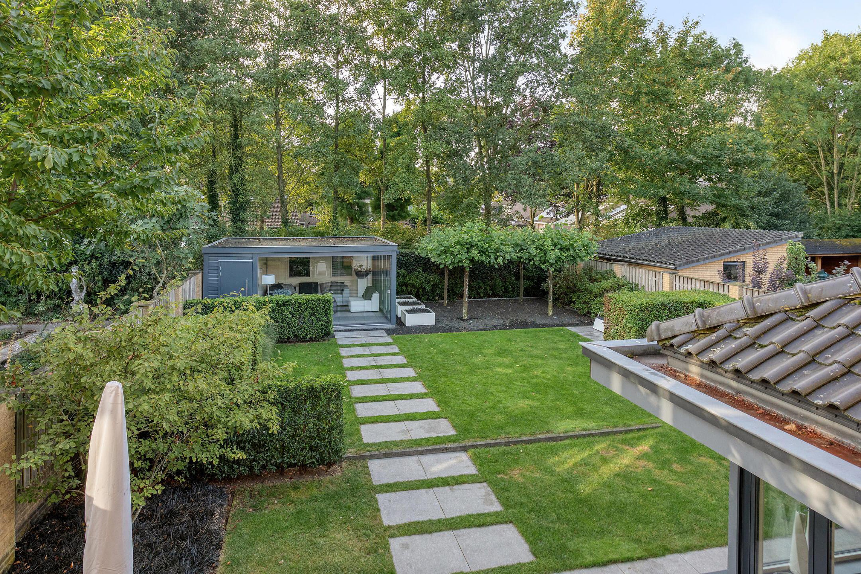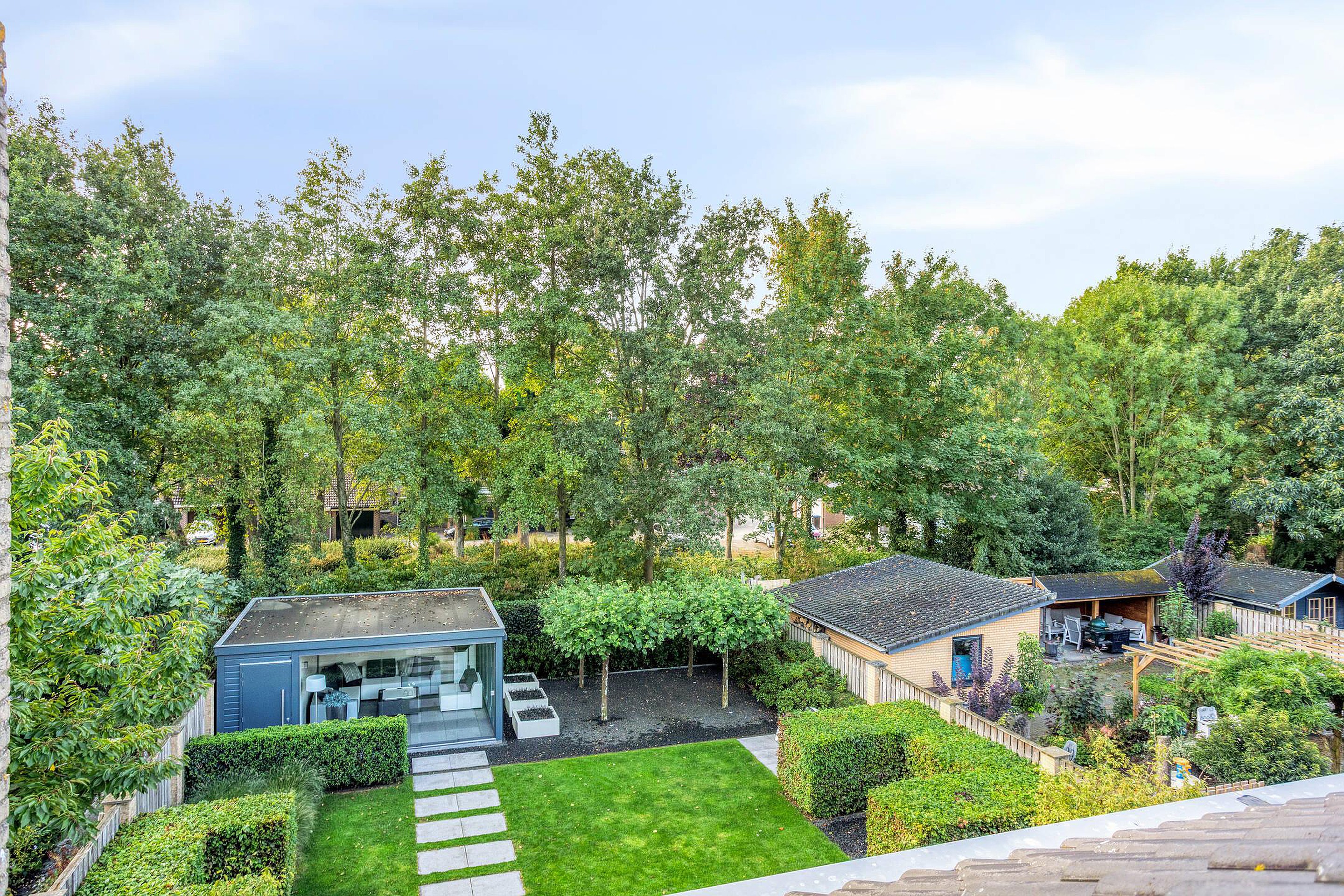 Buiten geniet je van een royale achtertuin op het zuiden, prachtig aangelegd onder architectuur en met volop privacy. Ook de voortuin is fraai en sluit mooi aan bij de uitstraling van de woning.