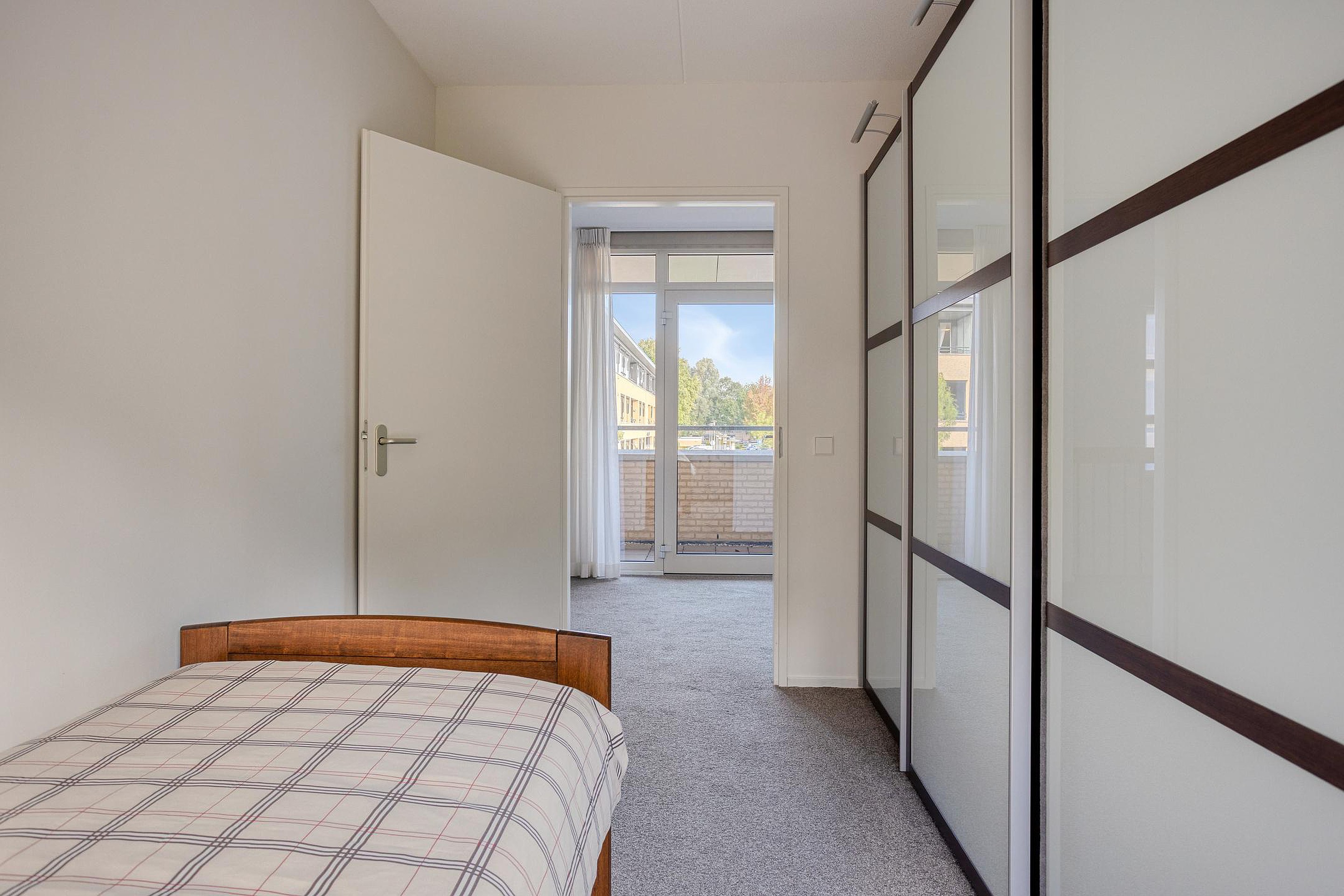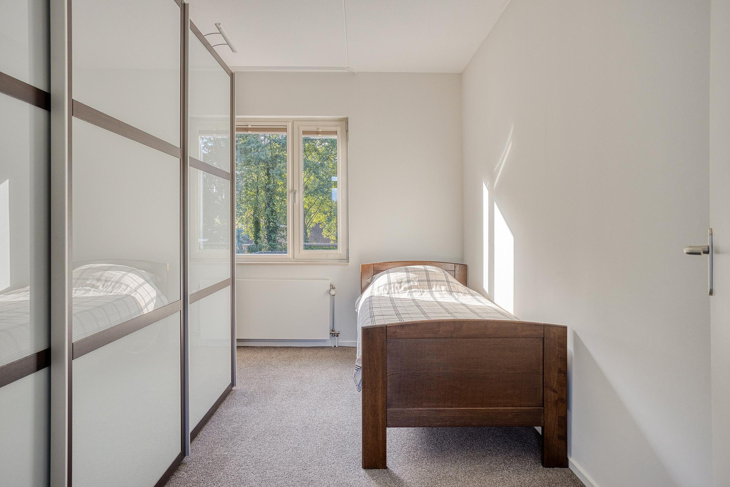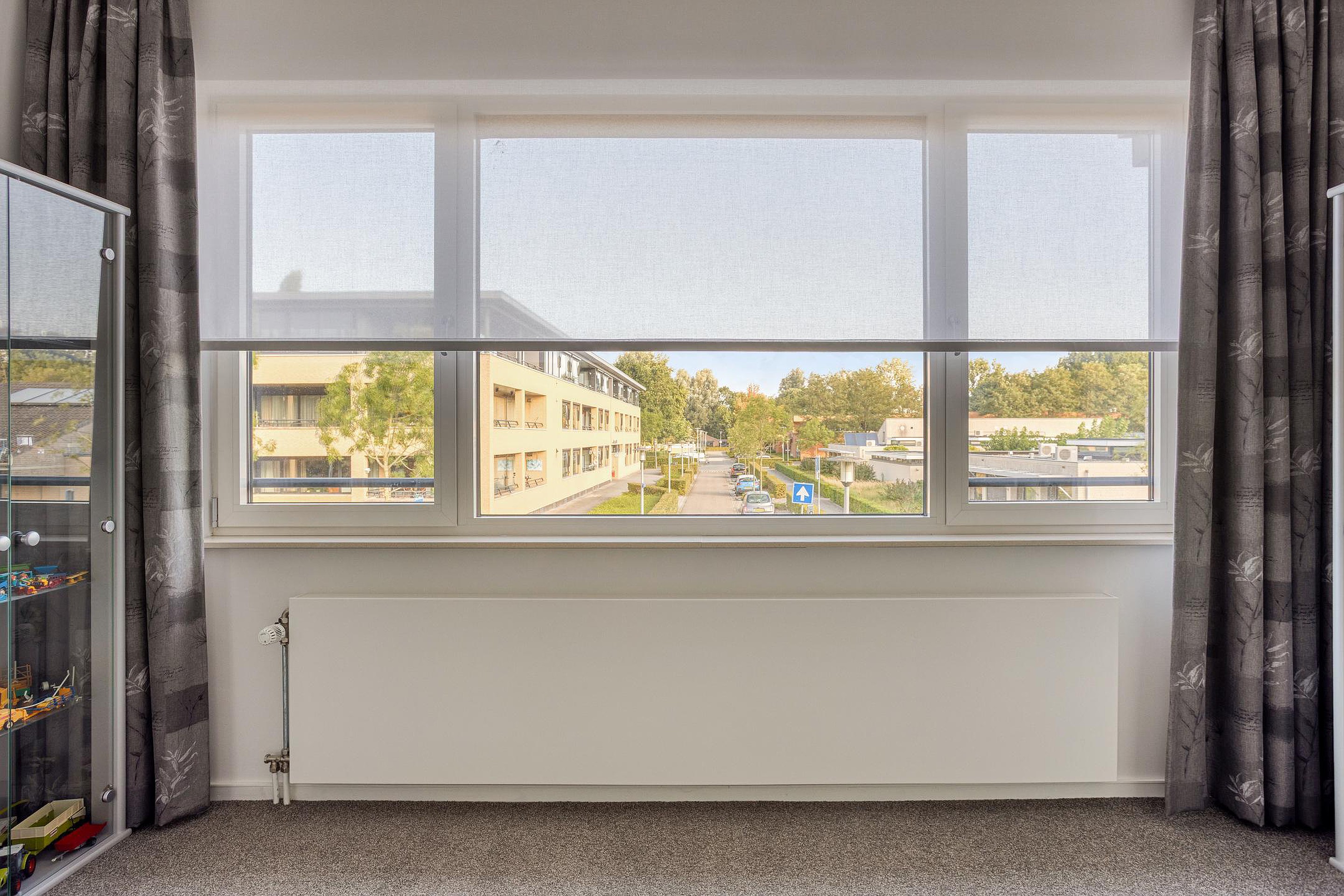 - SLAAPKAMER 3 (voorzijde): groot, met een breed raam en vrij uitzicht over de straat met laagbouw (bungalows). Momenteel in gebruik als werkkamer.