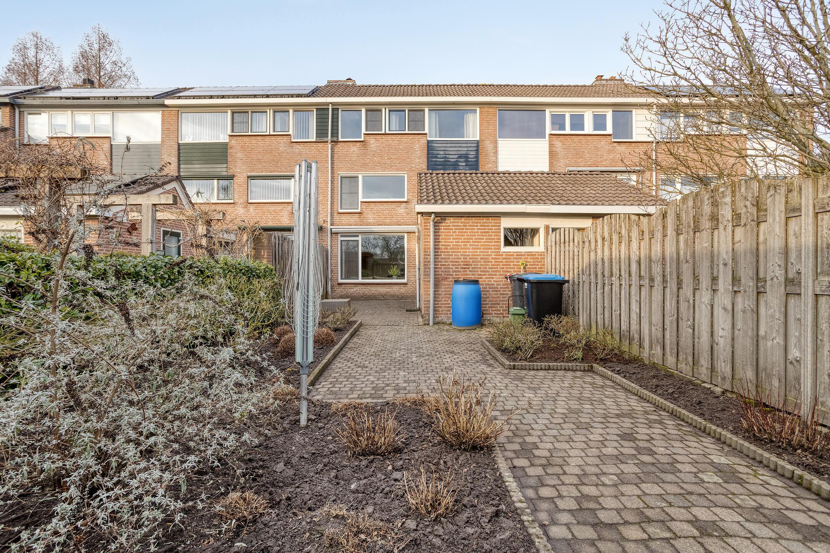 Ideaal gelegen tussenwoning met aanpandige berging en maar liefst 5 slaapkamers, gelegen in een kindvriendelijke woonwijk met veel groen en op loopafstand van de centrumvoorzieningen. Met een woonoppervlakte van circa 120 m2 heeft deze woning een gezellige woonkamer, een dichte keuken, 5 slaapkamers, een badkamer en veel bergruimte. De woning is gebouwd in 1978 en is voorzien van muur-, en dakisolatie, deels houten en deels kunststof kozijnen grotendeels met HR++ glas en heeft energielabel B. De woning wordt verwarmd middels een c.v. combiketel (Remeha Avanta 2013) en radiatoren. Het platte dak is vernieuwd in 2020. Het buitenschilderwerk dateert van 2023. De privacy biedende achtertuin is gelegen op het zuidzuidoosten en grenst aan de achterzijde aan een gemeenteplantsoen met waterloop, speelvelden en fiets-/wandelpaden.
