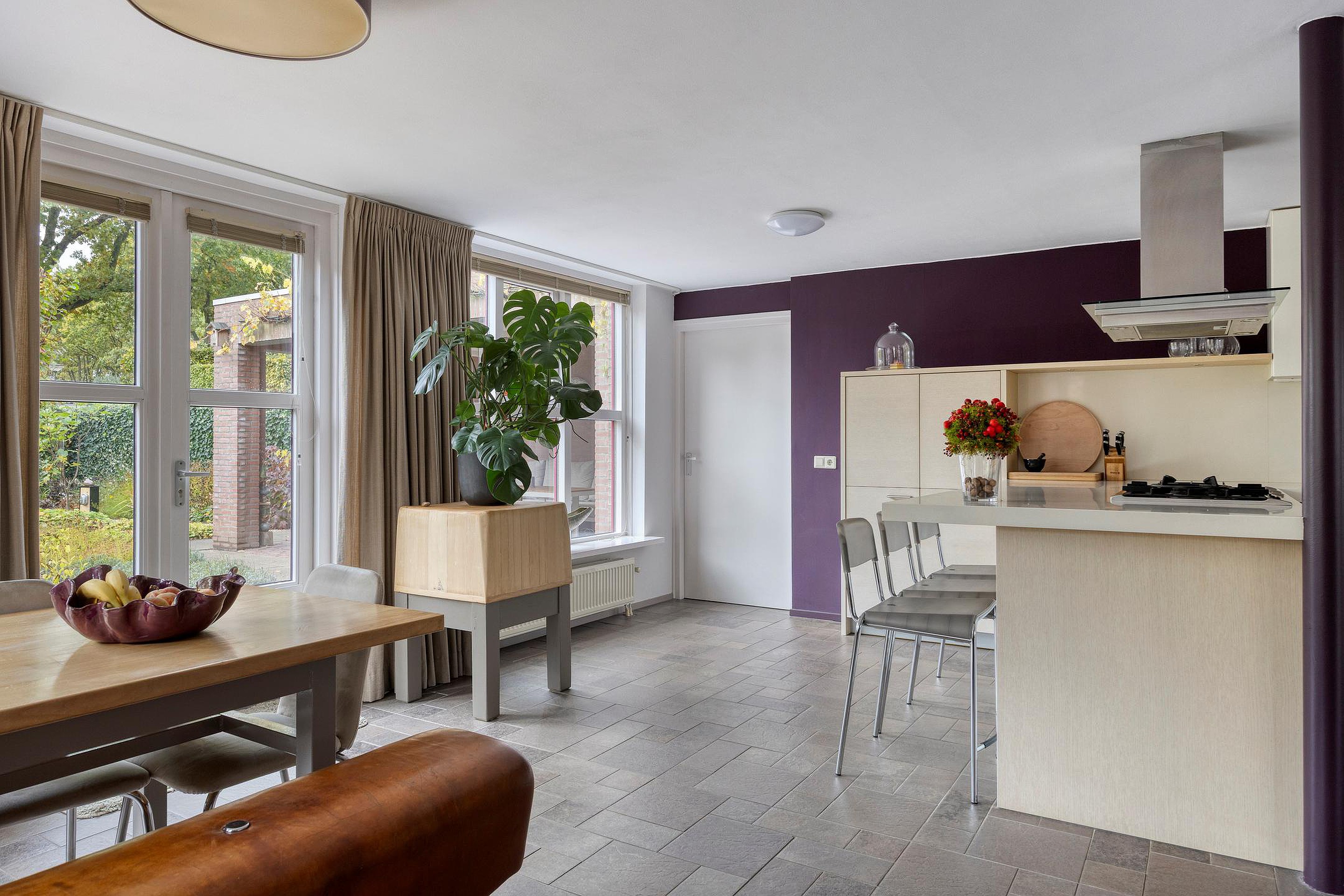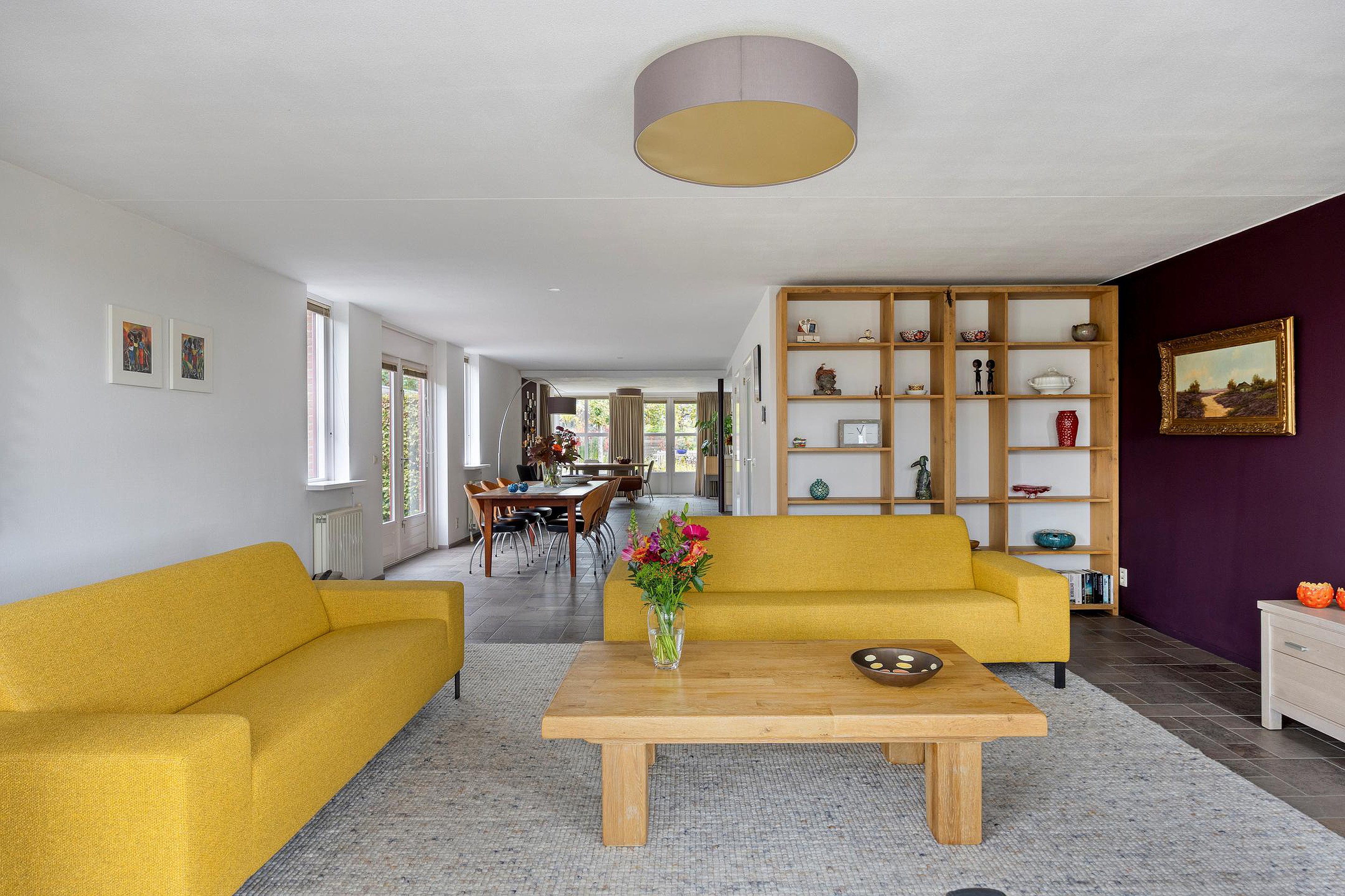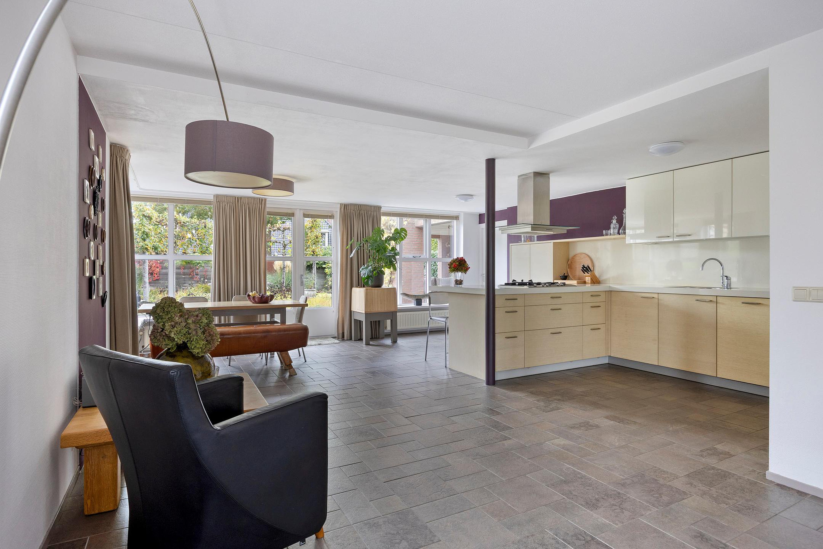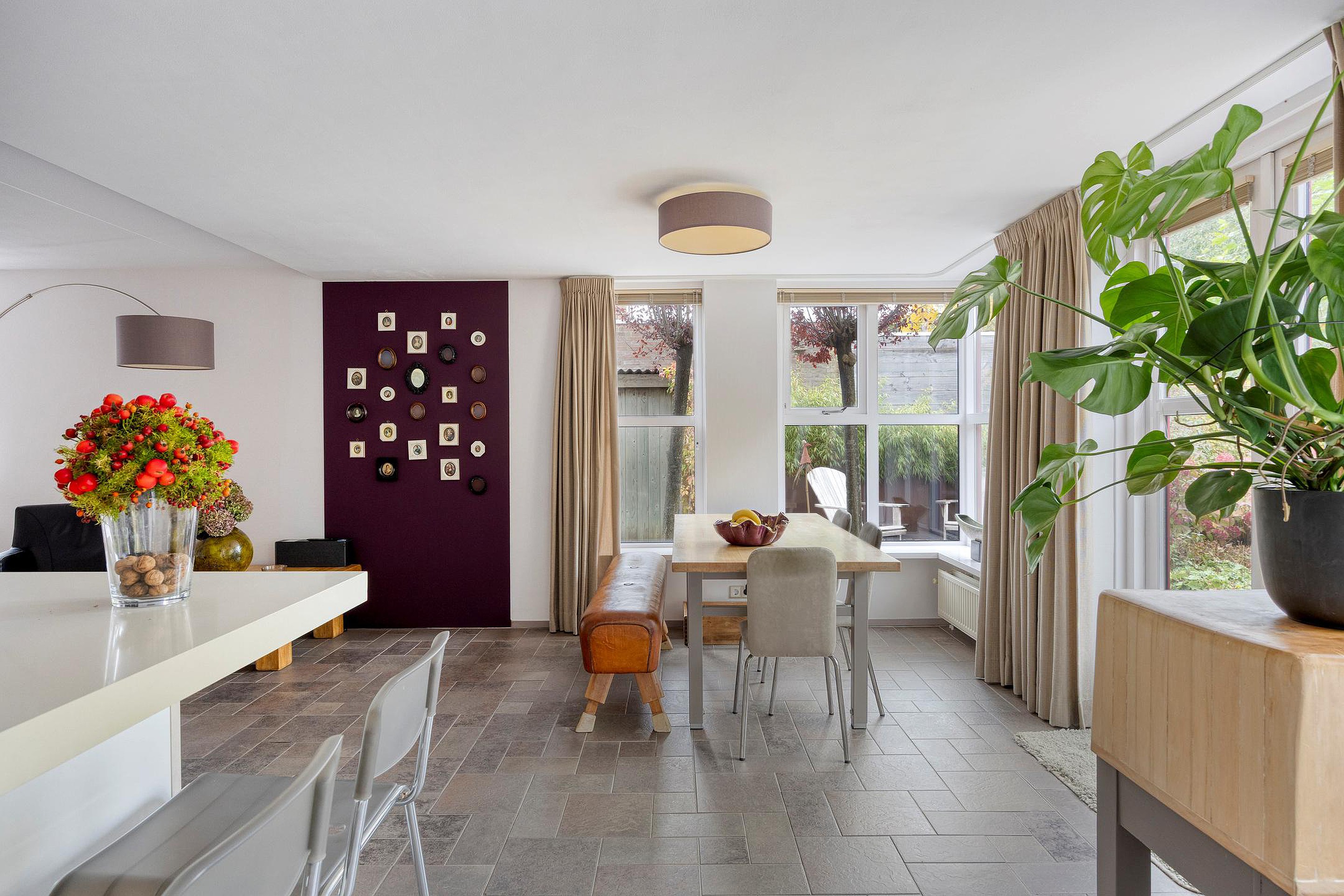 De woonkamer is indrukwekkend groot en voelt direct warm aan. Aan de voorkant van het huis zorgt een erker voor veel lichtinval en geeft deze de woning een bijzondere, vriendelijke uitstraling. Aan de achterzijde geven openslaande tuindeuren toegang tot de tuin. Midden in de woonkamer, richting de zijtuin, zijn nog extra openslaande deuren die zorgen voor nog meer licht en direct contact met buiten. Er is ruimte voor een royale zithoek, een grote eettafel én eventueel een werkhoek. Onder de trap is een handige proviandkast, netjes afgesloten met een deur. De woonkamer is voorzien van vloerverwarming, wat zorgt voor een comfortabel en behaaglijk woonklimaat.