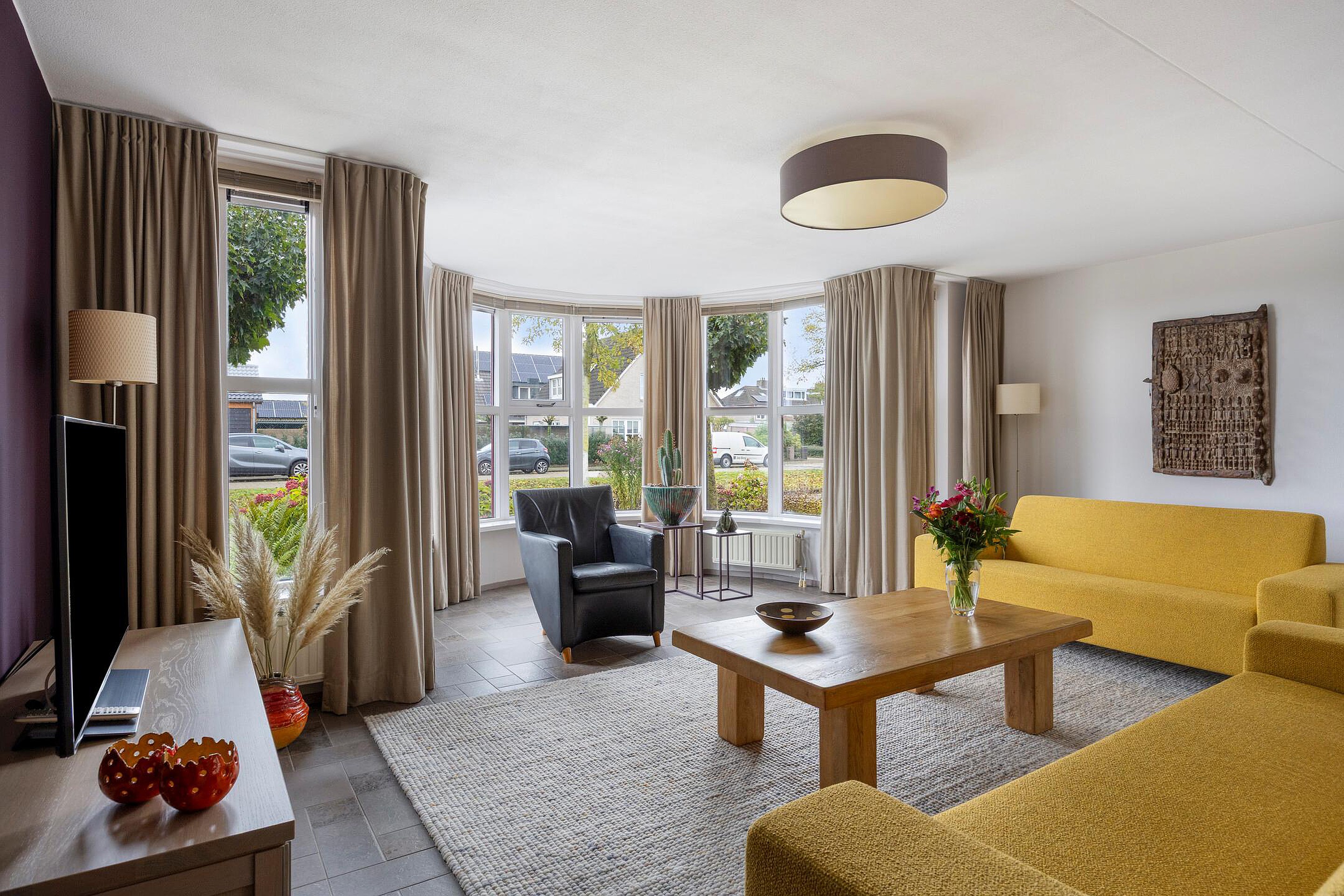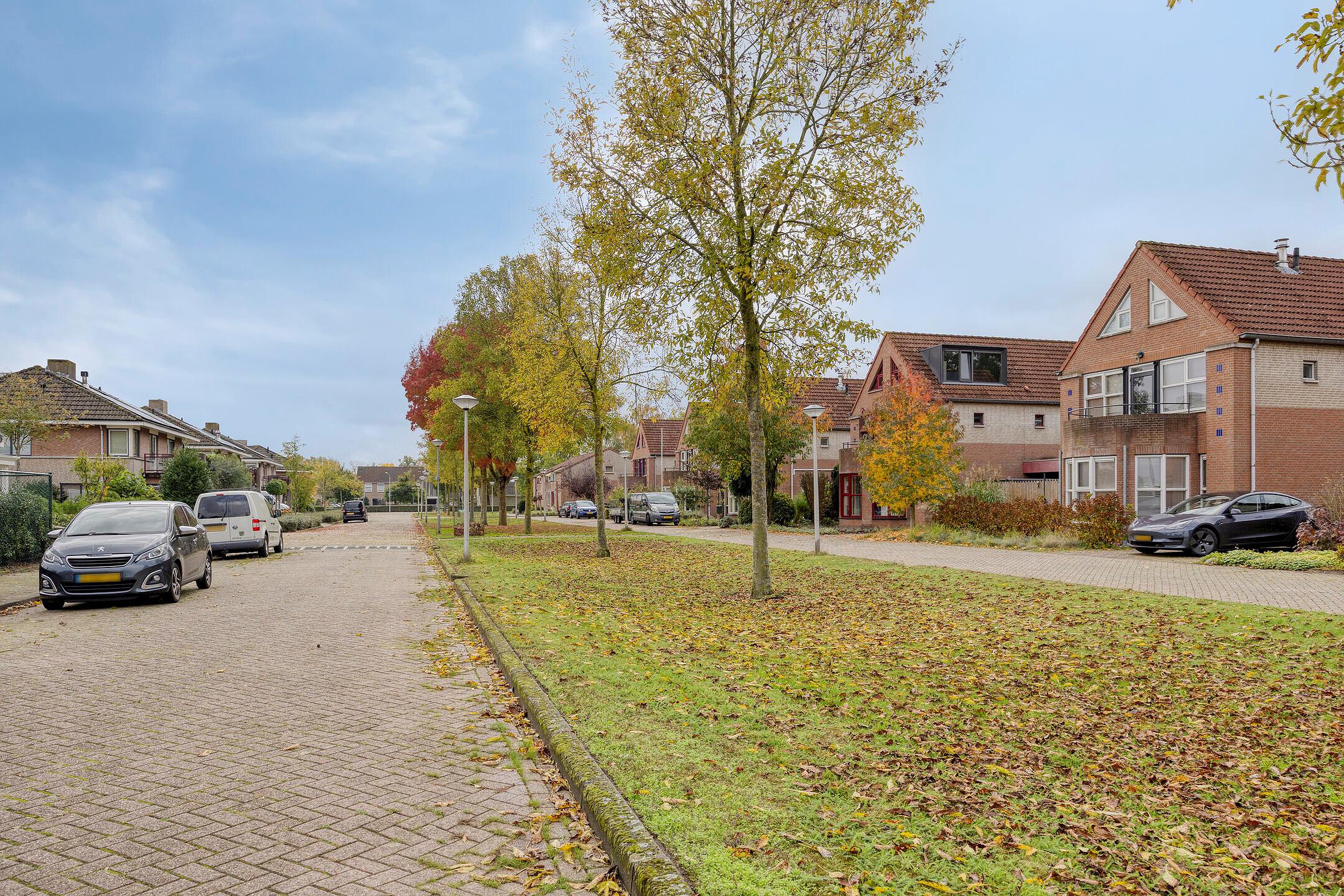 Ook de voortuin is netjes onderhouden en past bij de stijl van de woning. Samen met de ruime oprit geeft het geheel een verzorgde, vriendelijke uitstraling.
