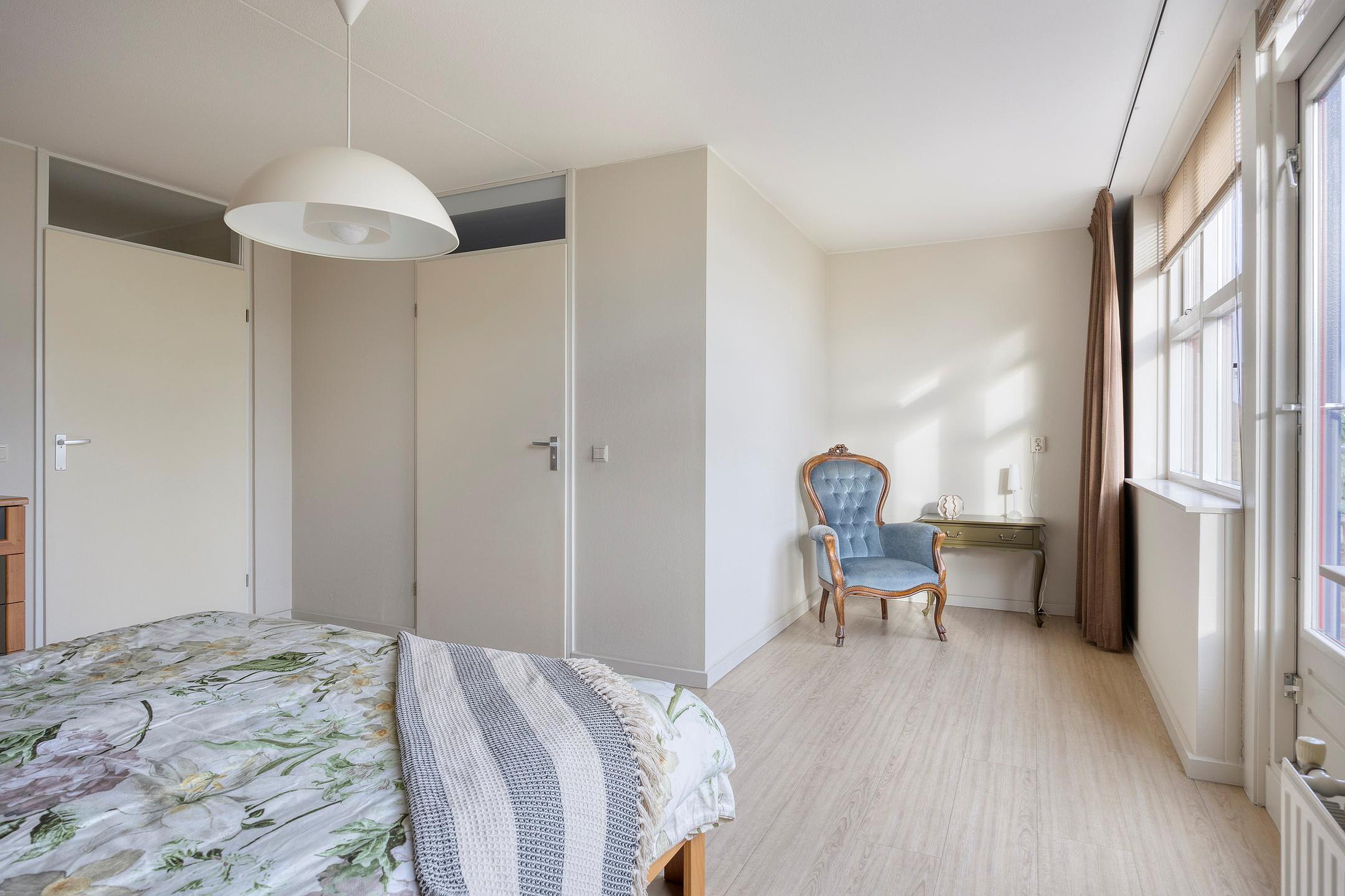 De hoofdslaapkamer aan de voorzijde is groot en licht, met toegang tot een rond balkon op het oosten. ’s Ochtends geniet je hier van de eerste zon en van het uitzicht over de landerijen.