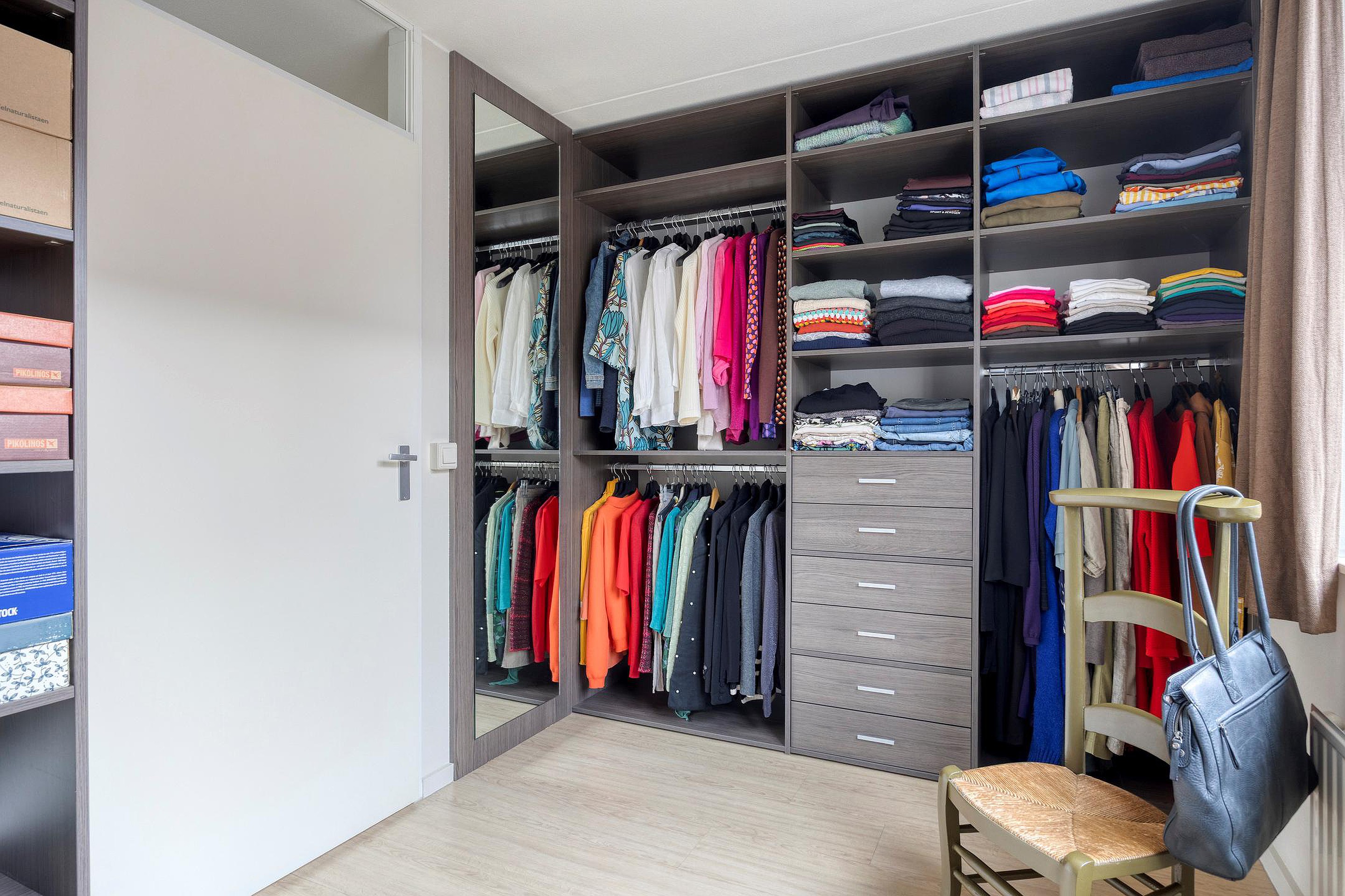 De tweede slaapkamer, in het midden, is nu ingericht als ruime inloopkast.