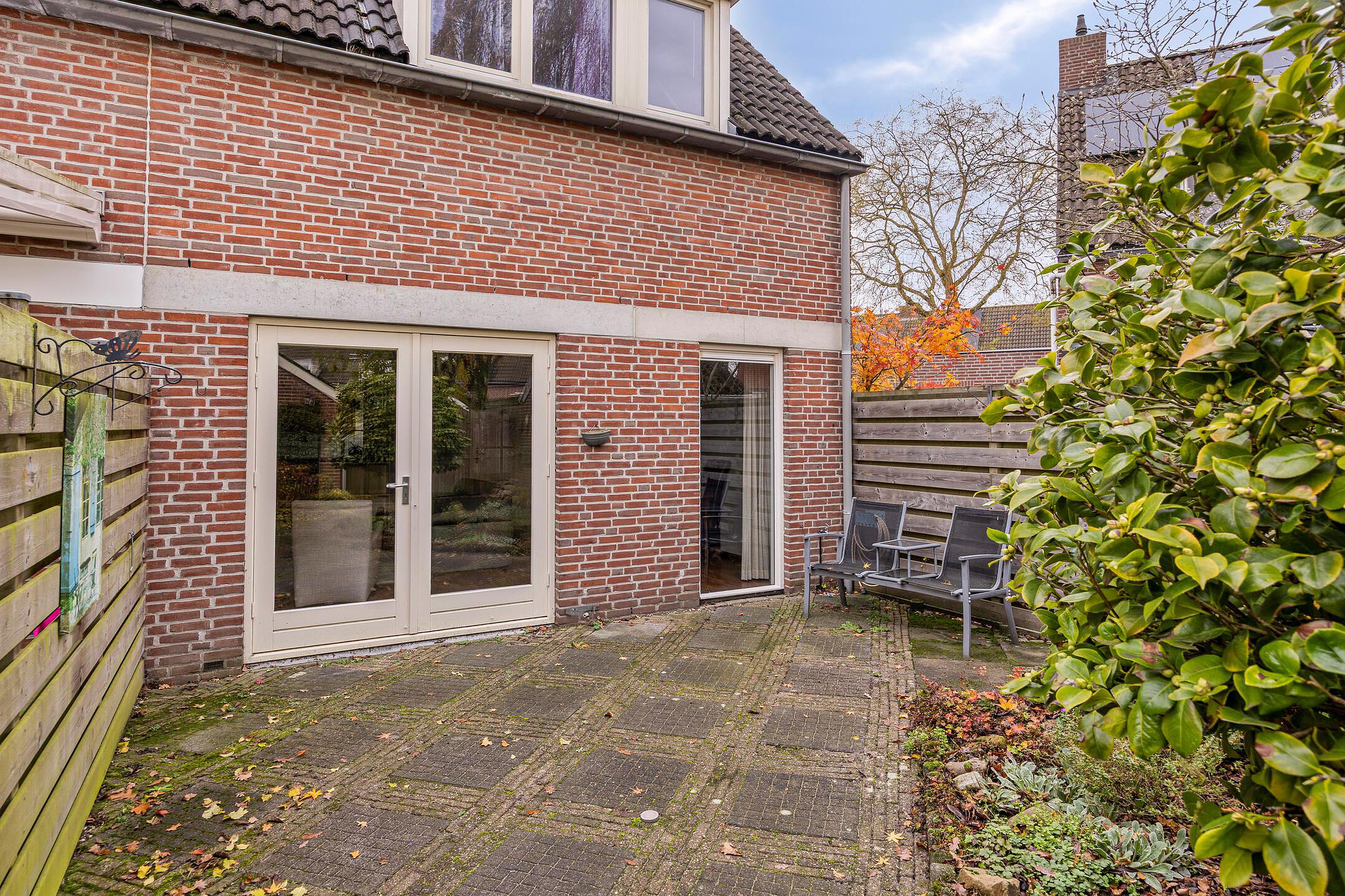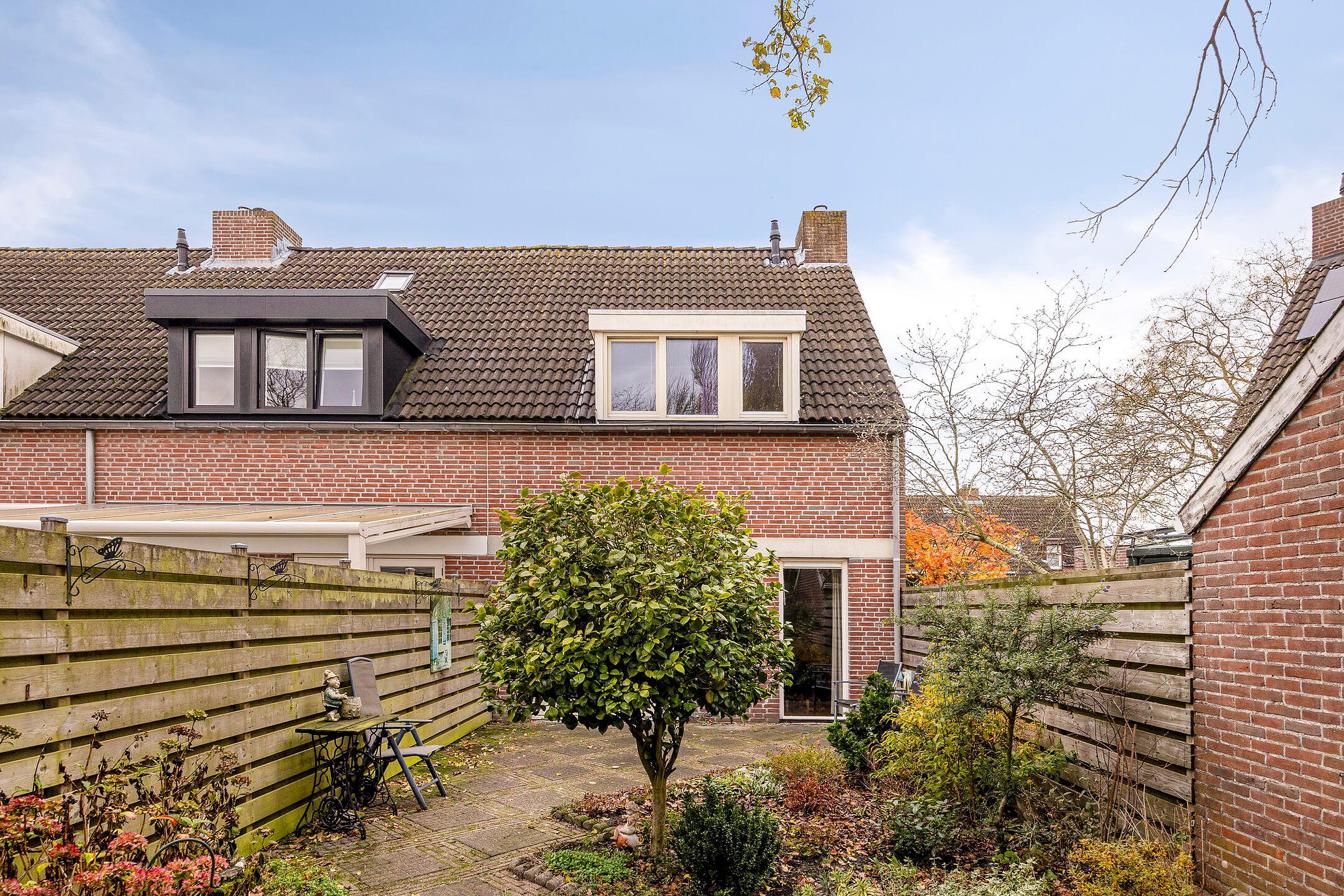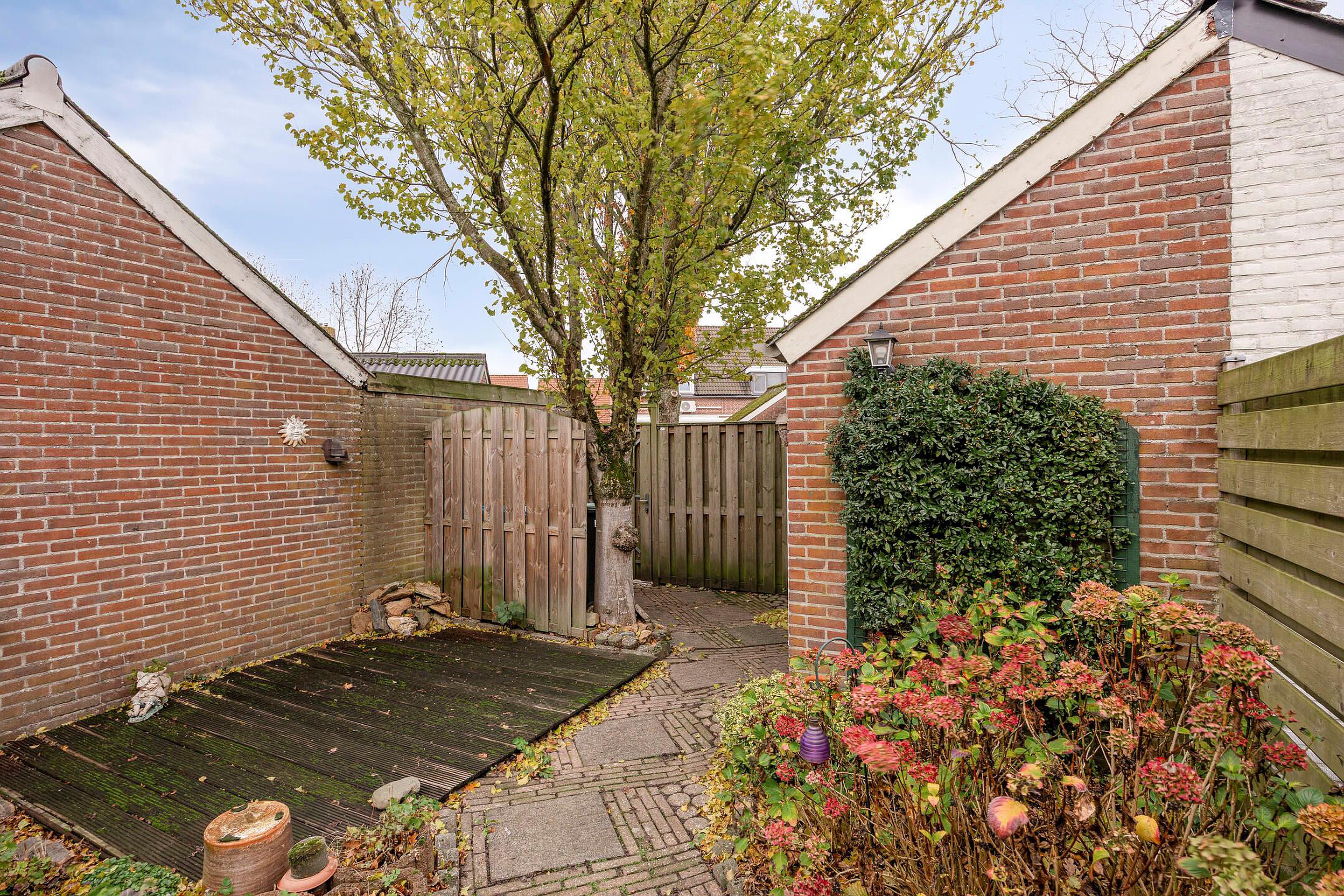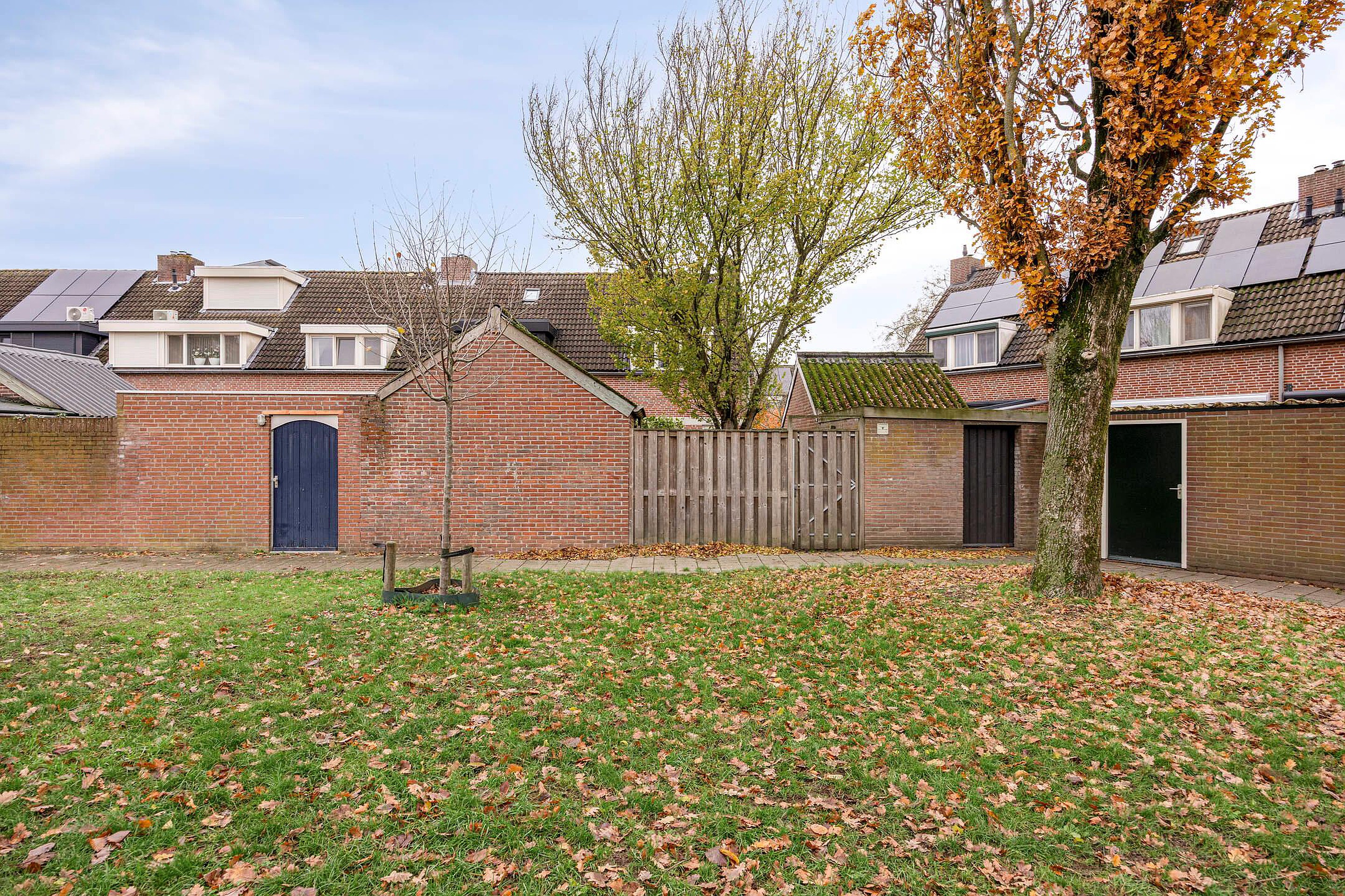 Tuin De achtertuin is ongeveer 14,50 meter diep en 6 meter breed. Achterin staat een stenen berging, handig voor het opbergen van fietsen, tuinmeubilair en andere spullen. Via de achterpoort kom je uit op een speelveld met een speeltuin, een fijne plek waar buurtkinderen en ouders elkaar ontmoeten.