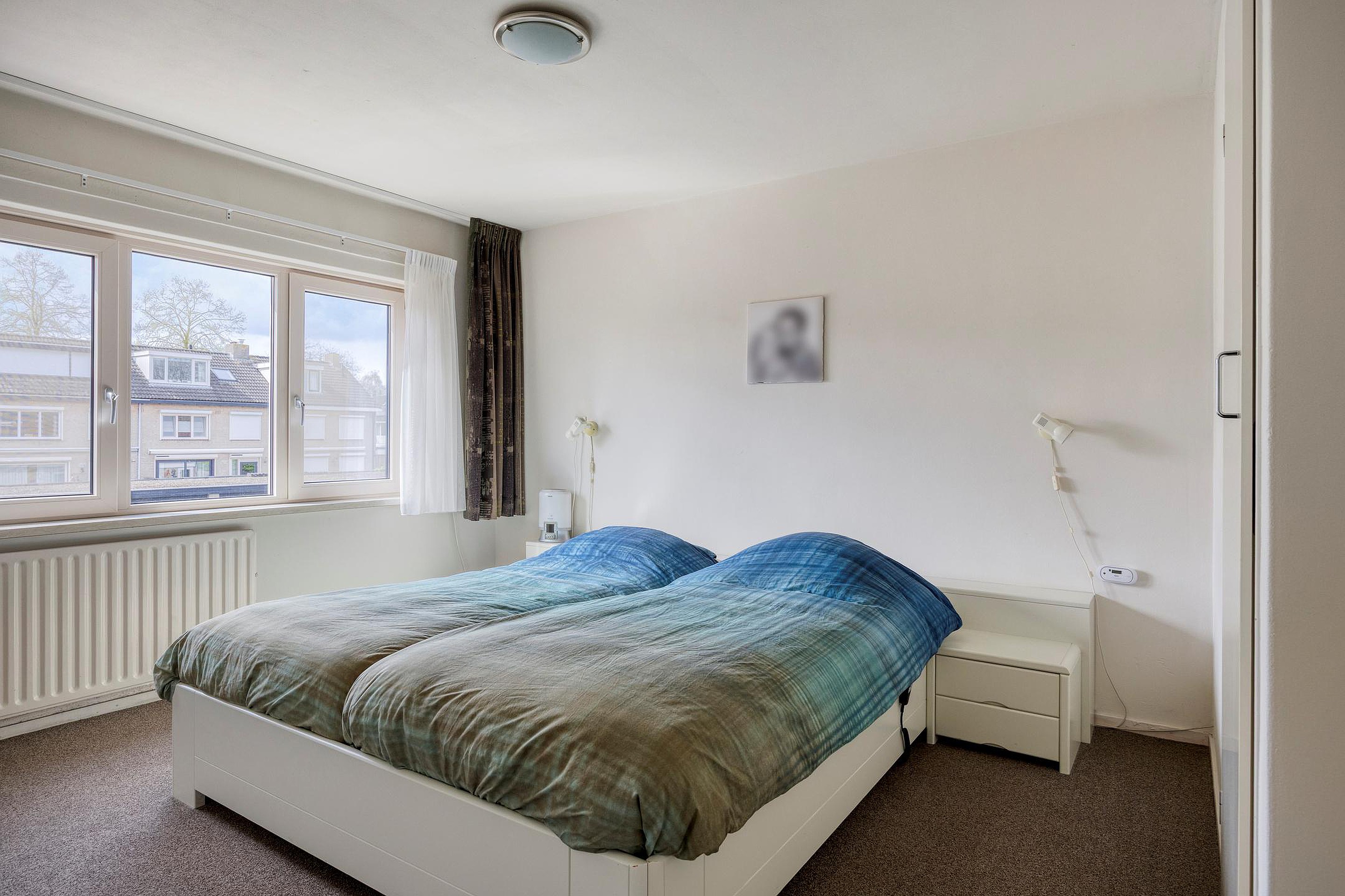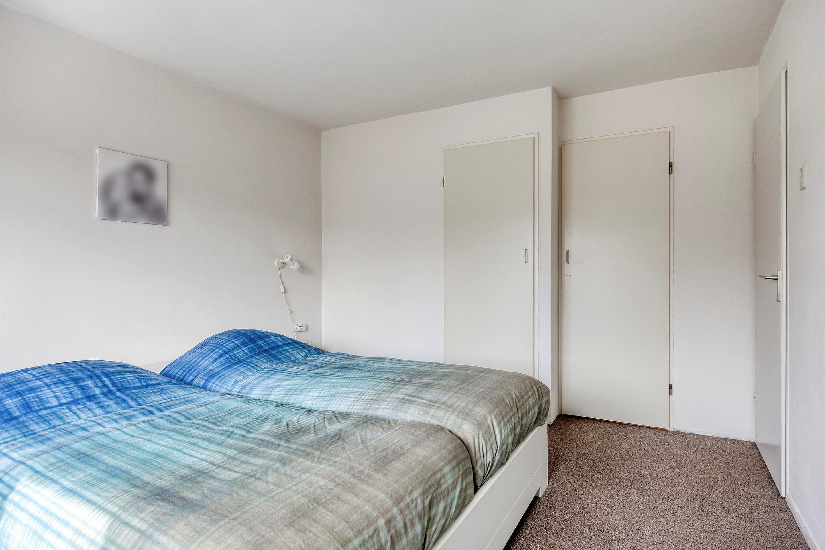 De twee slaapkamers aan de achterzijde zijn beide voorzien van kunststof kozijnen en een screen. De grootste van deze twee slaapkamer heeft twee inbouwkasten.