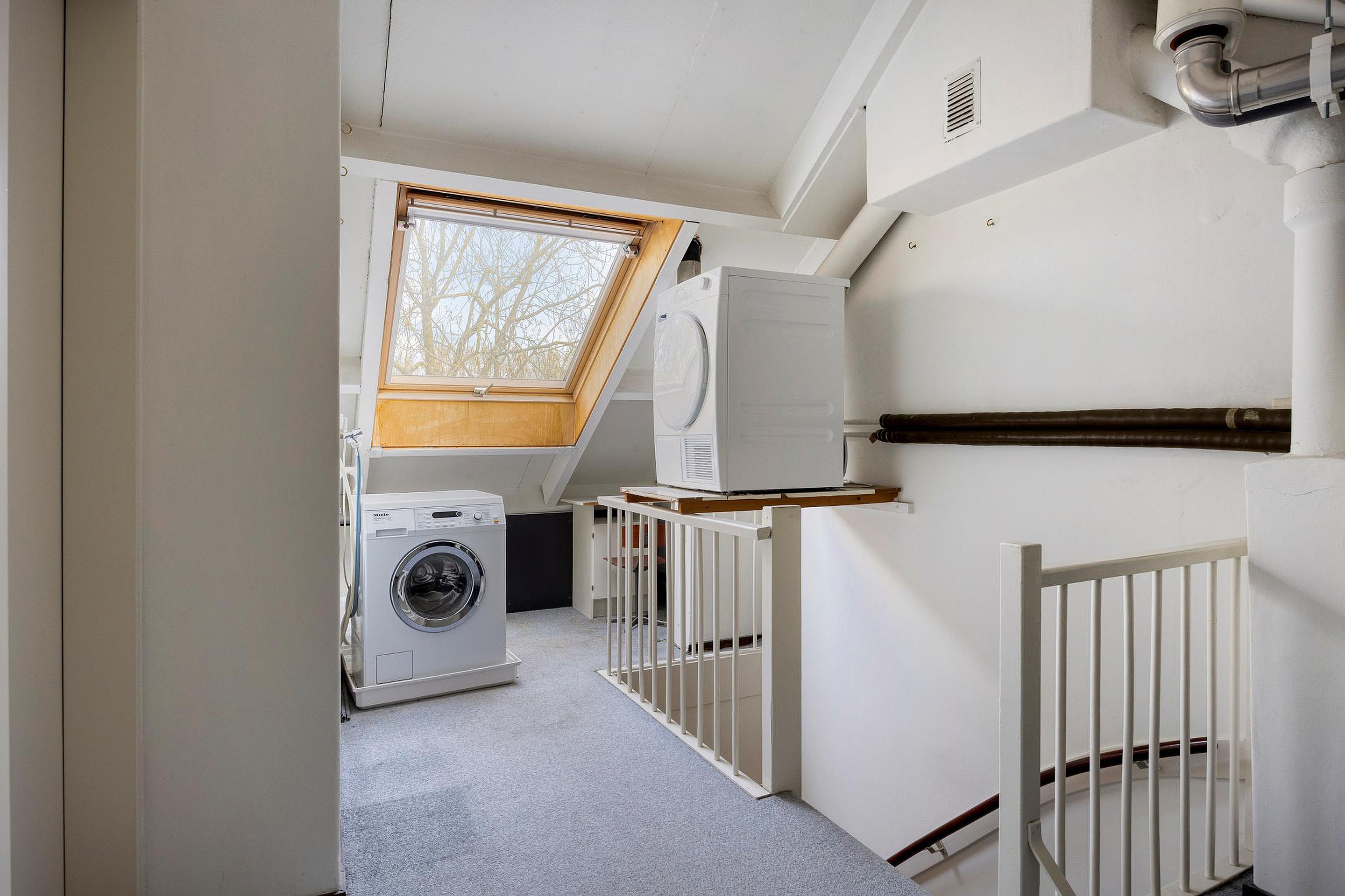 De voorzolder heeft een groot dakraam en is voorzien van aansluitingen ten behoeve van de wasapparatuur en de opstelplaats van de ATAG cv-combiketel.