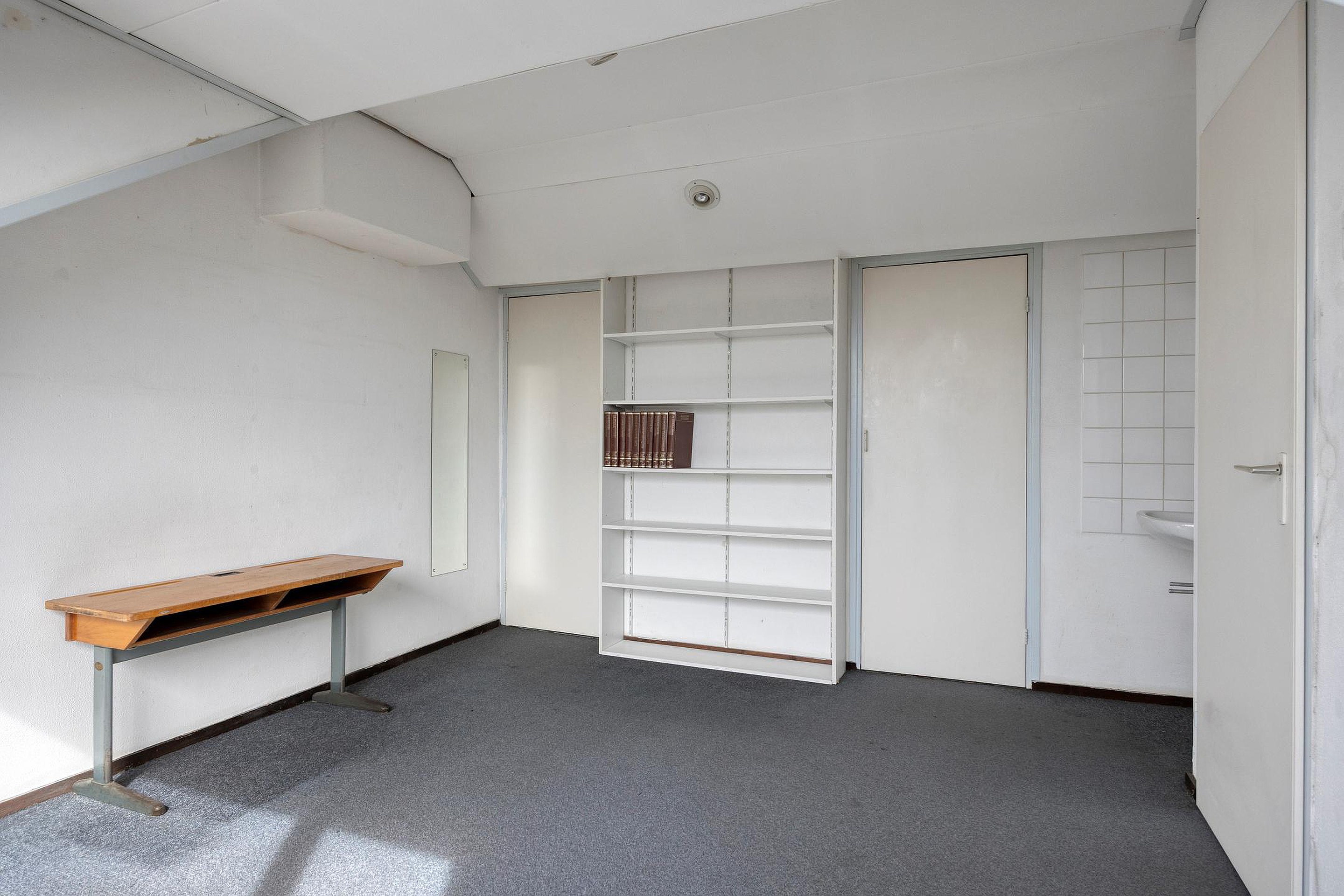 Aansluitend ligt de vierde slaapkamer met dakkapel aan de achterzijde, wastafel, twee vaste kasten en bergruimte achter de knieschotten.