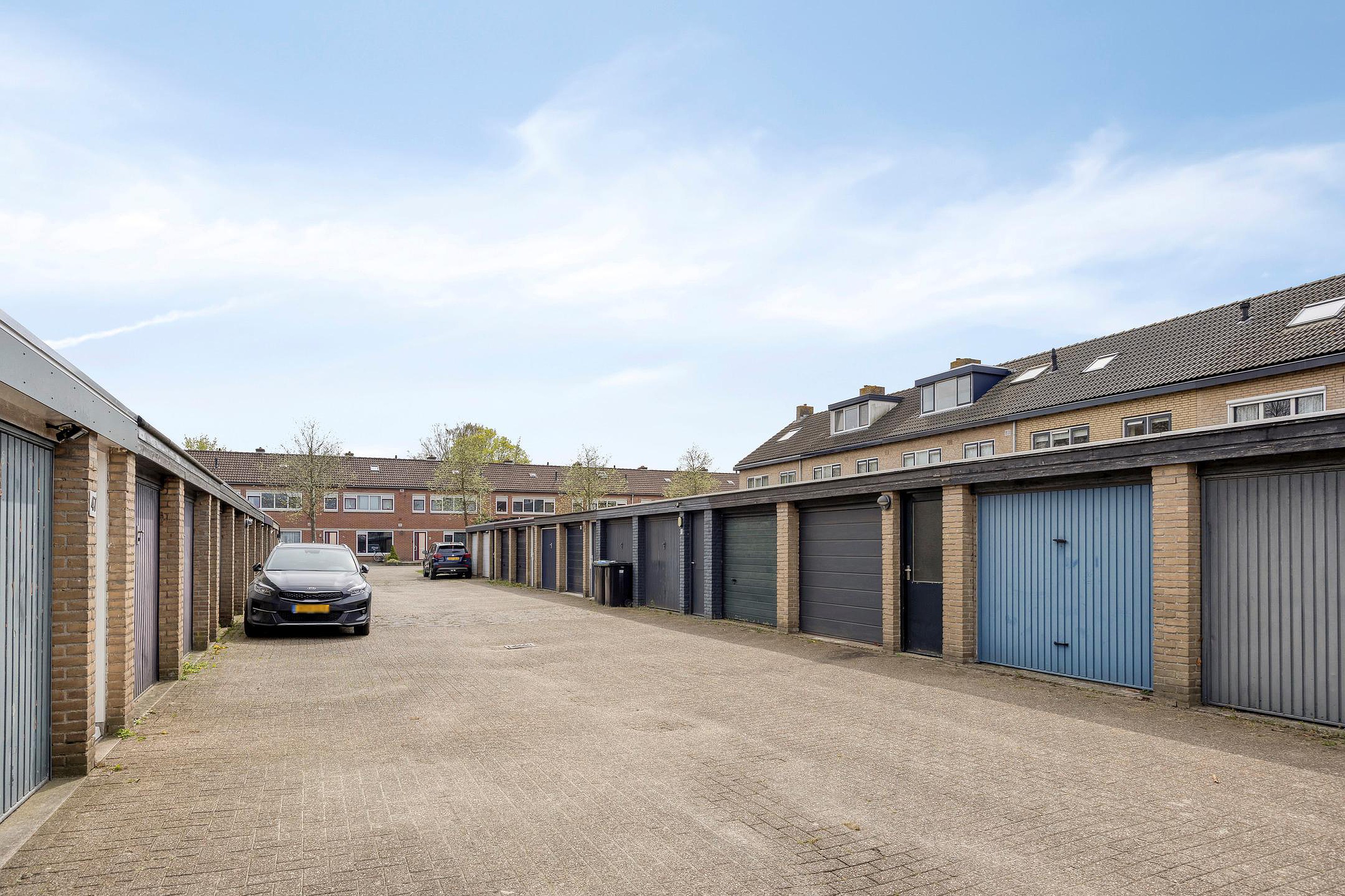 Achterin de tuin staat de ruime garage/berging voorzien van elektra. De garage/berging bestaat uit twee compartimenten en heeft een loopdeur naar de tuin en een garage- en loopdeur naar de achtergelegen garageboxen. Op het dak van de garage zijn 9 zonnepanelen geplaatst.