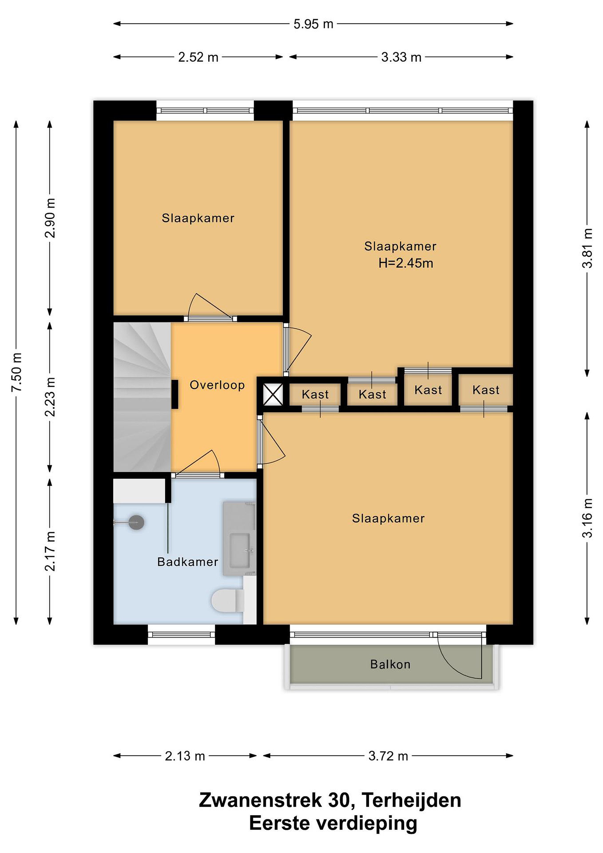- Drie slaapkamers en badkamer op de eerste verdieping