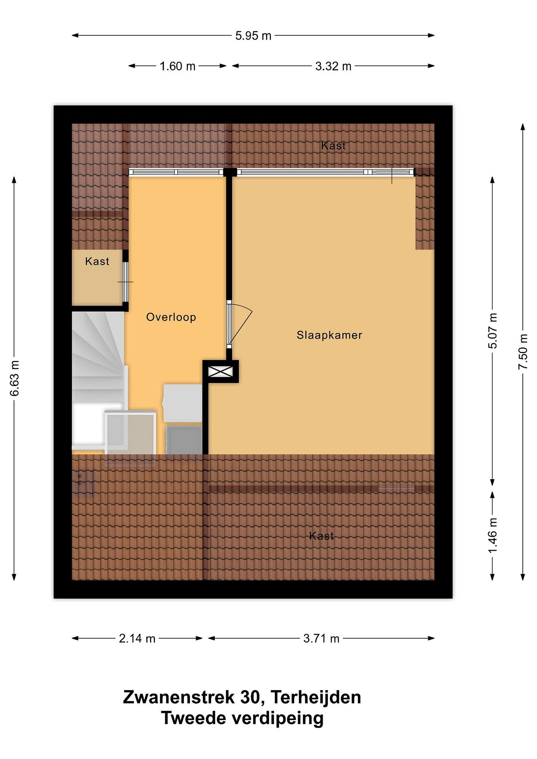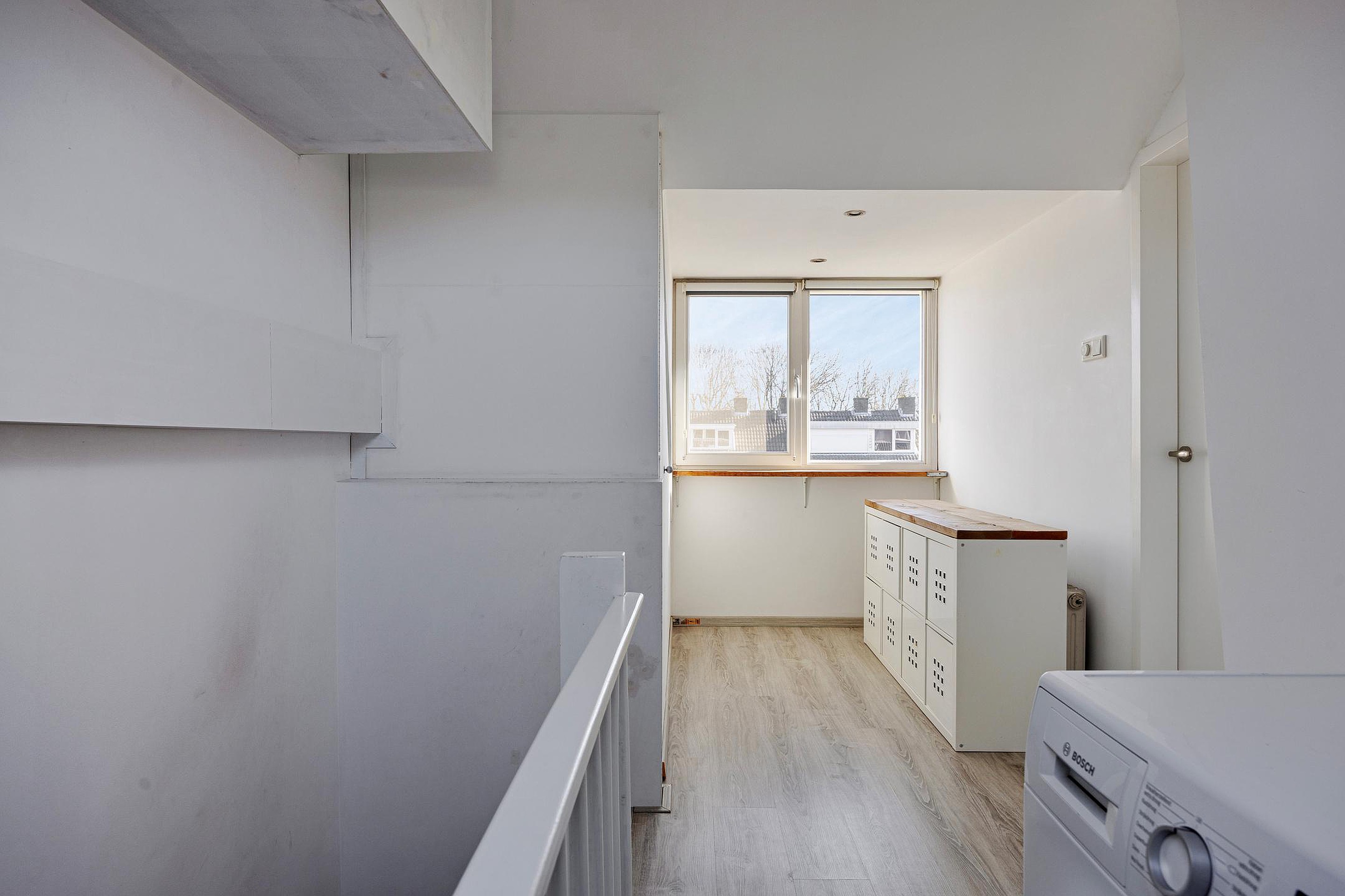 Tweede verdieping Via een vaste trap bereik je de voorzolder met bergruimte, de opstelling voor wasmachine en droger en de c.v.-ketel. Een dakraam zorgt voor daglicht.