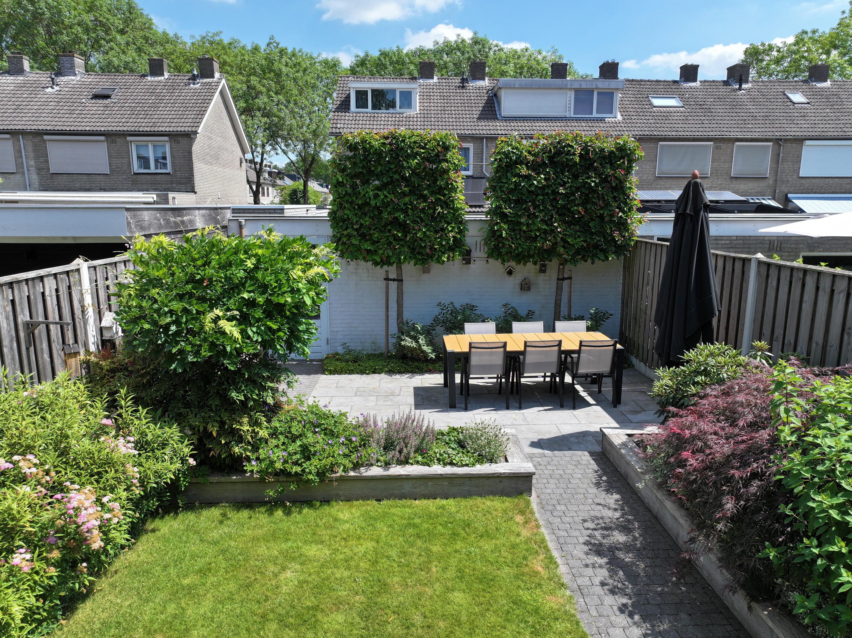 Tuin De verzorgde achtertuin ligt op het oosten en biedt een fijne plek om buiten te zitten. Achter in de tuin staat een berging over de volle breedte met toegang tot de achtergelegen brandgang. Aan de voorzijde ligt een klein voortuintje.