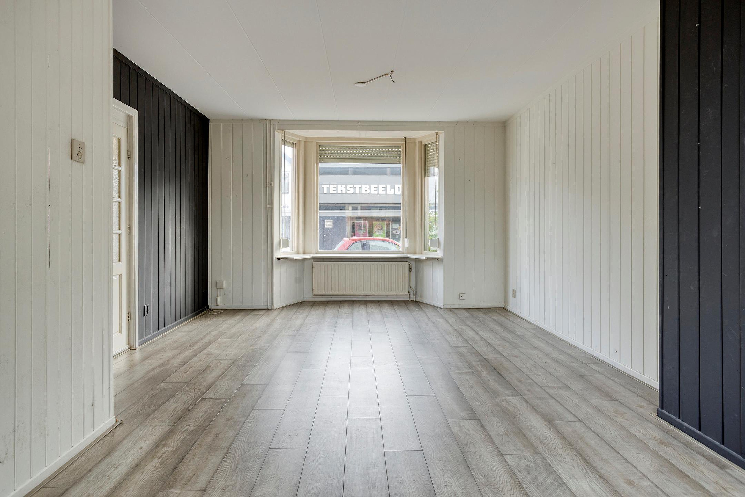 Binnenkomst in de hal met trapopgang. De woonkamer heeft een prachtige, karakteristieke erker aan de voorzijde die direct sfeer geeft. Veel lichtinval en die typische jaren ’30 uitstraling.