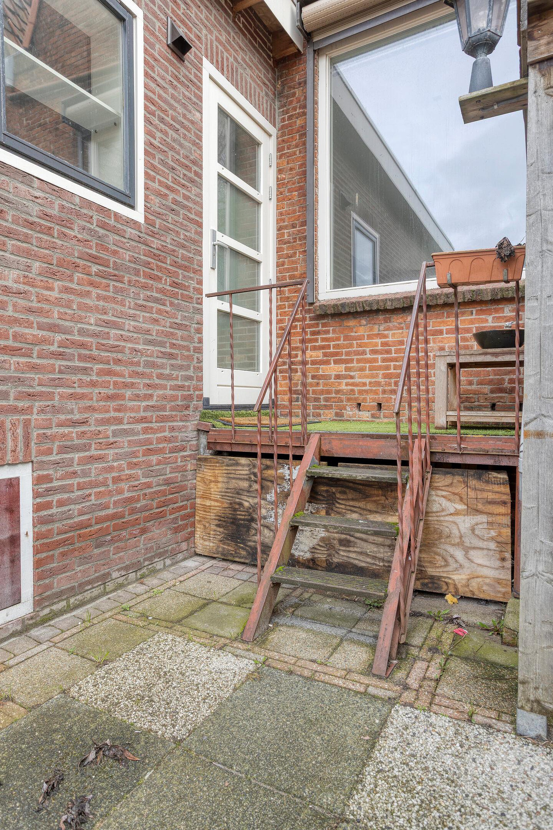 De tuin ligt op het zuidwesten, waardoor je hier volop van de middag- en avondzon kunt genieten. Er is een overkapping aanwezig, zodat je ook bij minder weer comfortabel buiten zit.