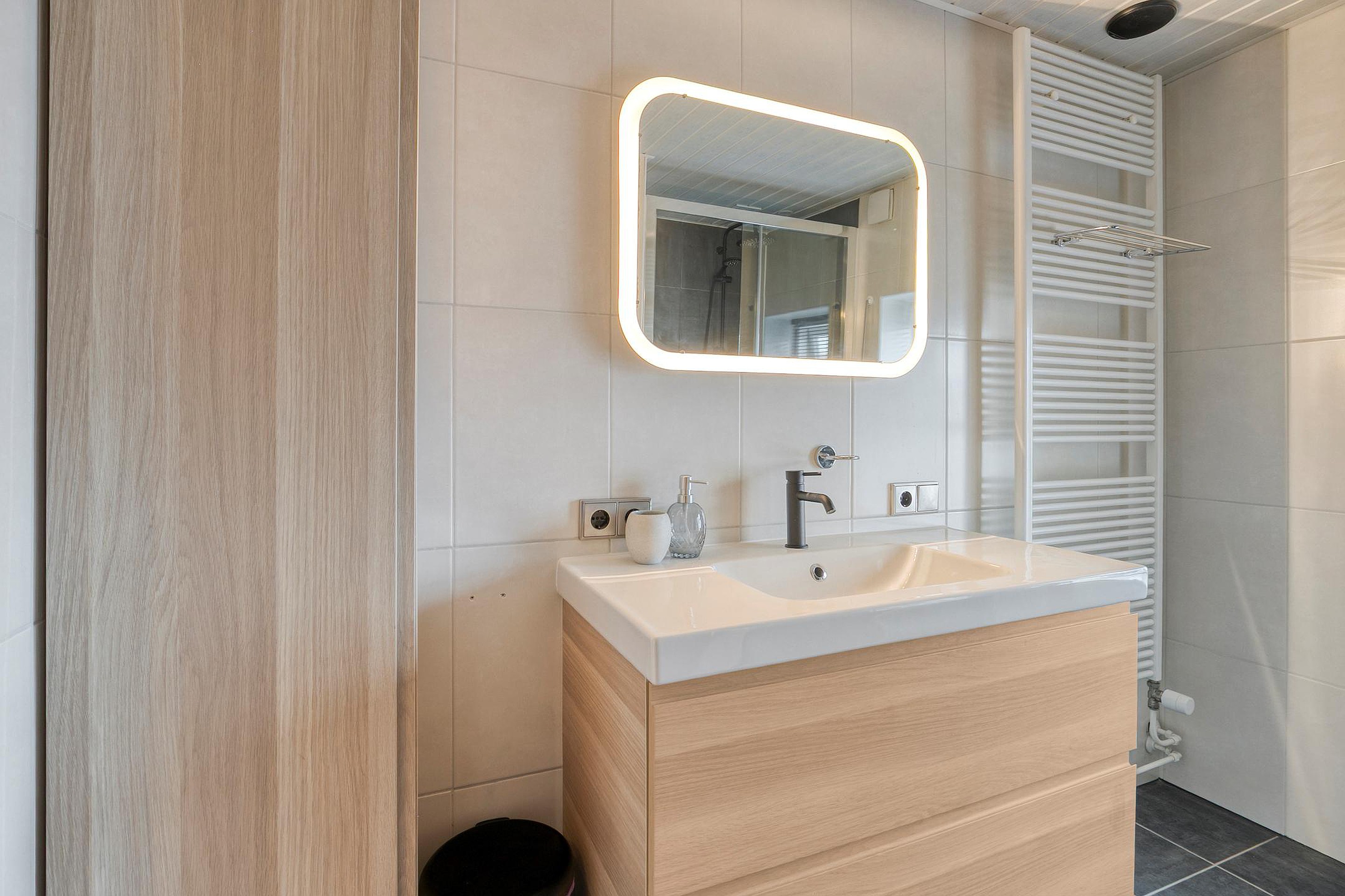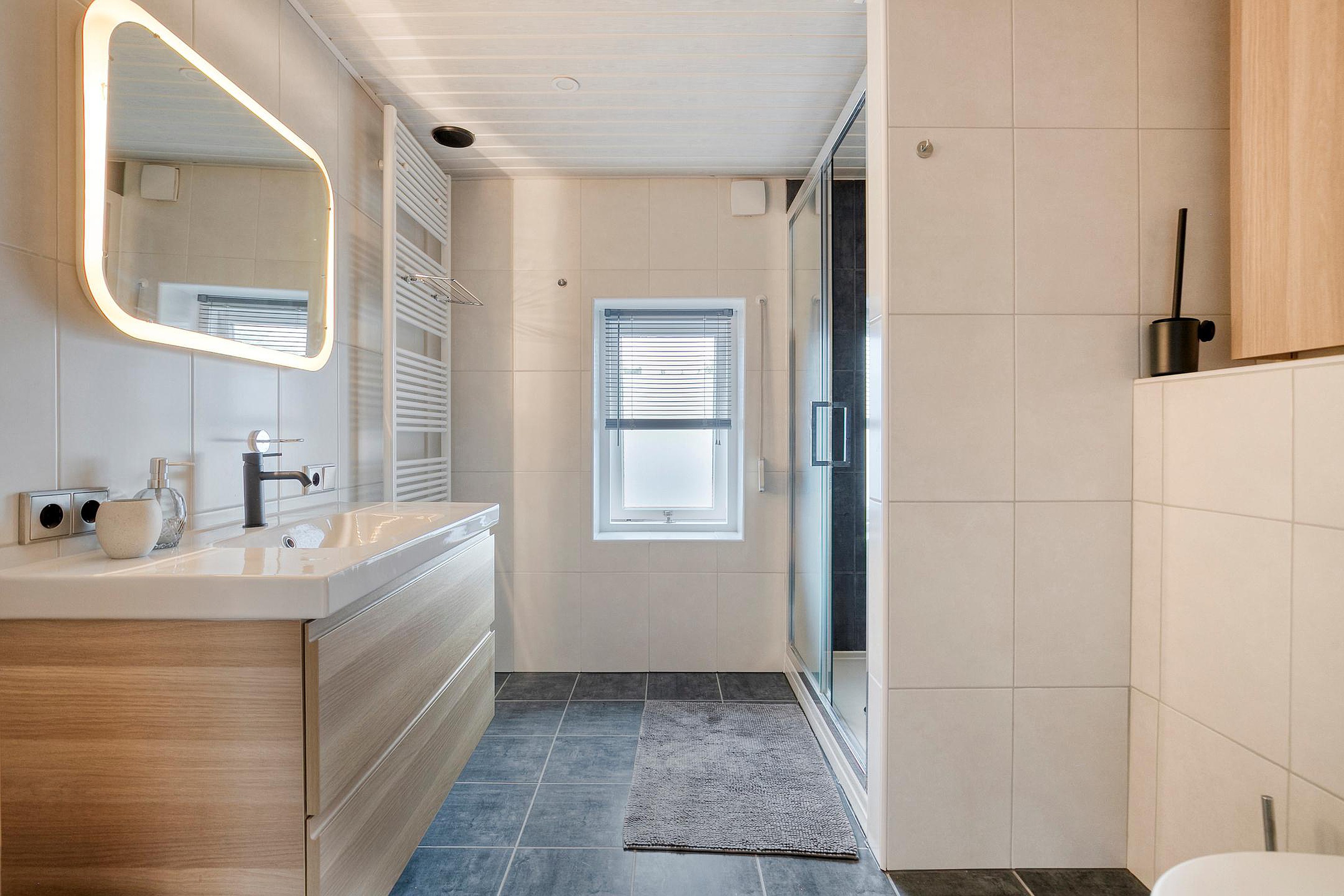 De ruime overloop beschikt over mooie inbouwkasten, ideaal voor je garderobe of extra bergruimte. Aan de voorzijde bevindt zich de masterbedroom met twee ramen en rolluik. De tweede slaapkamer is ruim genoeg voor een tweepersoonsbed of een kinderkamer met bureau. De badkamer (2015) is modern afgewerkt met een inloopdouche (regendouche), zwevend toilet, wastafelmeubel en designradiator.