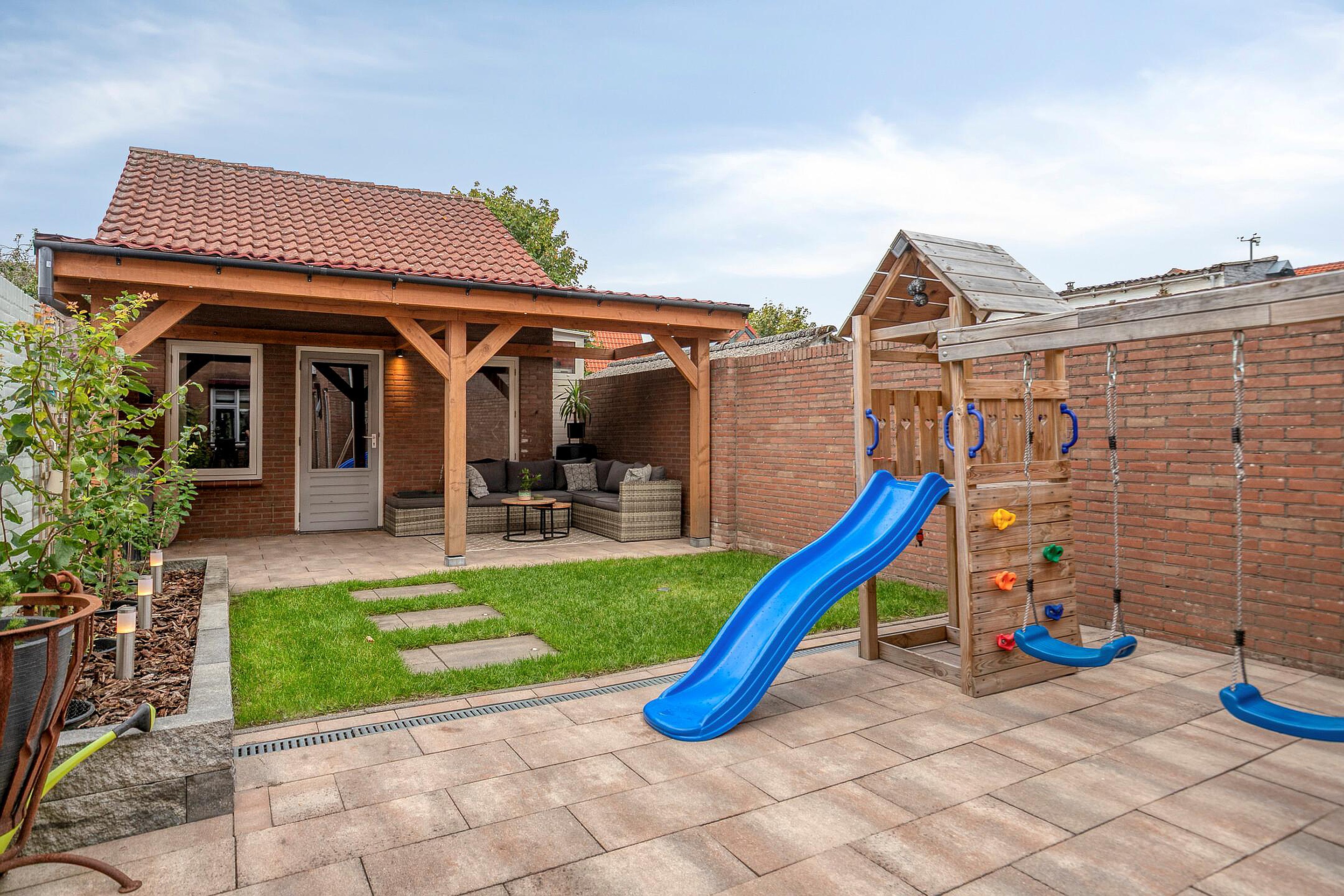 De tuin beschikt over een berging, een overkapping en een ruime garage met pannendak, zolder en smeerput – ideaal voor de hobbyist of extra bergruimte. De garage is te bereiken aan de achterzijde met fiets, containers en zelfs met de auto.