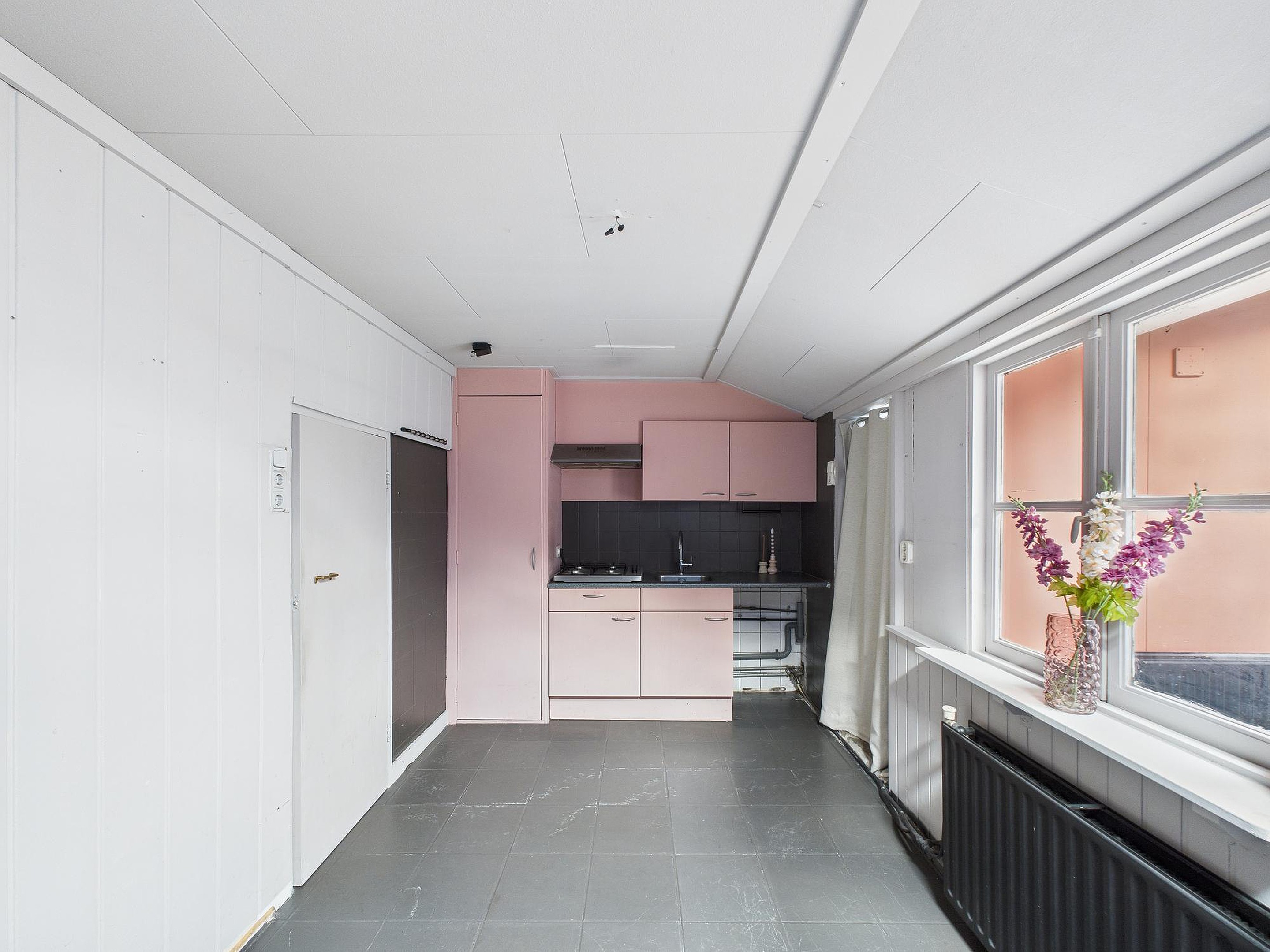 Begane grond Inkomhal met toegang tot de woonkamer en keuken. De knusse woonkamer krijgt dankzij de grote raampartijen aan de voorzijde volop daglicht naar binnen. Het witte balkenplafond geeft de ruimte een authentieke uitstraling. Aansluitend aan de woonkamer bevindt zich de keuken, met voldoende plek voor een gezellige eethoek. Ook de badkamer bevindt zich op de begane grond, dit zorgt ervoor dat de woning ook levensloopbestendig is. De badkamer beschikt over een douchecabine en wastafel met meubel. Via de badkamer is ook het toilet te bereiken. Naast de keuken is een slaapkamer aanwezig. Deze ruimte kan ook gebruikt worden als eetruimte, bijkeuken of hobbykamer. Via hier heb je toegang tot de tuin.