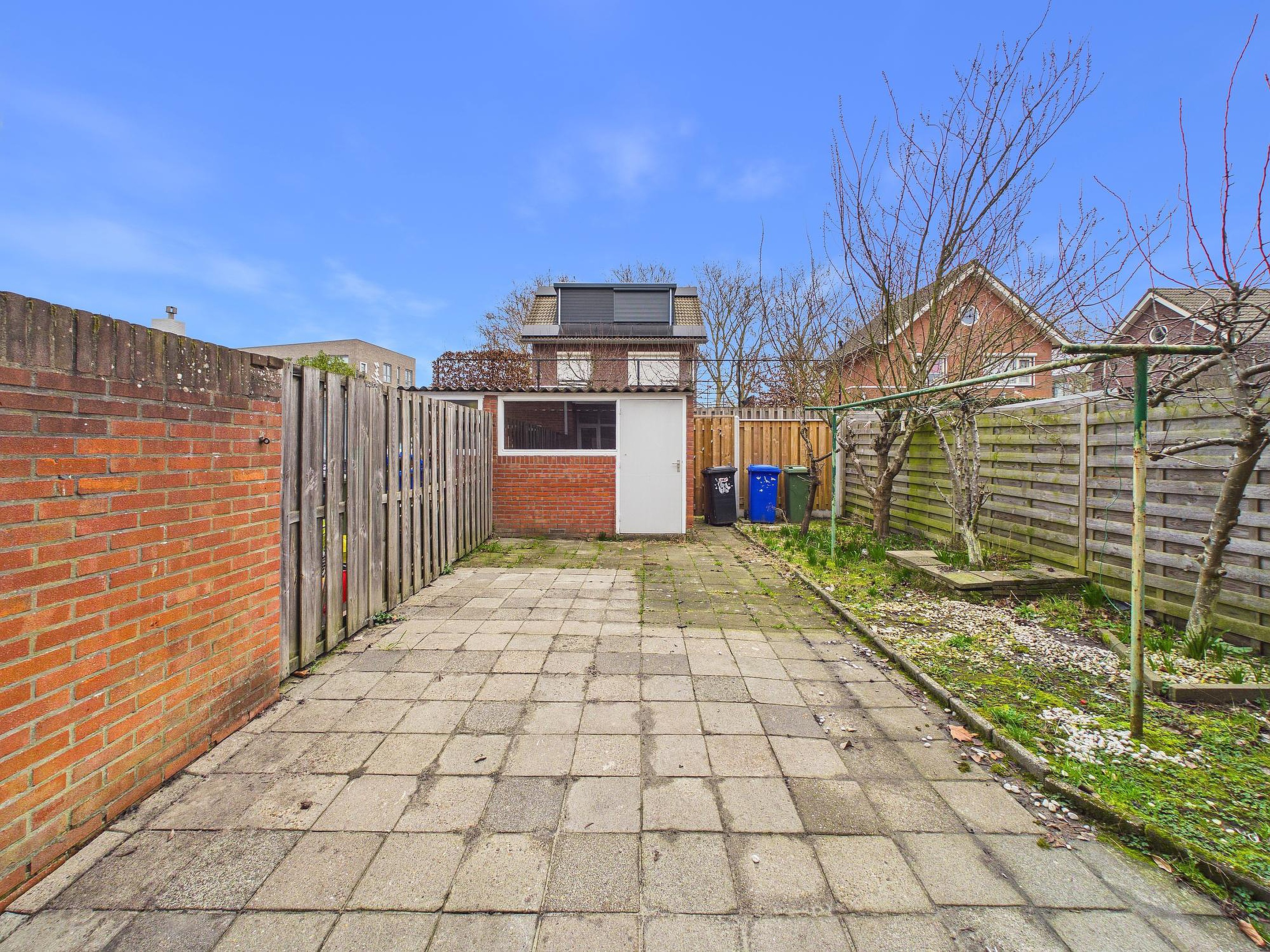Tuin De achtertuin is gelegen op het Noordoosten. De tuin is bereikbaar via een achterom. Daarnaast is er een vrijstaande stenen berging, perfect voor fietsen en extra opslag.