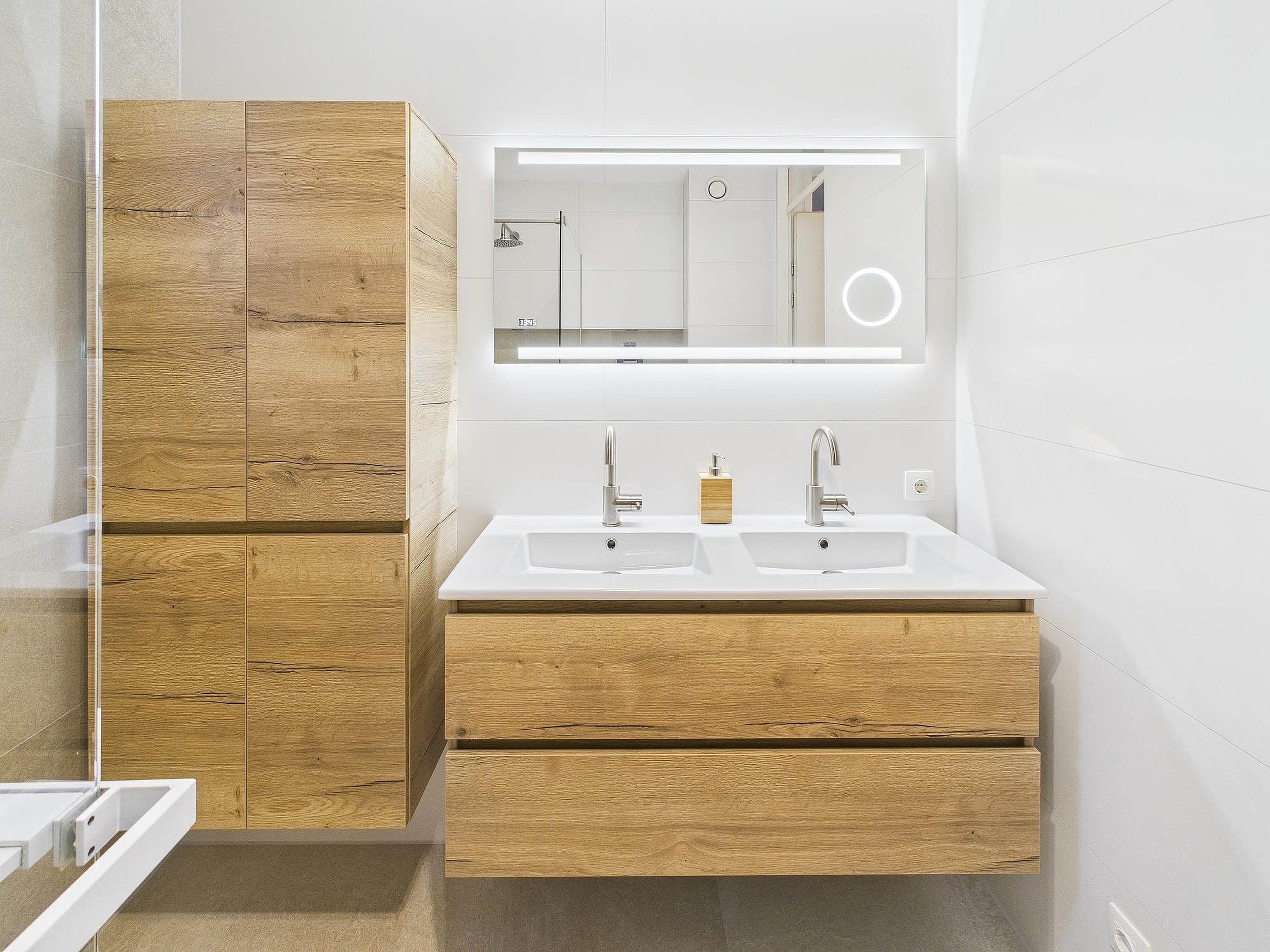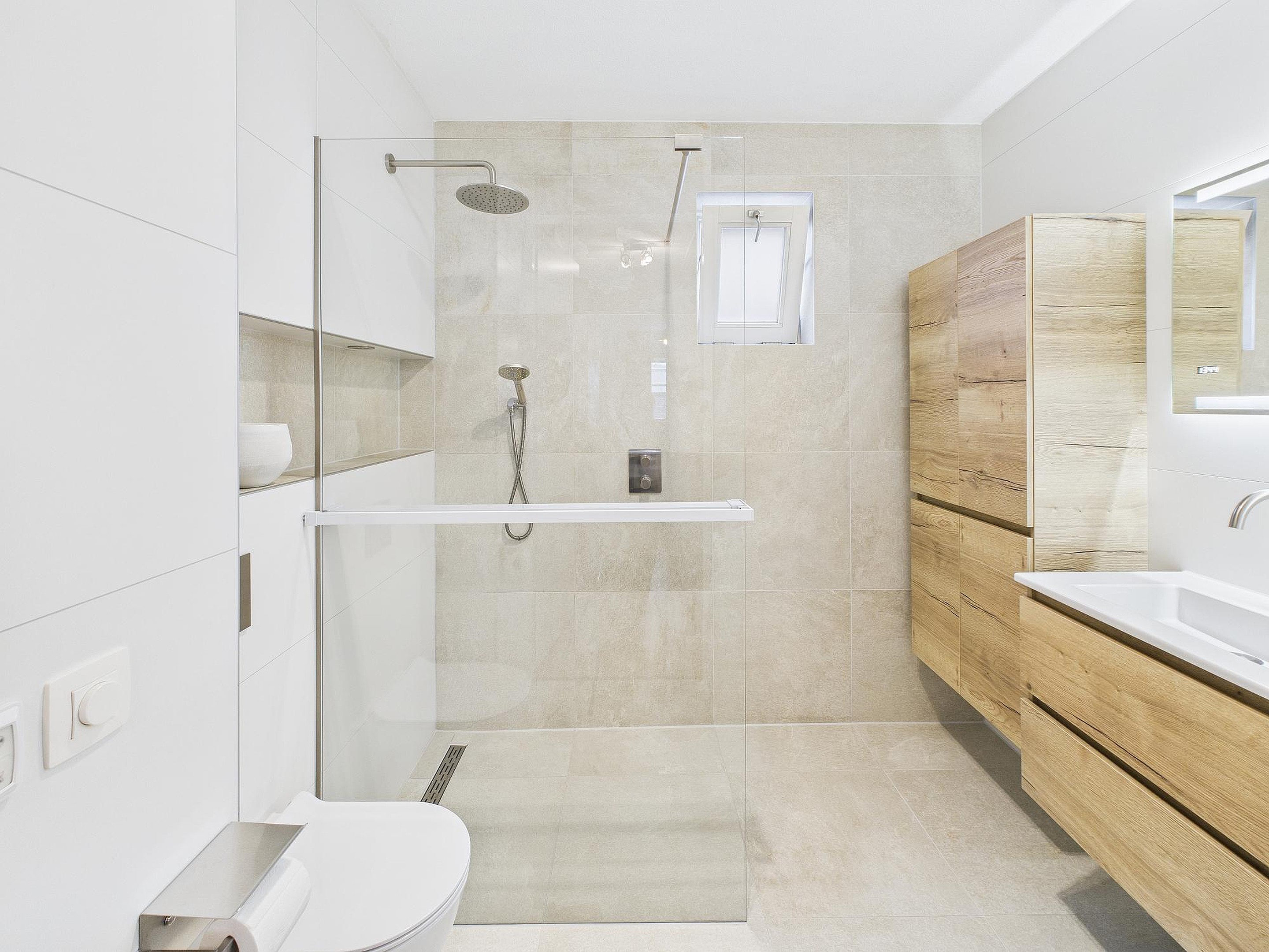 Eerste verdieping Overloop met toegang tot 3 ruime slaapkamers en de badkamer. De schitterende badkamer is van alle benodigdheden voorzien: Een royale inloopdouche, toilet en dubbele wastafels met bijpassend meubel. Daarnaast is er in de badkamer vloerverwarming aanwezig.