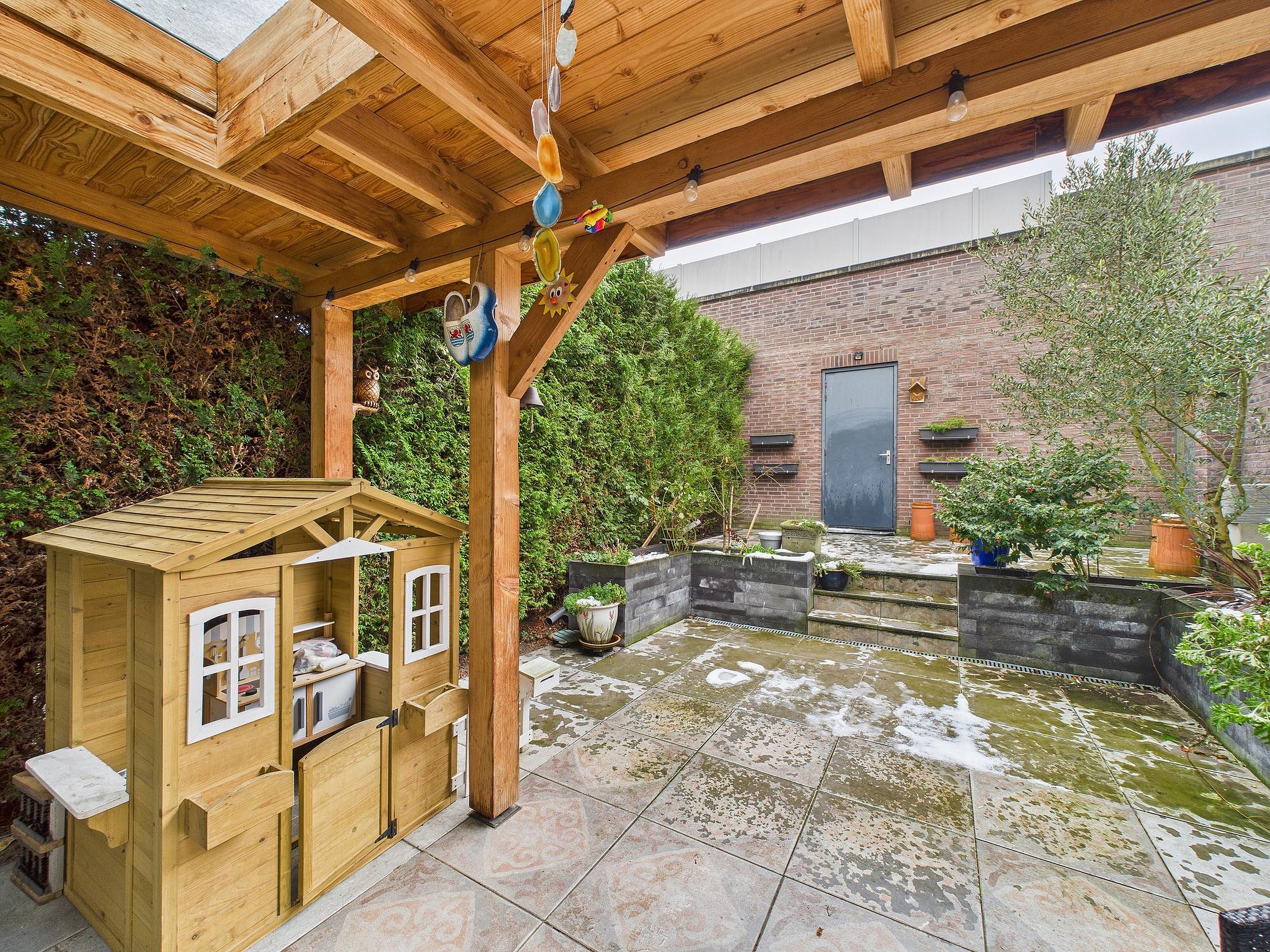 Tuin De tuin is gelegen op het Zuidoosten. De tuin is onderhoudsvriendelijk aangelegd en beschikt over verschillende niveaus die de tuin een speelse indeling geven. Je kunt hier op de hete zomerdagen heerlijk genieten van een plekje in de schaduw onder de overkapping of een plekje in de zon opzoeken. Vanuit de tuin heb je directe toegang tot de garage en de naastgelegen straat. De garage beschikt over een elektrische deur.