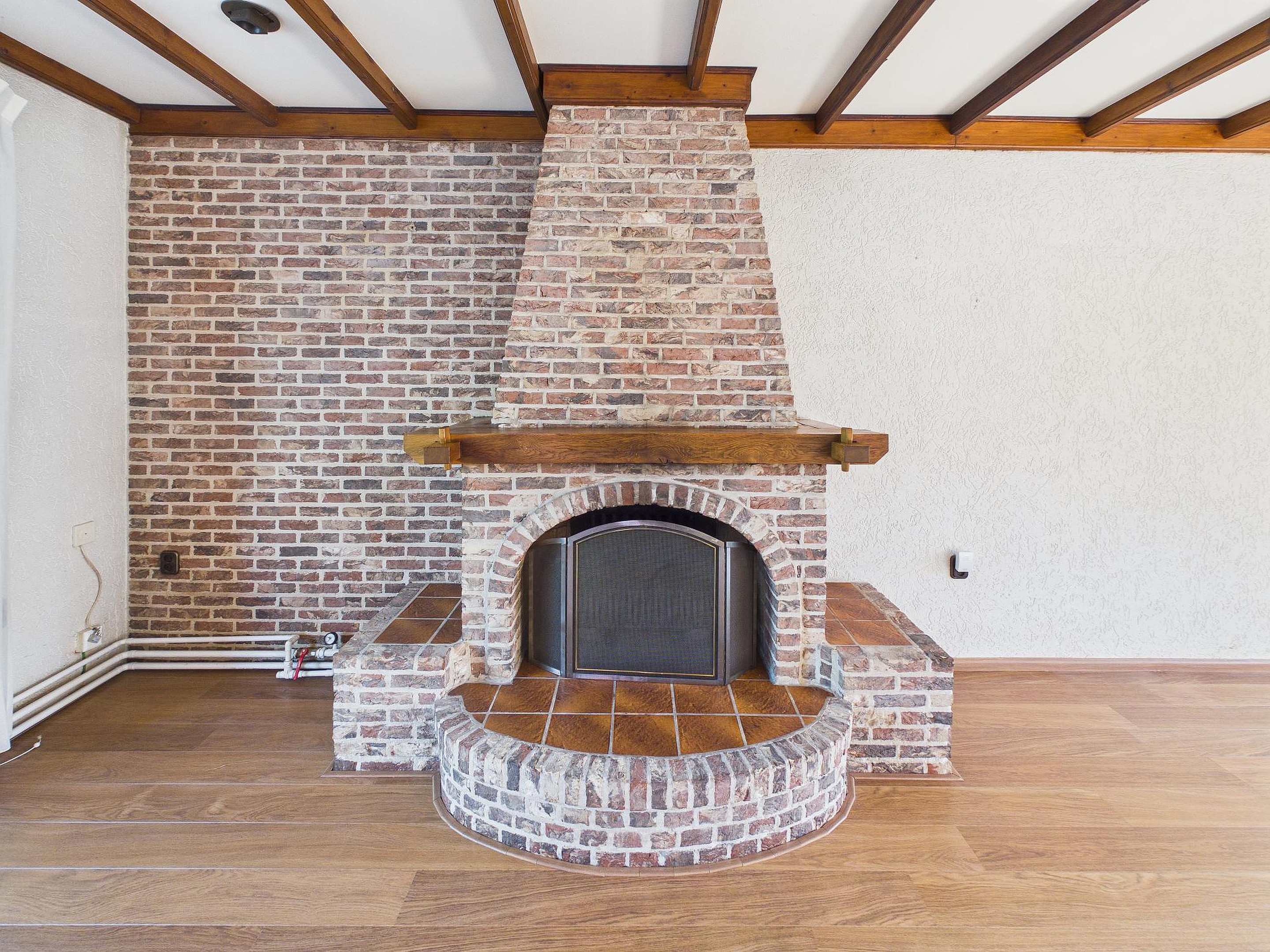 De woonkamer heeft een royale opzet en beschikt dankzij de grote raampartijen en erker over veel natuurlijk licht. Deze zeer ruime leefruimte vormt het hart van het huis, compleet met een gezellige haard en prachtige openslaande glazen deuren naar de tuin. Dit creëert een prettige verbinding tussen binnen en buiten.