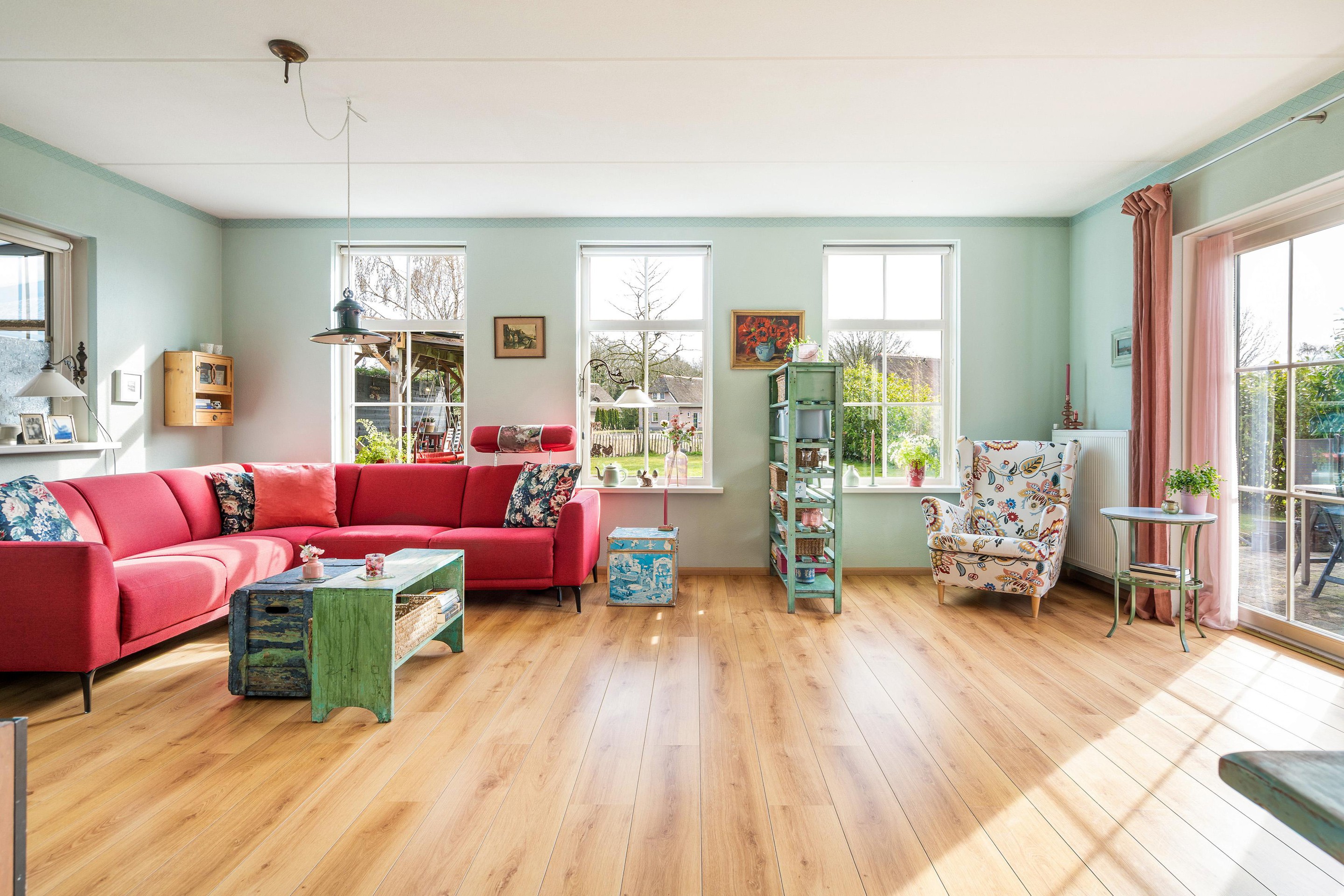 De tuin rondom de woning is verzorgd aangelegd en biedt meerdere zitplekken, zodat u op elk moment van de dag kunt kiezen voor zon of schaduw. De groene setting zorgt voor een ontspannen sfeer en volop privacy.