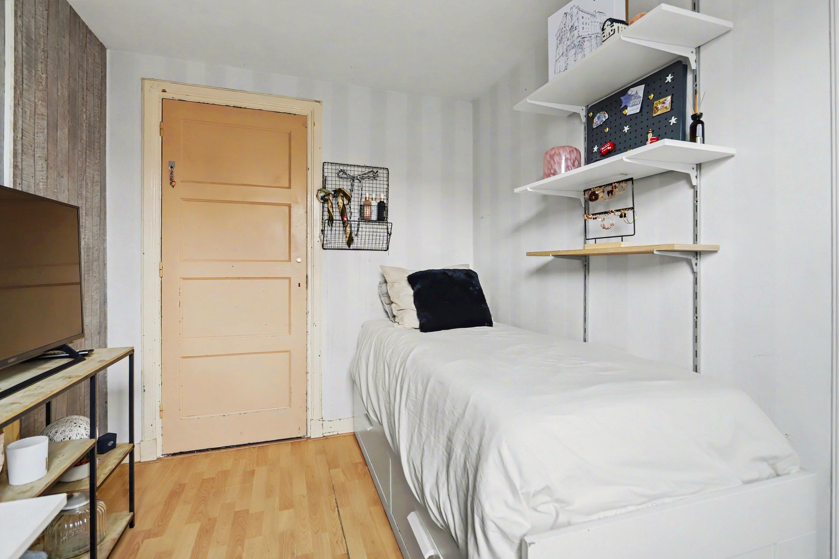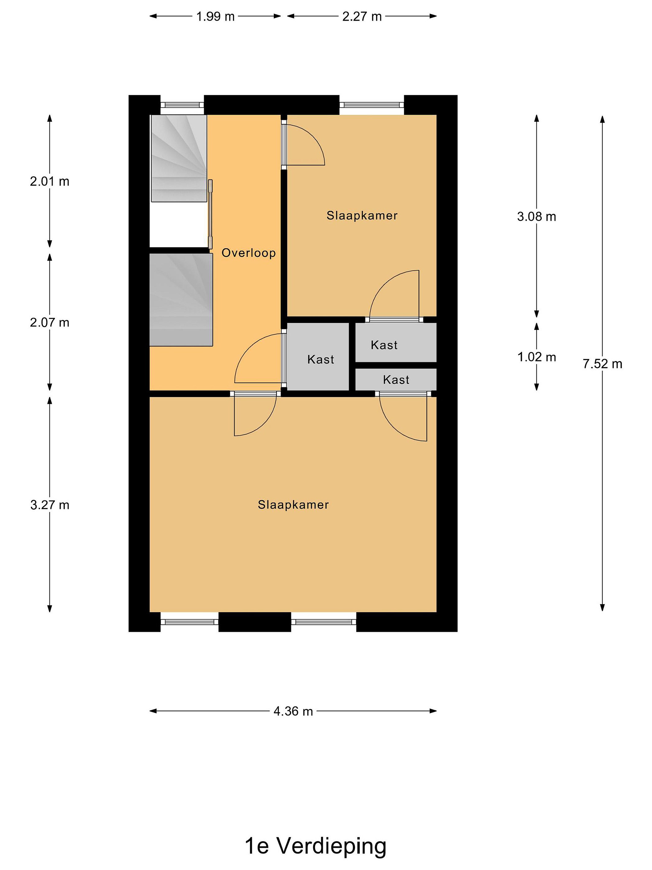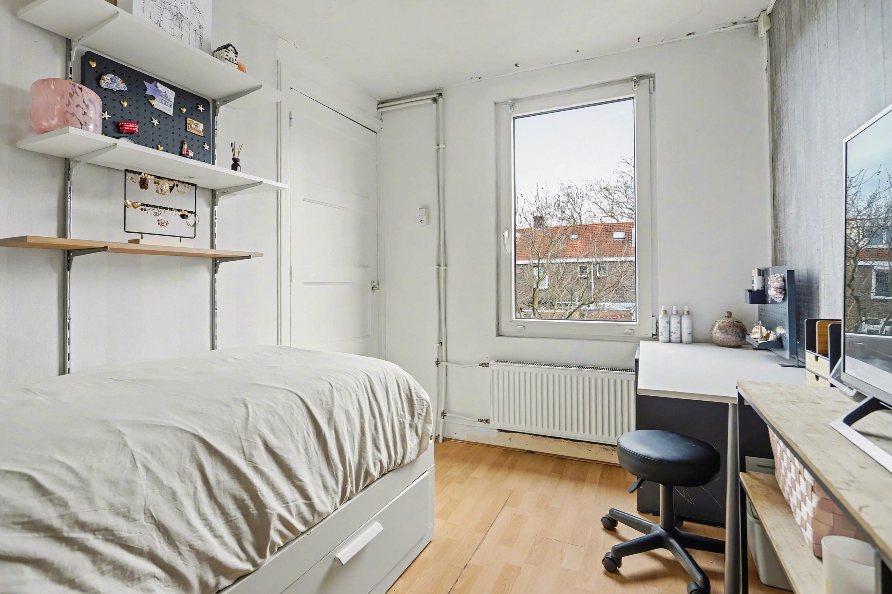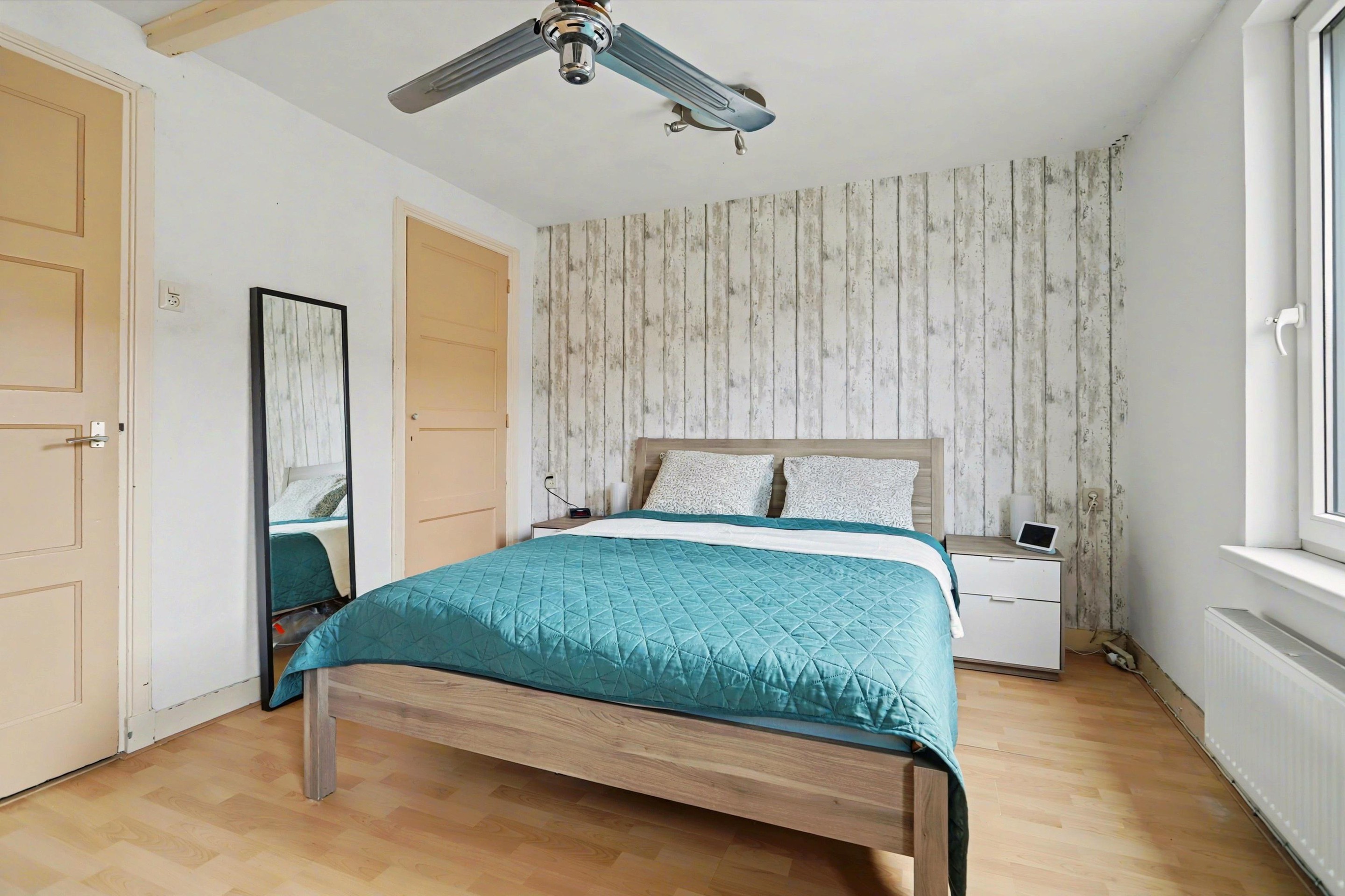 Vanaf de overloop heb je toegang tot twee prettige slaapkamers. Aan de voorzijde bevindt zich een royale slaapkamer met een praktische inbouwkast voor extra bergruimte. Aan de achterzijde ligt de tweede kamer, eveneens voorzien van een inbouwkast. De slaapkamer aan de voorzijde beschikt over een rolluik. De gehele verdieping is afgewerkt met een laminaatvloer.
