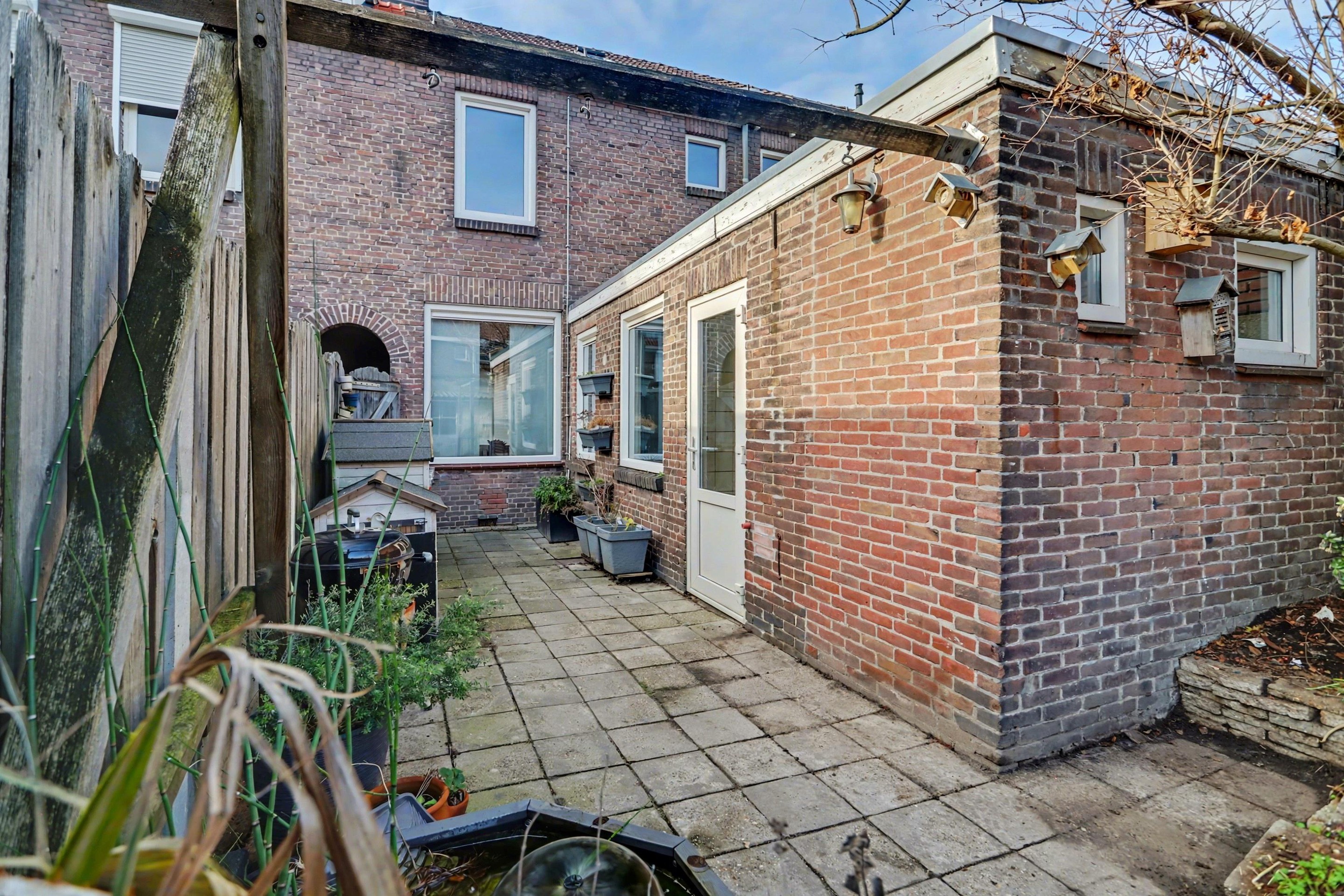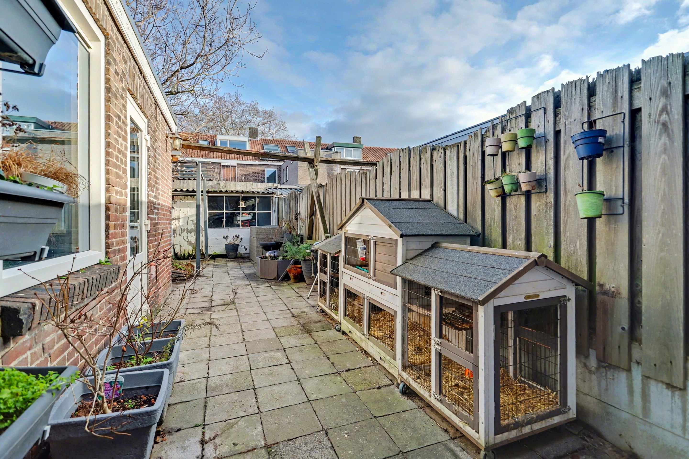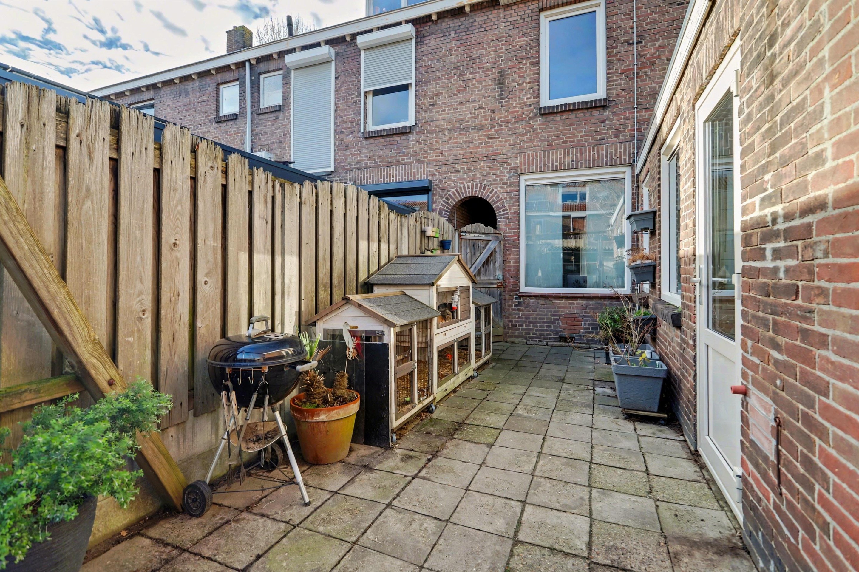 De onderhoudsvriendelijke achtertuin is volledig betegeld en ligt op het oosten. Achterin de tuin bevindt zich een ruime berging, ideaal voor het stallen van fietsen, gereedschap of het uitoefenen van hobby’s. Via de poort is er een praktische achterom naar de straat.