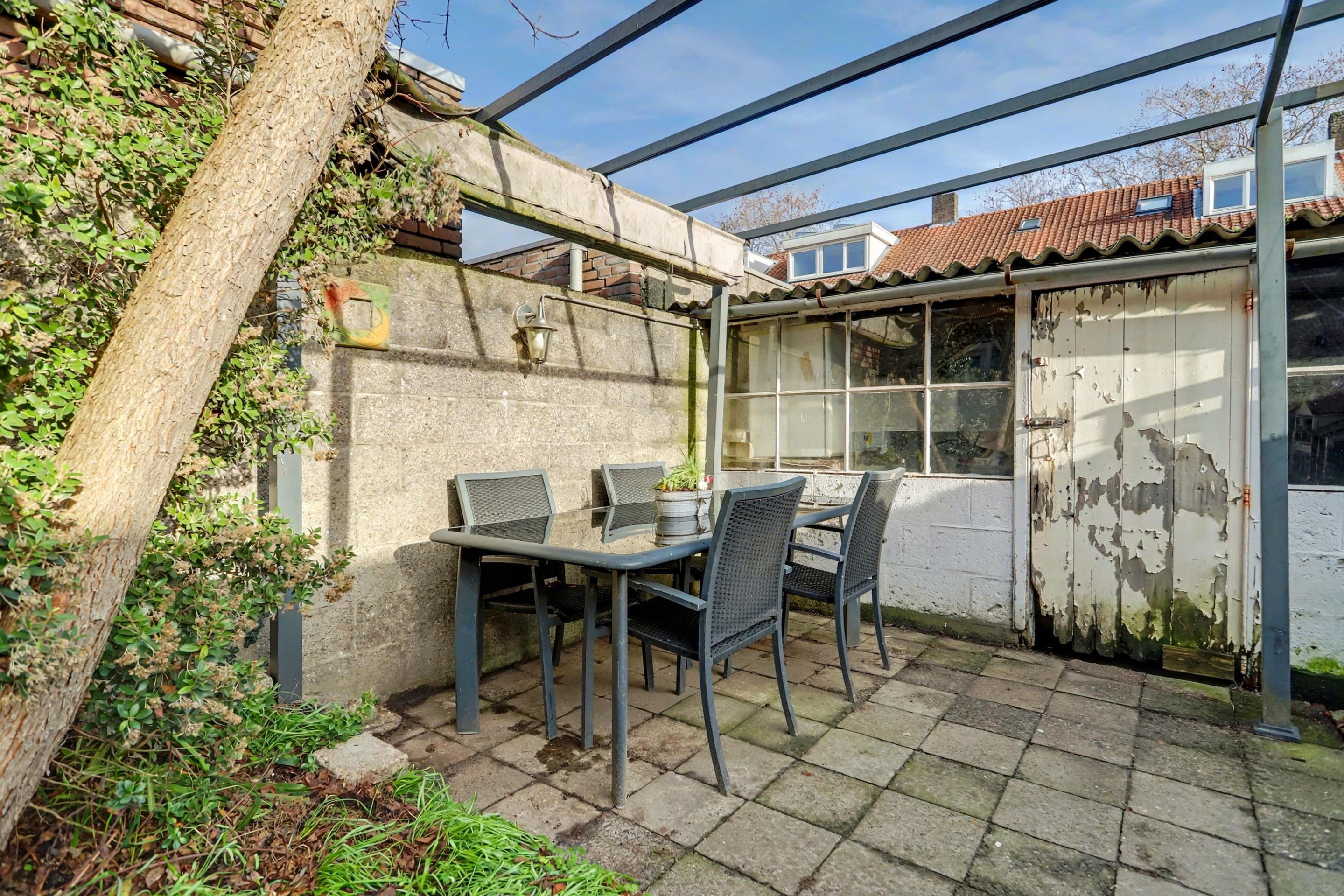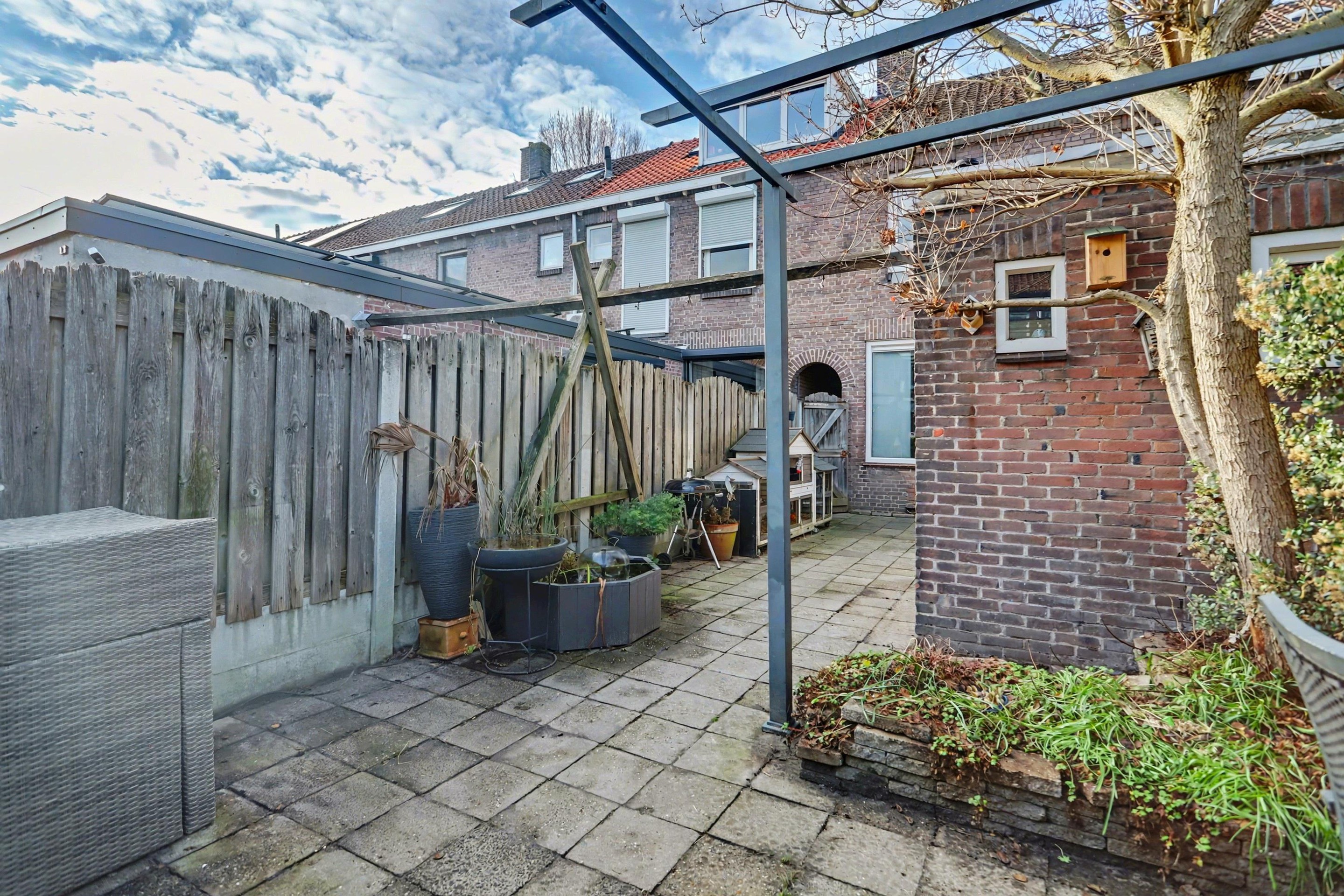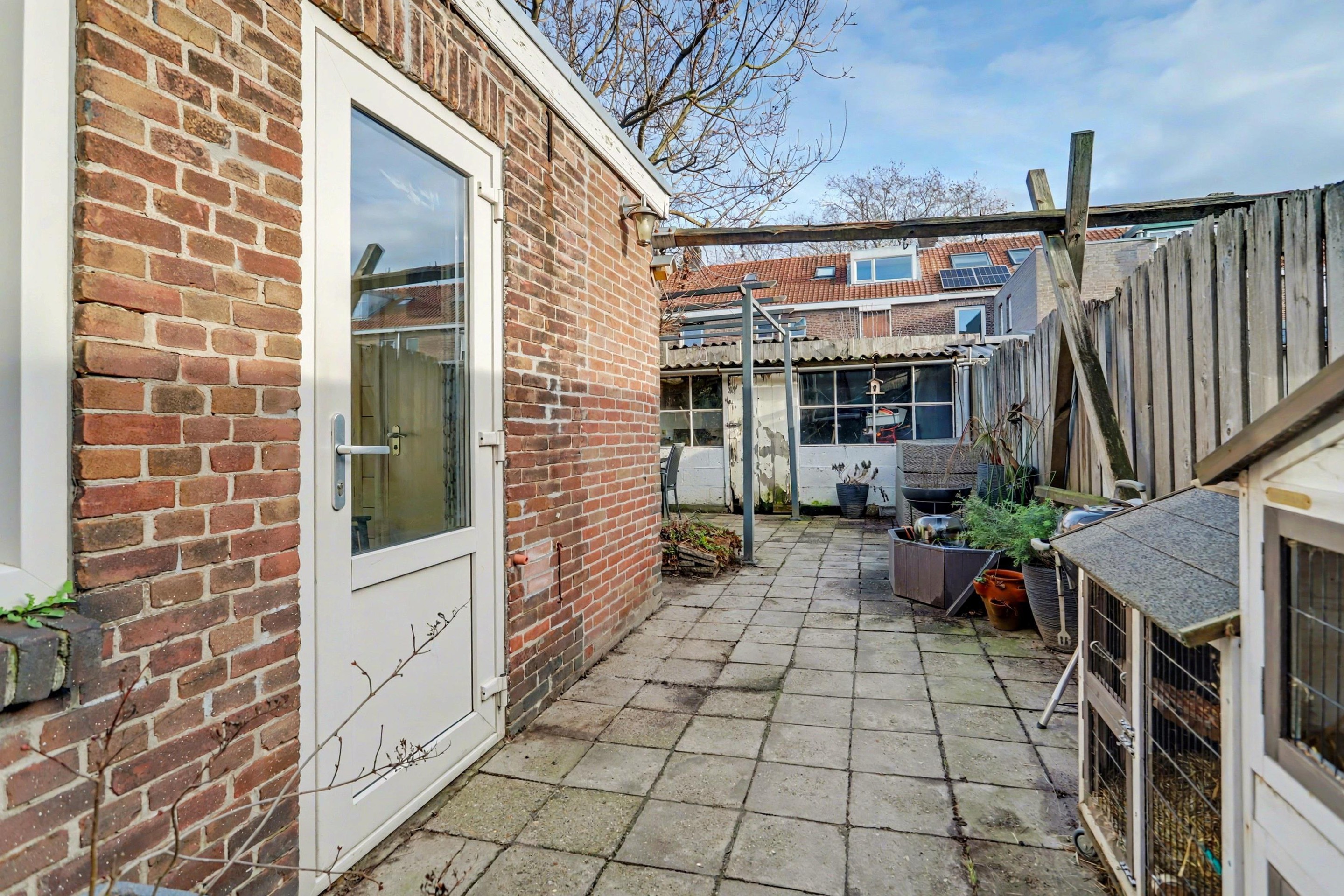 De onderhoudsvriendelijke achtertuin is volledig betegeld en ligt op het oosten. Achterin de tuin bevindt zich een ruime berging, ideaal voor het stallen van fietsen, gereedschap of het uitoefenen van hobby’s. Via de poort is er een praktische achterom naar de straat.