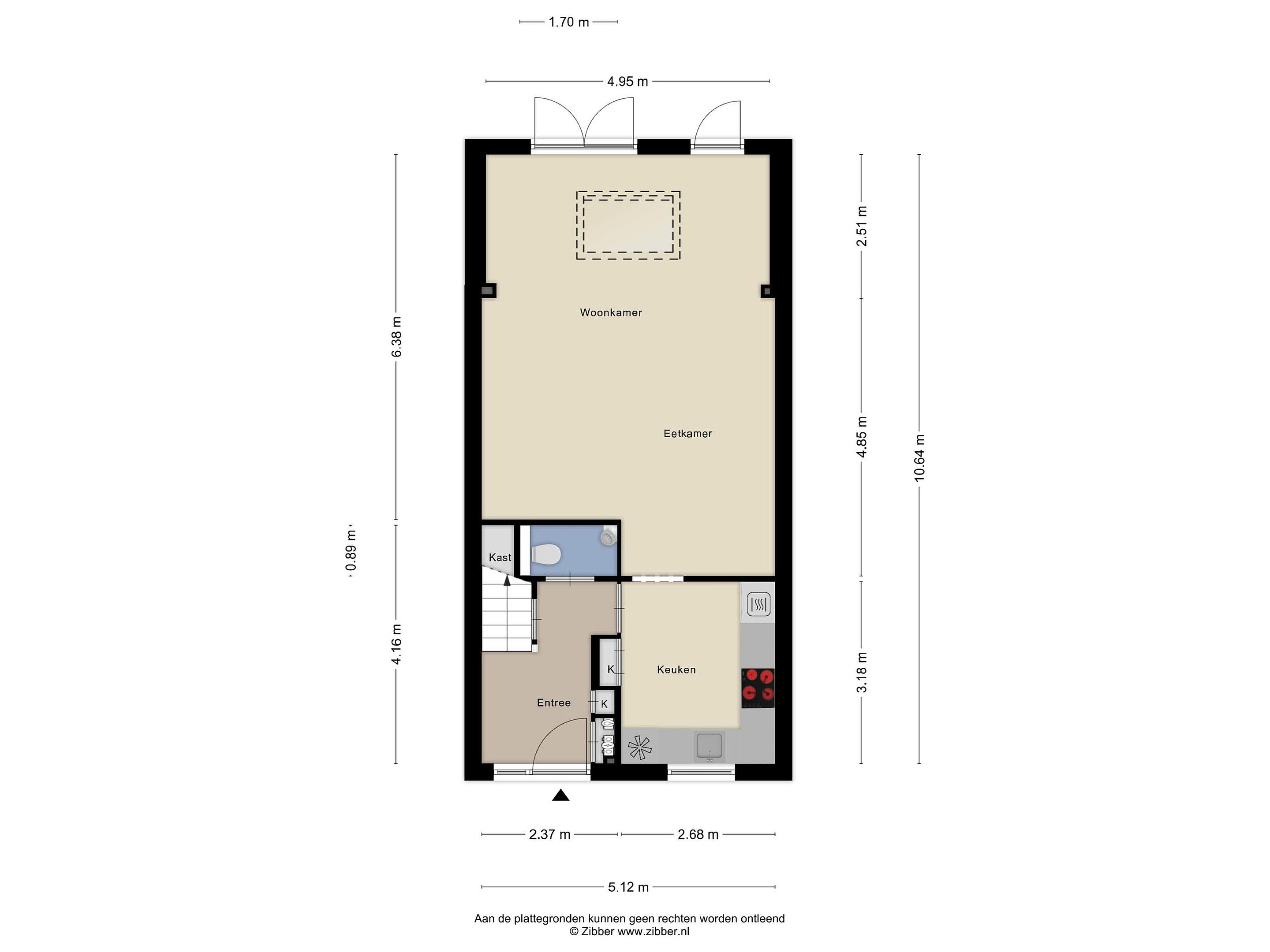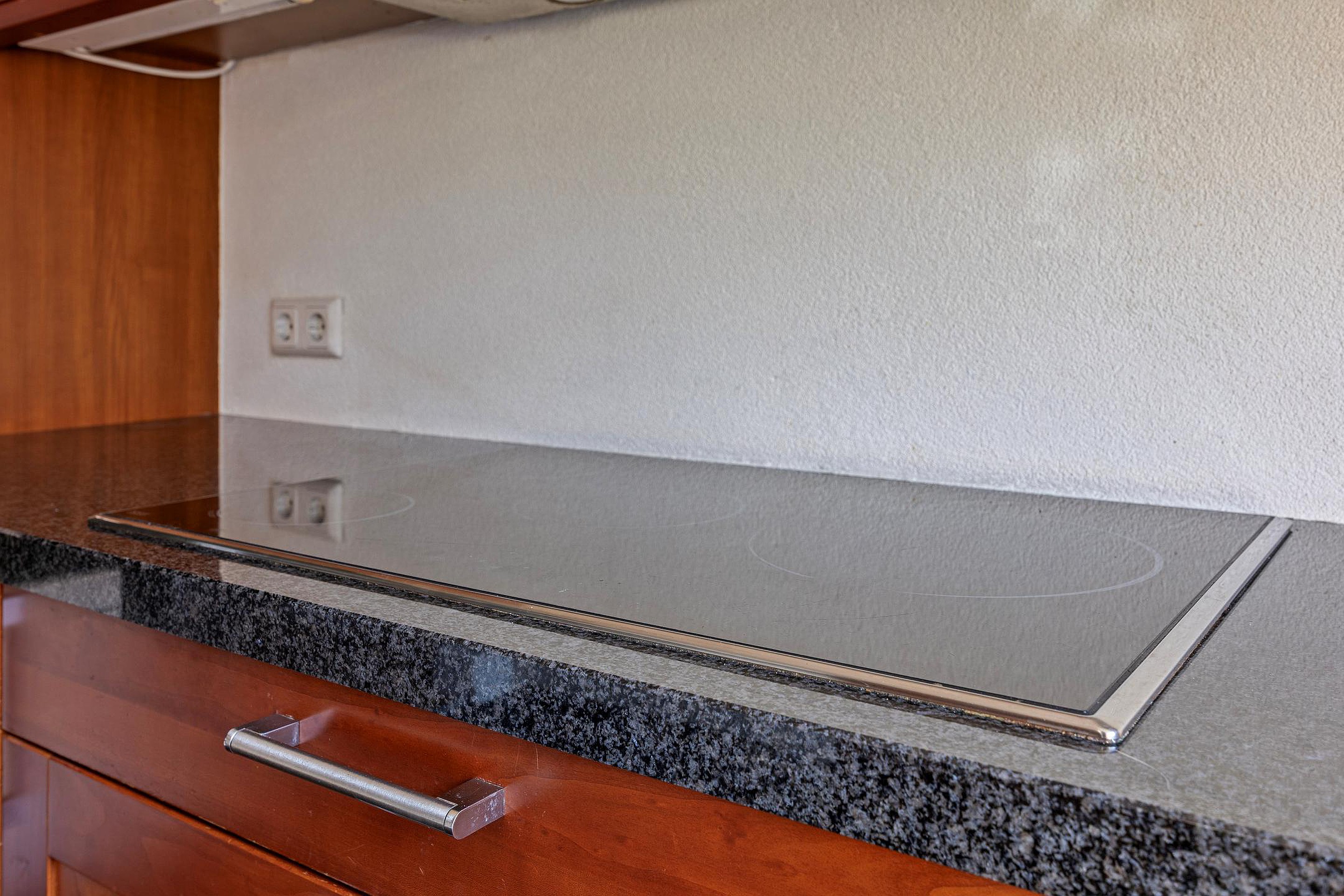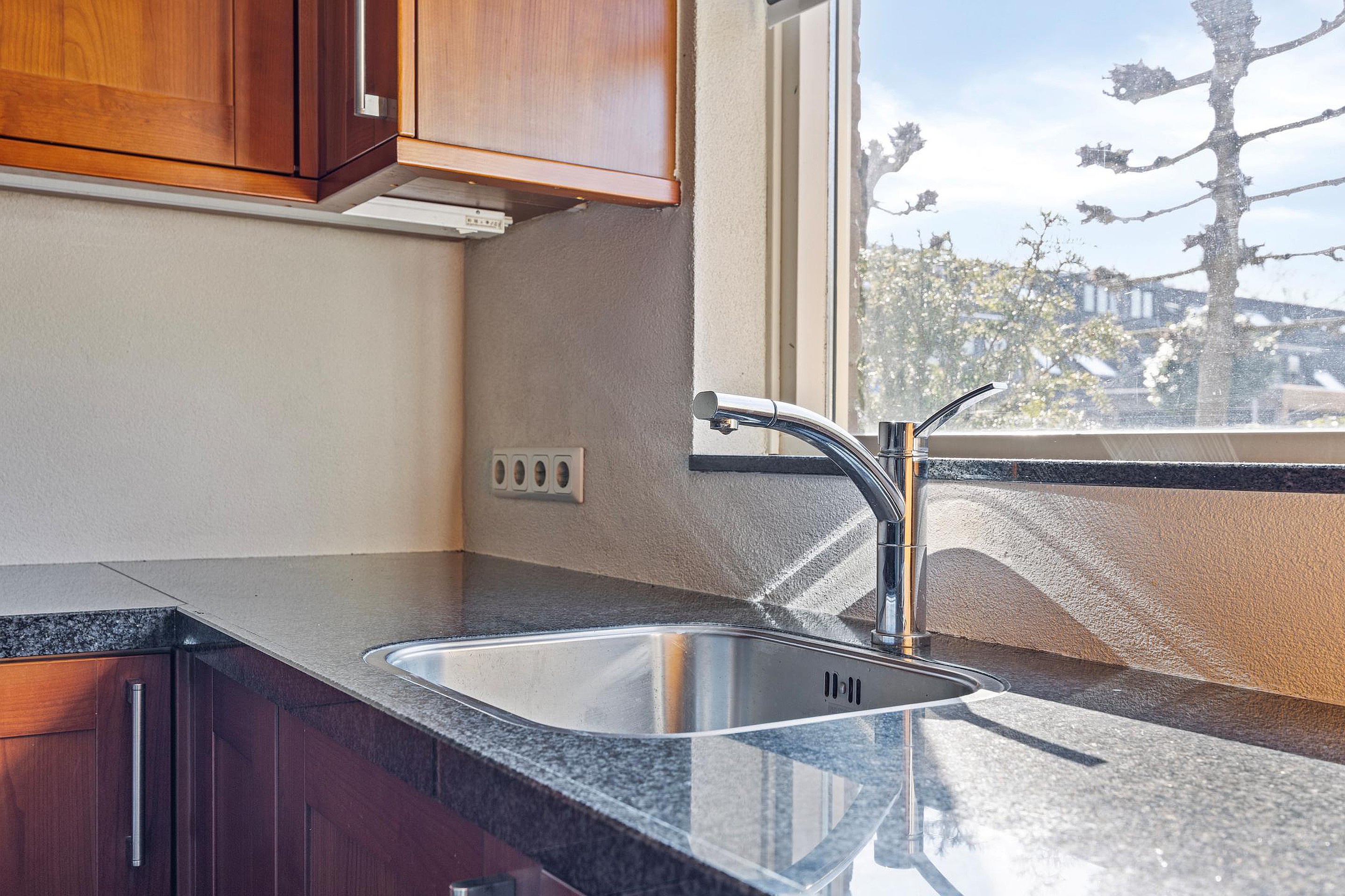 Je komt binnen via de voortuin waar je meteen je auto kwijt kunt (ideaal voor elektrische rijders ⚡). Aan de voorzijde ligt de moderne keuken met marmeren werkblad en de volgende inbouwapparaten een inductiekookplaat, koelkast, afzuigkap magnetron en oven.