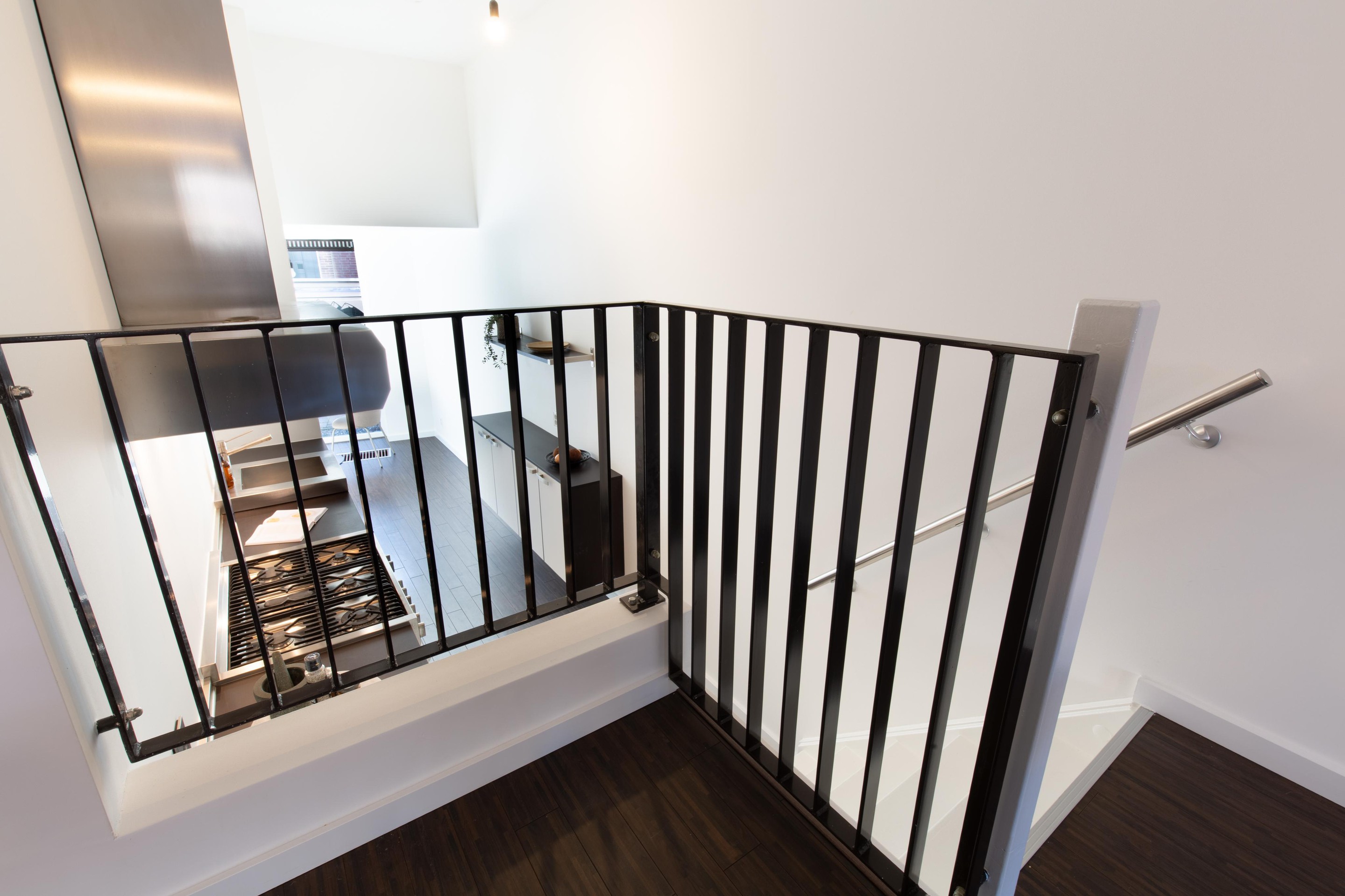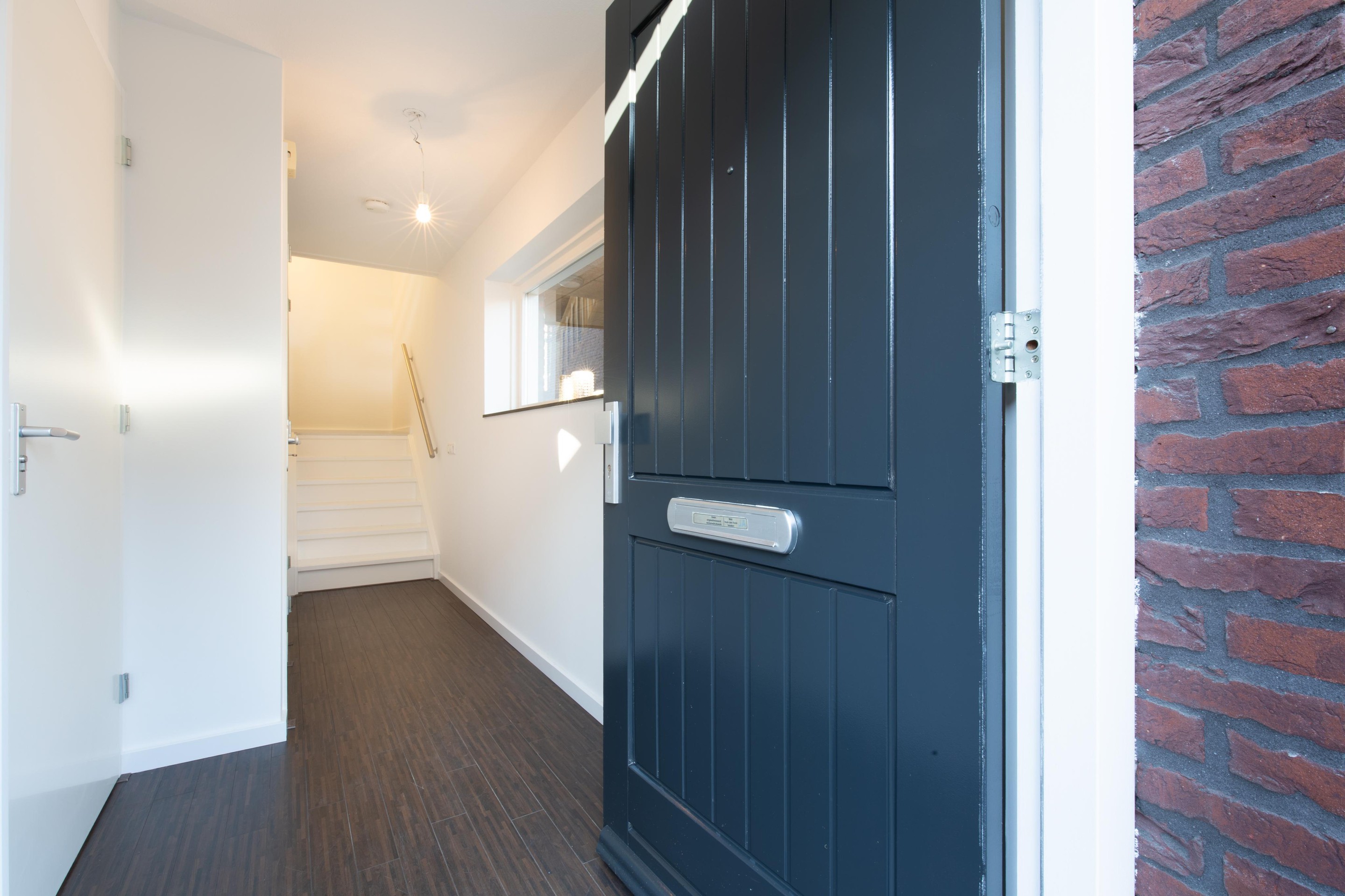 De opvallende dieprode bakstenen, Franse stalen balkons, het imposante trappenhuis en de speelse geometrie maken deze woning onderscheidend — stijlvol zonder overdreven te zijn.