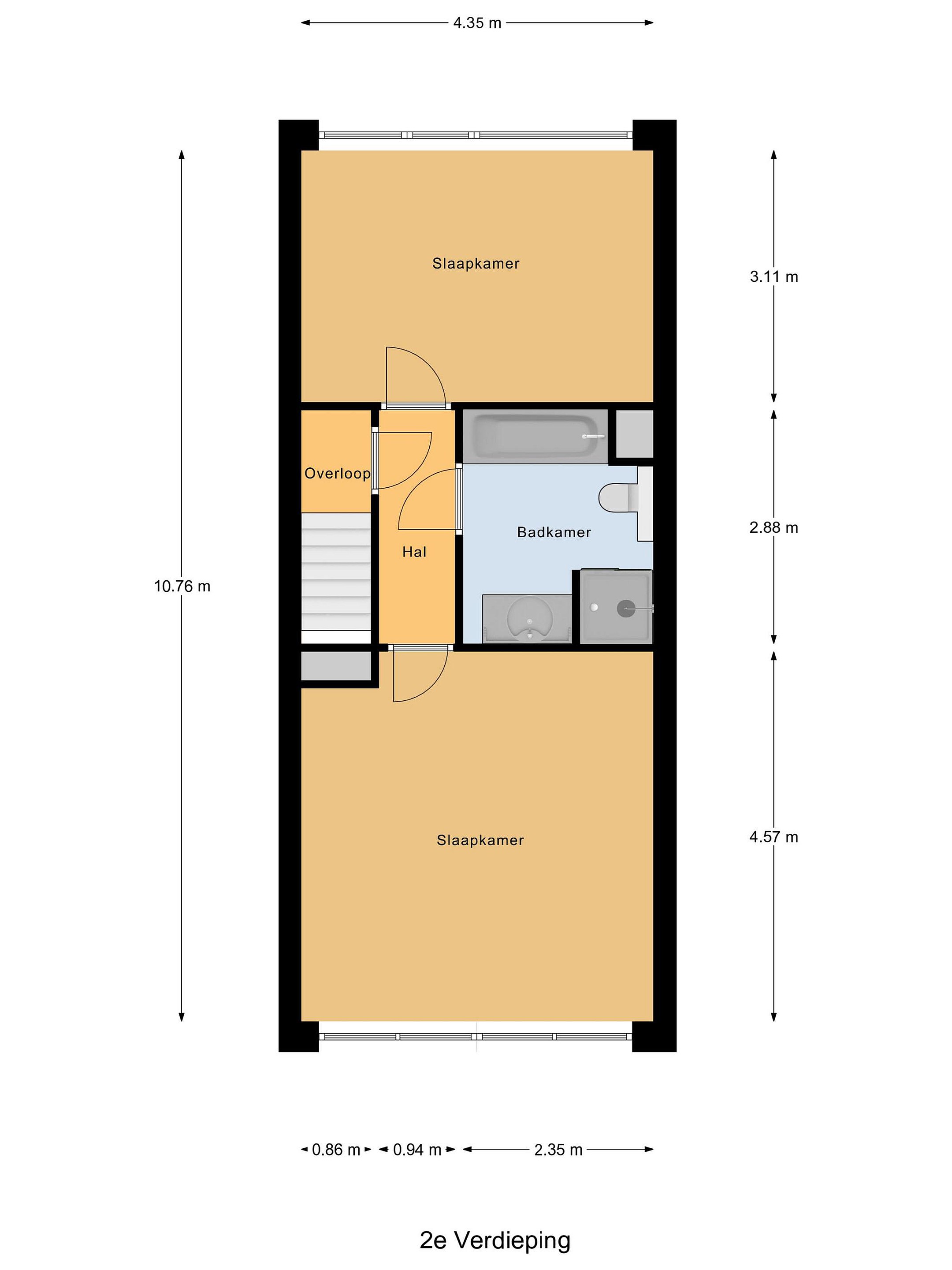 Vanaf de overloop heb je toegang tot twee slaapkamers en de badkamer.