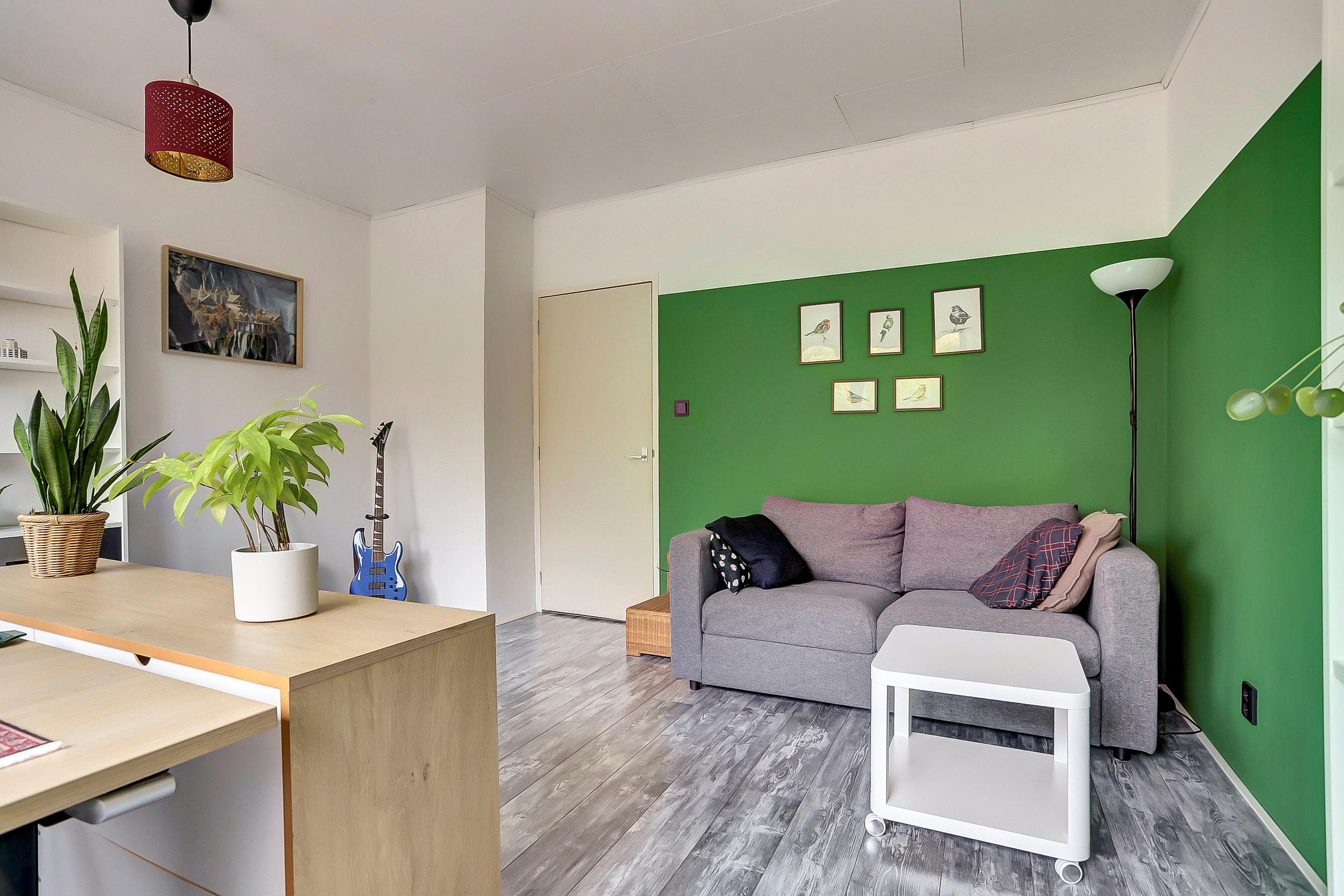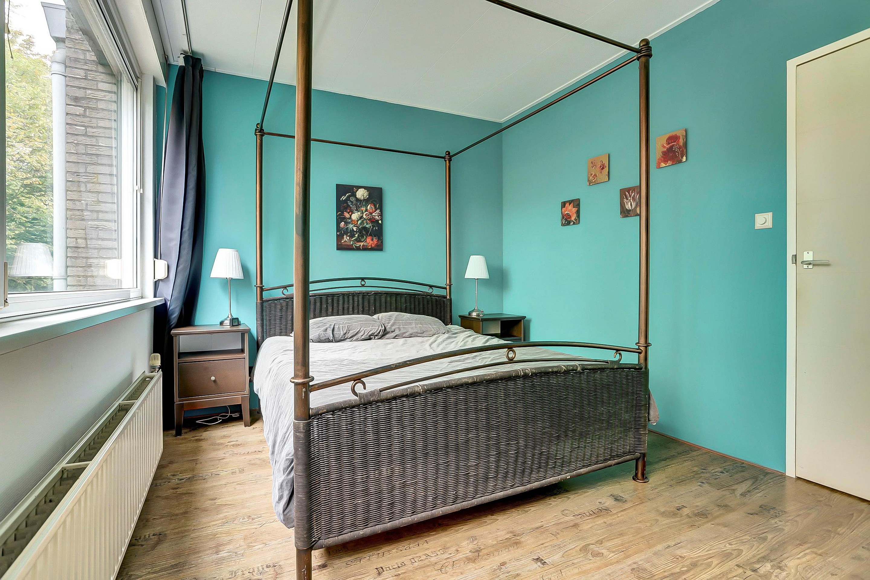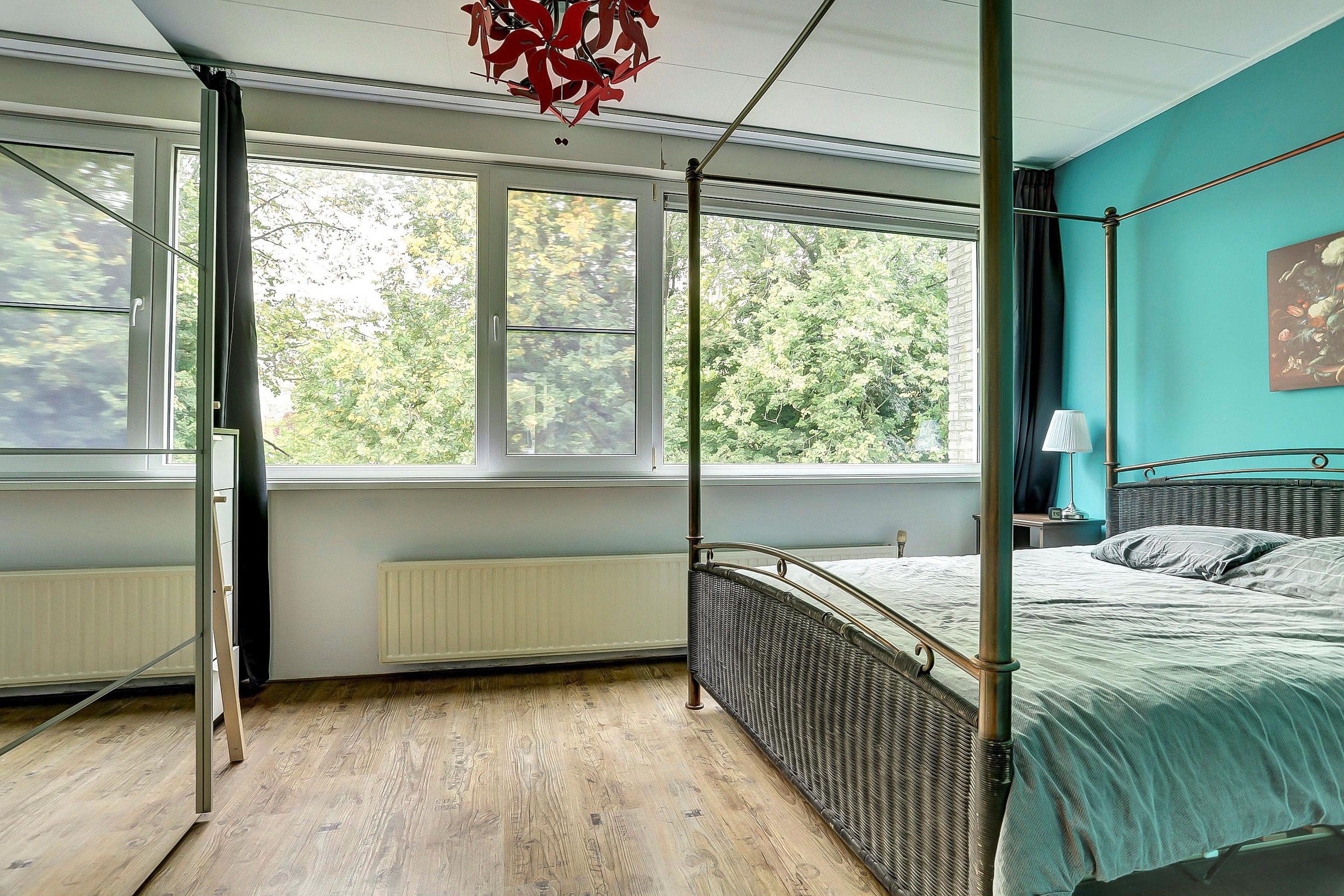 Aan de rustige achterzijde ligt de tweede slaapkamer, met een prachtig uitzicht op de groene bomenstrook — een heerlijk rustgevend aanzicht. Beide kamers zijn voorzien van kunststof kozijnen met HR++-glas en geïntegreerde rolluiken. De vloer is netjes afgewerkt met laminaat.