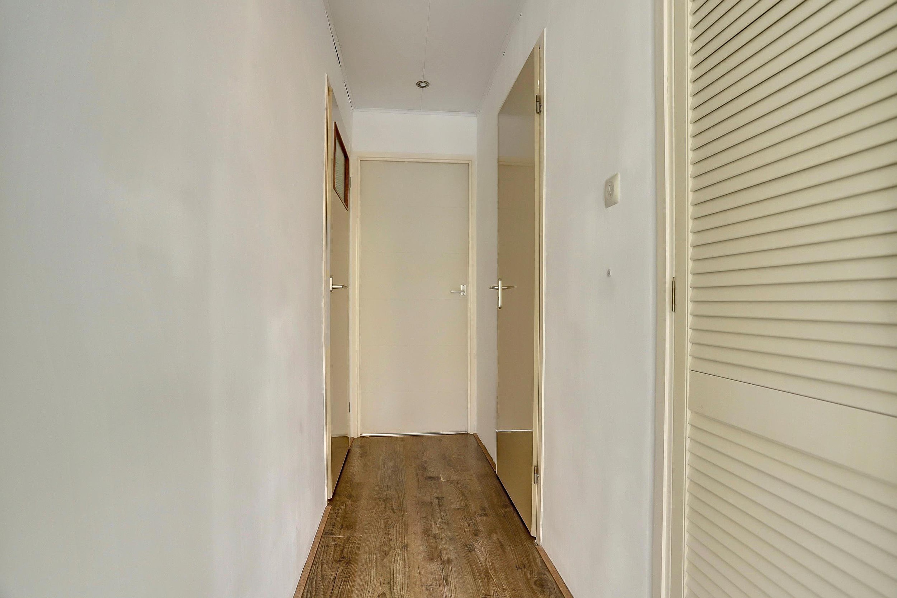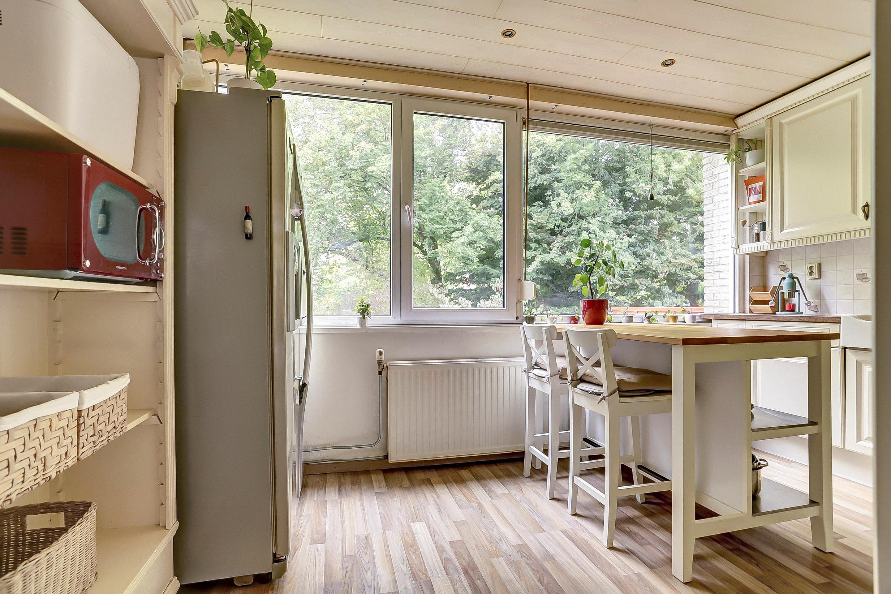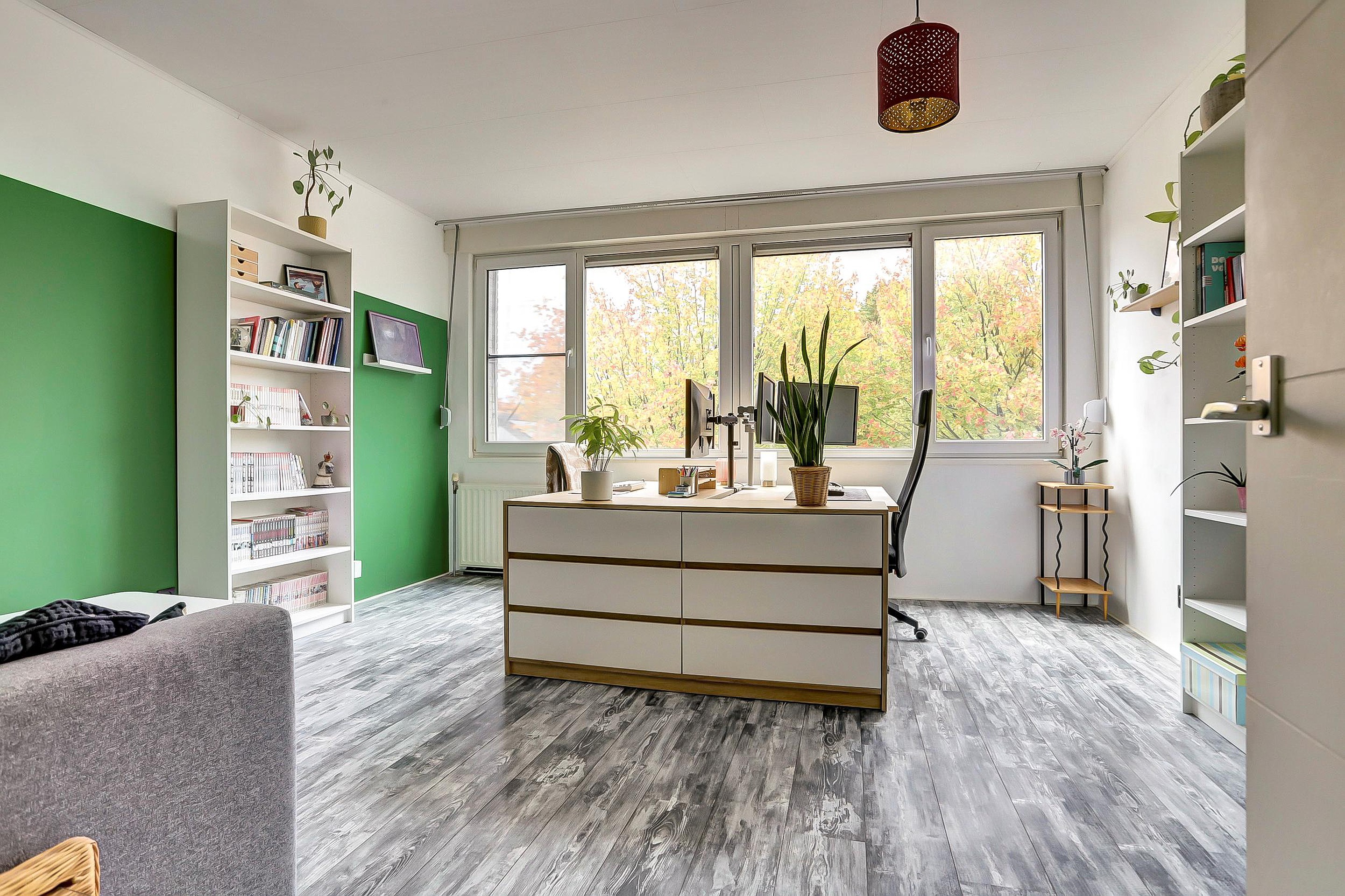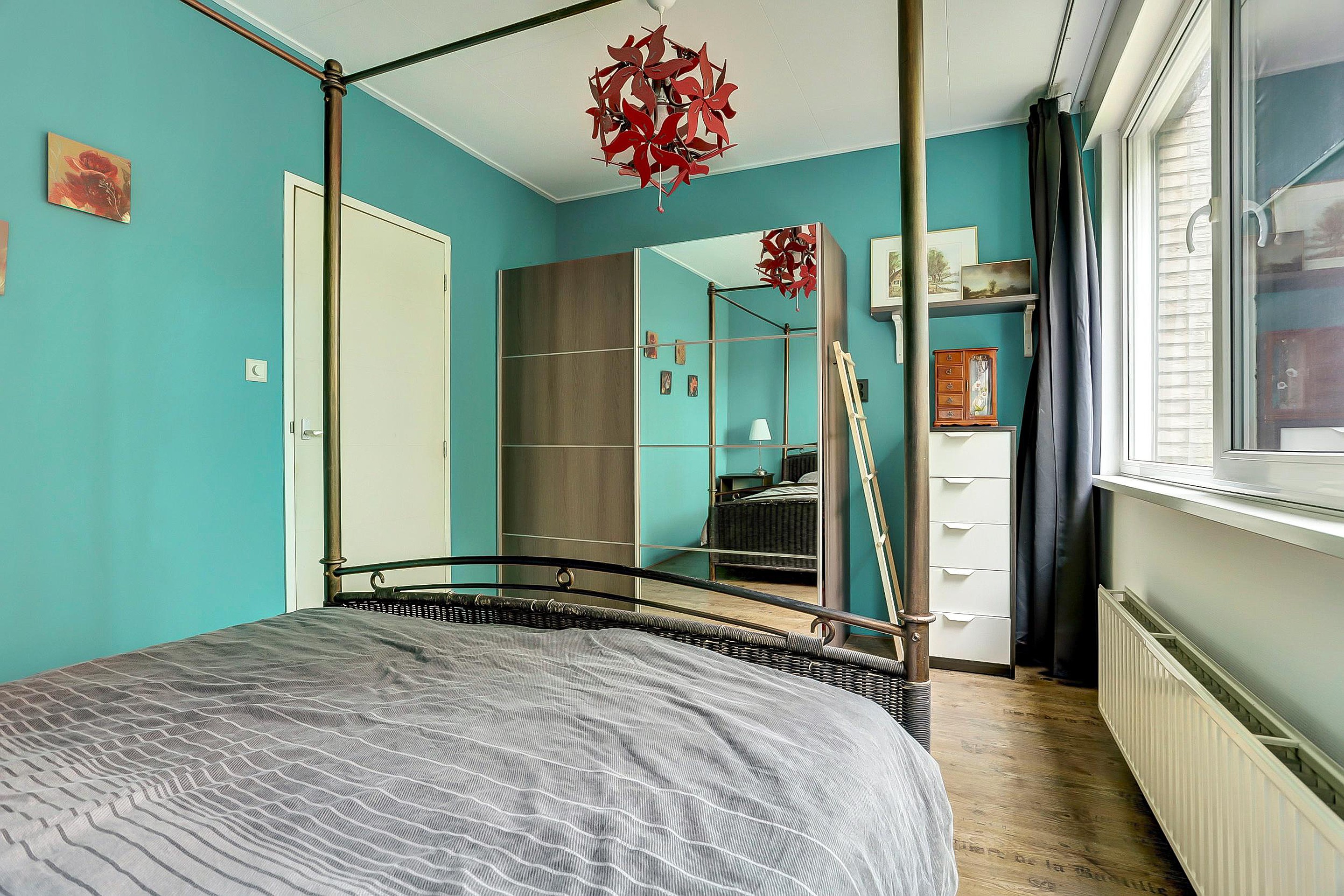 Aan de rustige achterzijde ligt de tweede slaapkamer, met een prachtig uitzicht op de groene bomenstrook — een heerlijk rustgevend aanzicht. Beide kamers zijn voorzien van kunststof kozijnen met HR++-glas en geïntegreerde rolluiken. De vloer is netjes afgewerkt met laminaat.