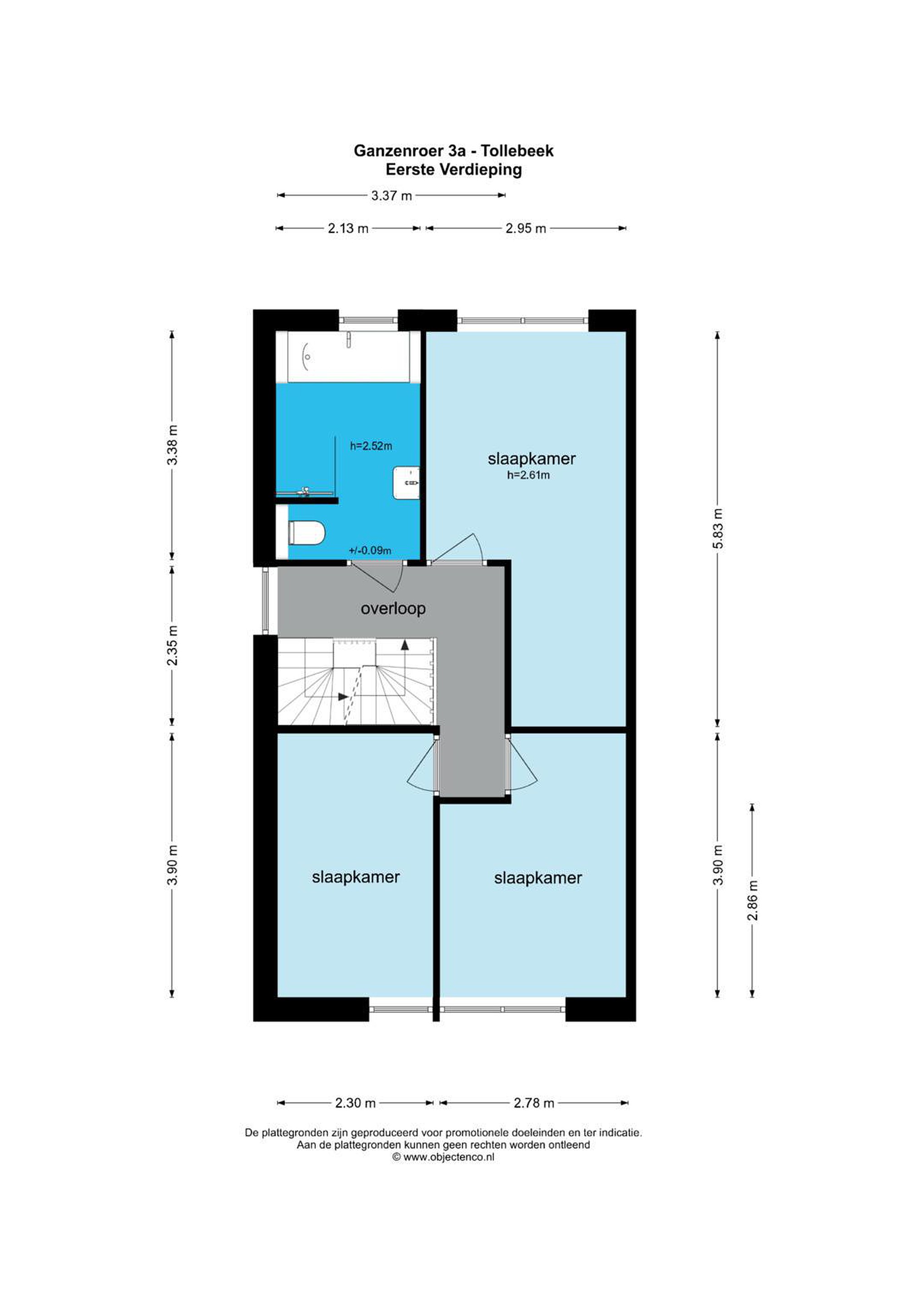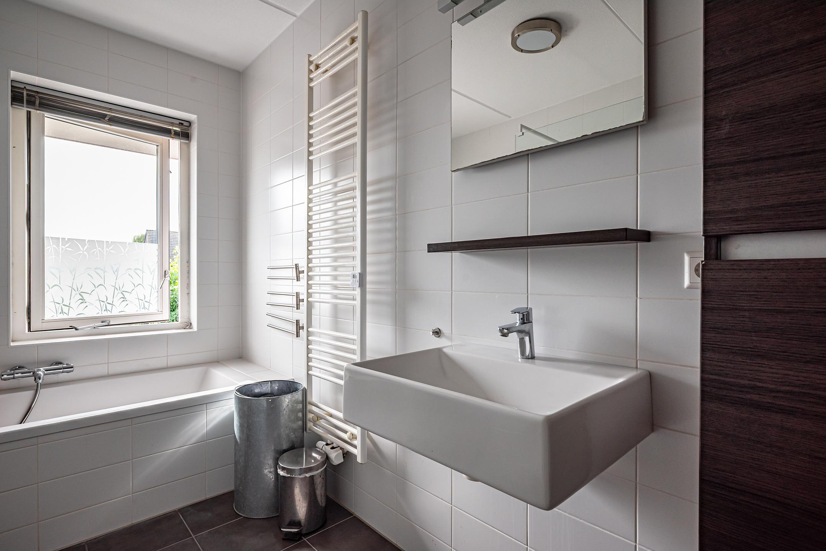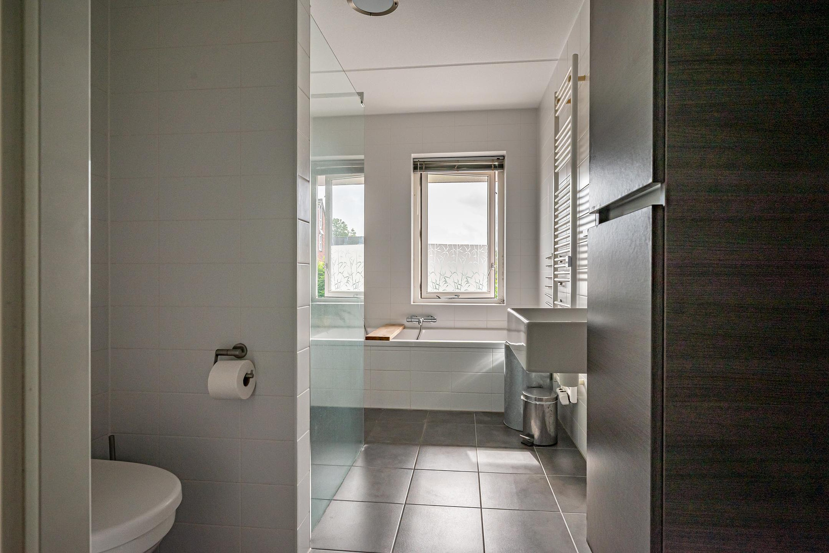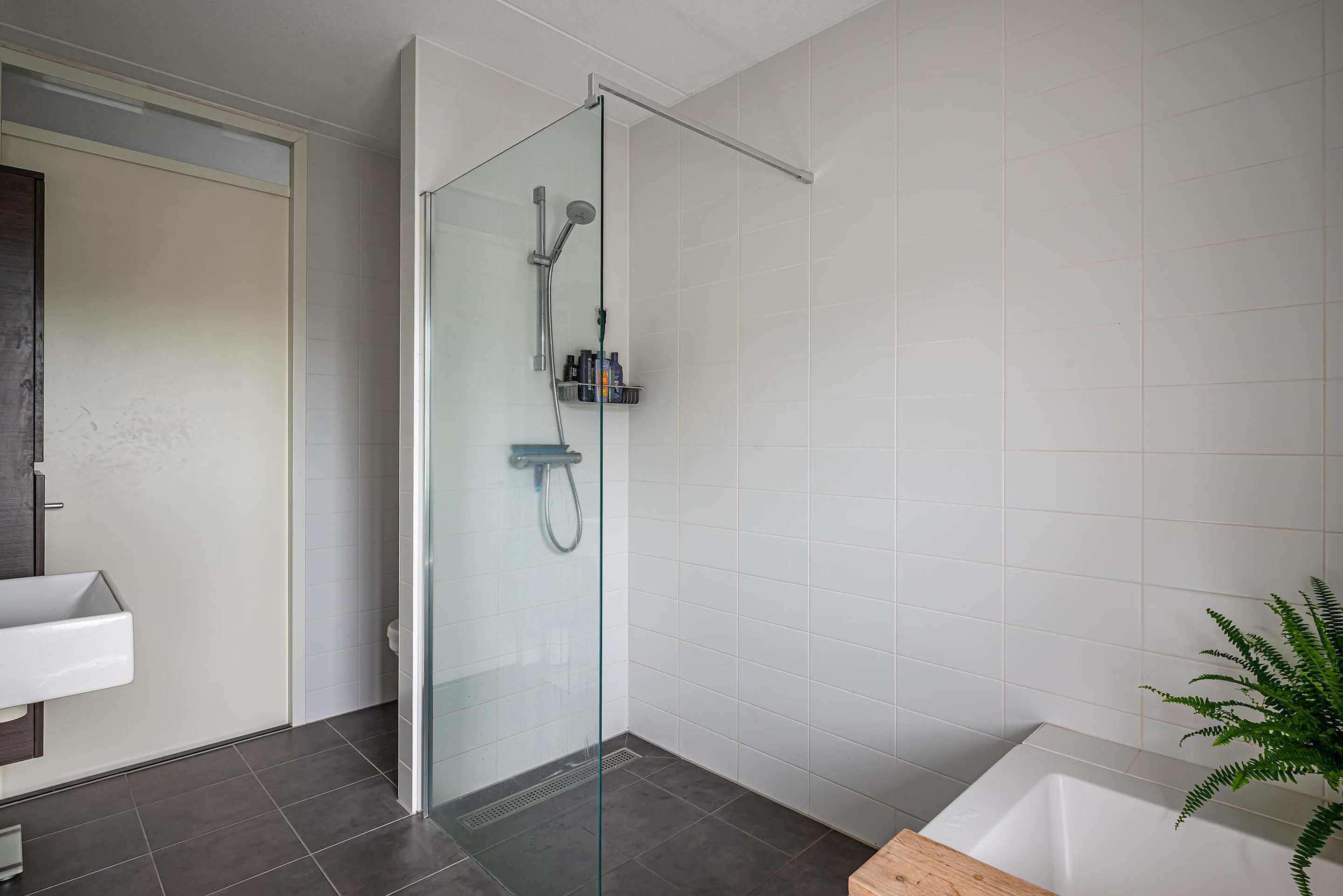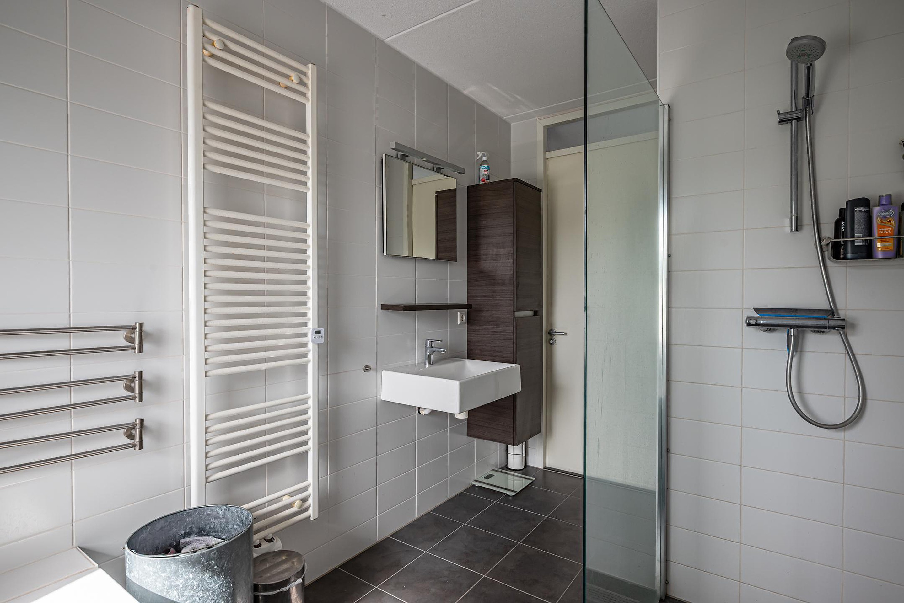 Overloop met veel daglicht, ruime badkamer met ligbad, inloopdouche, toilet, design radiator en wastafel en badmeubel. Verder een riante ouderslaapkamer met kleedruimte en twee ruime slaapkamers.