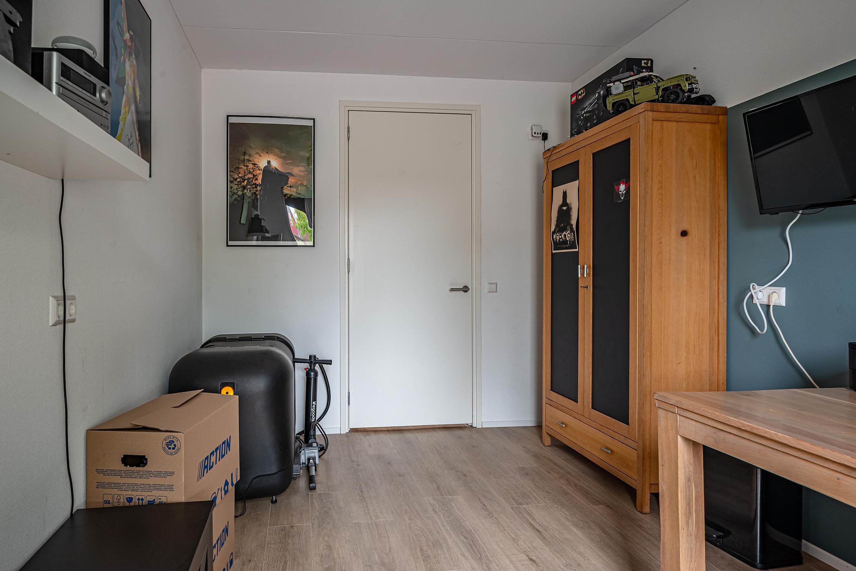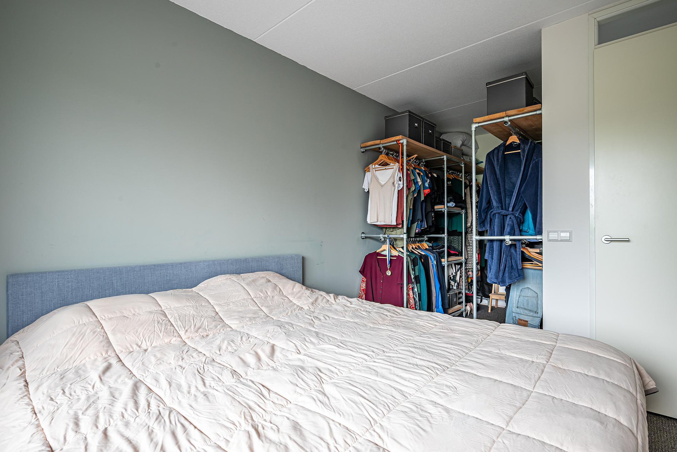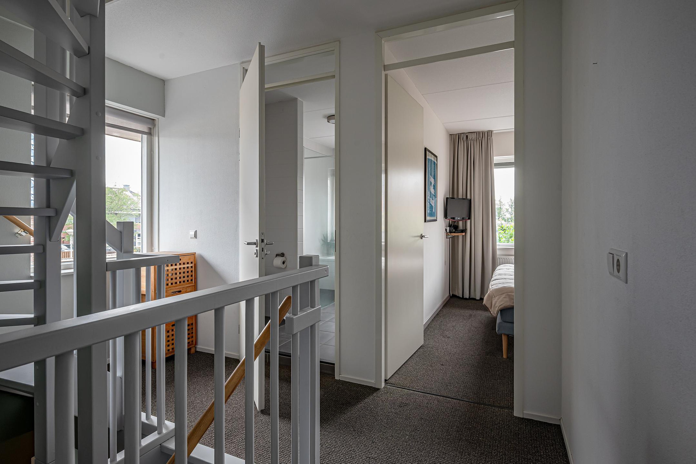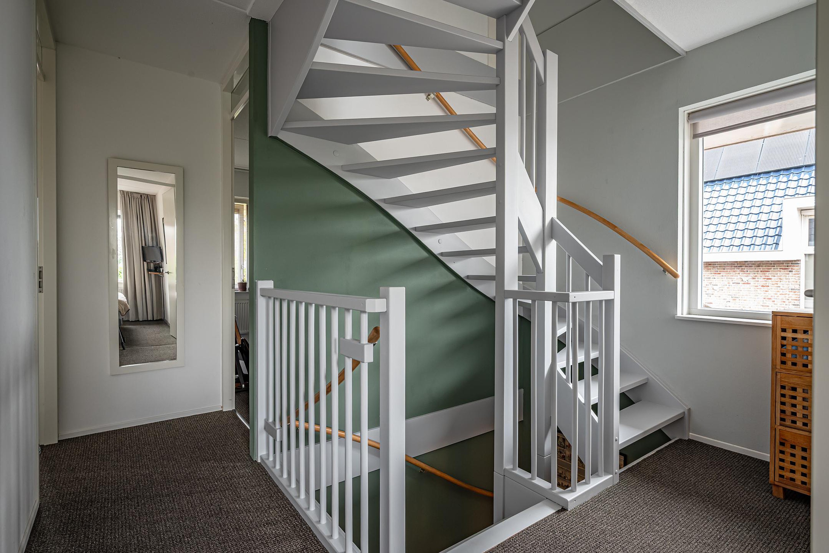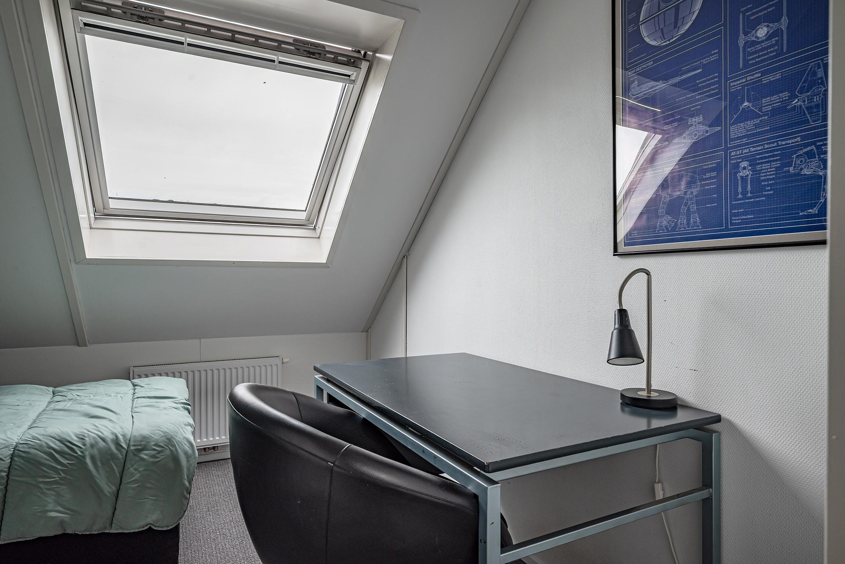 Vaste trap naar voorzolder met CV-ketel (Intergas, 2012), omvormer en praktische riante inloopkast met toegang tot kleine bergzolder. Twee slaapkamers met dakramen en volop bergruimte o.a. achter de knieschotten.
