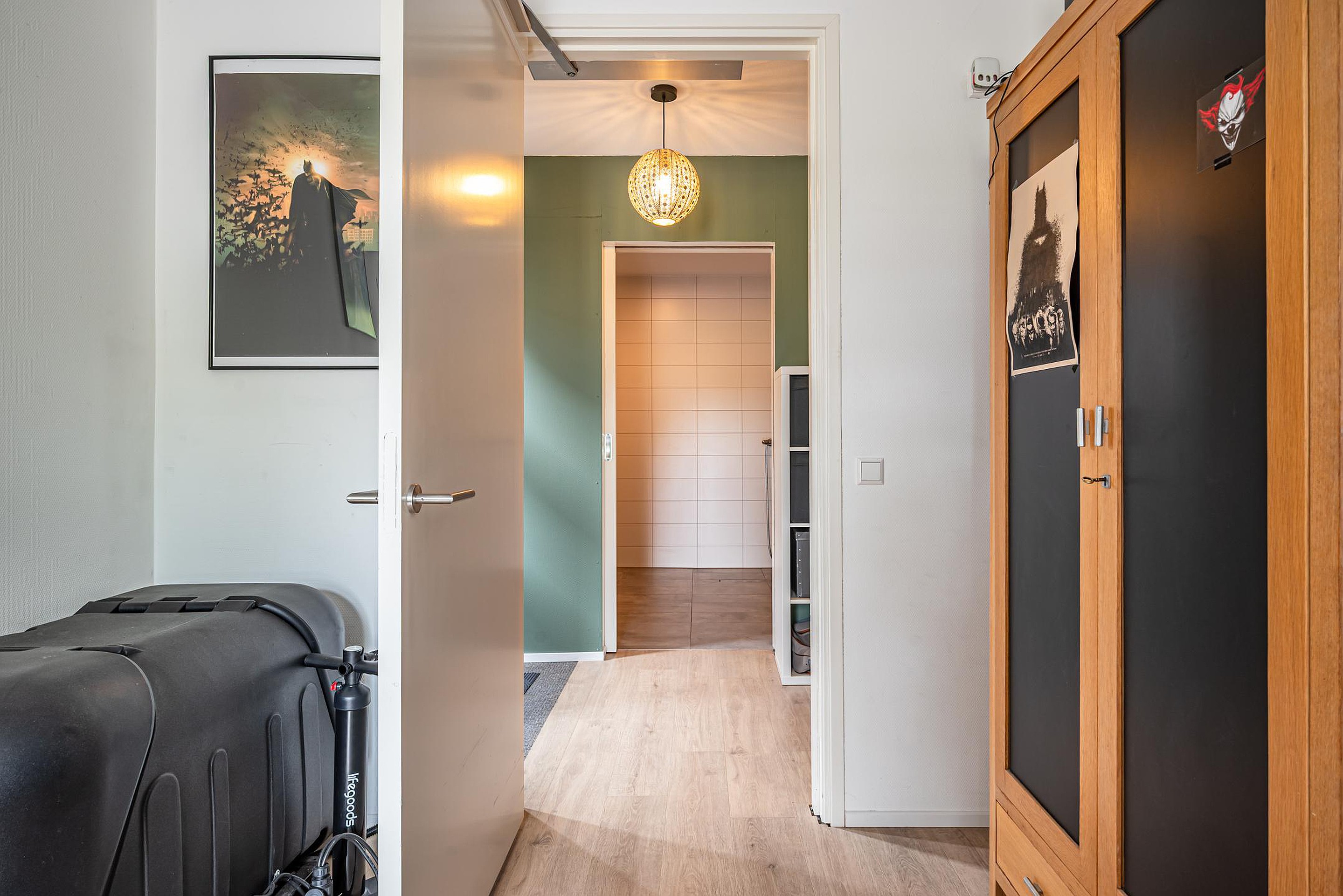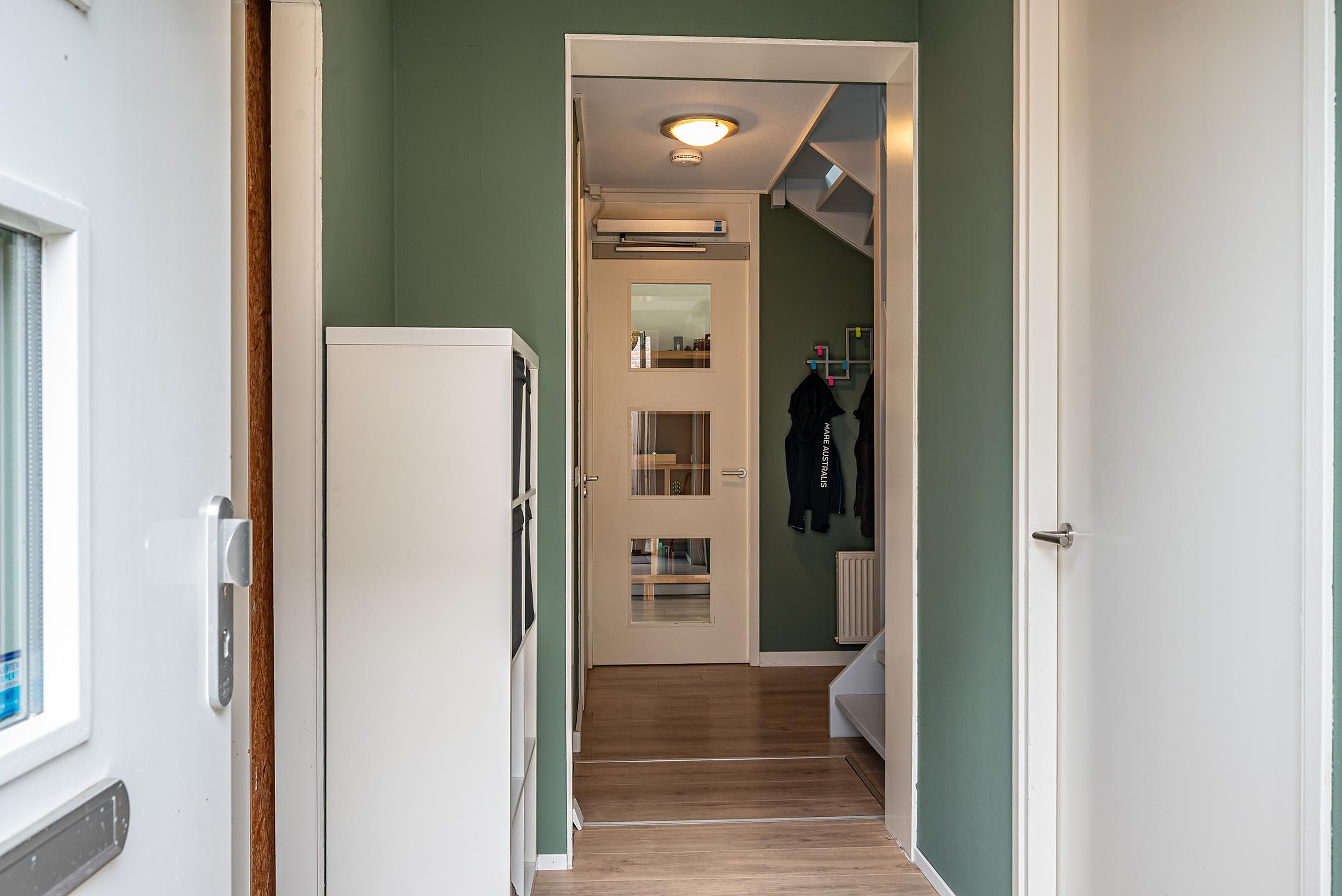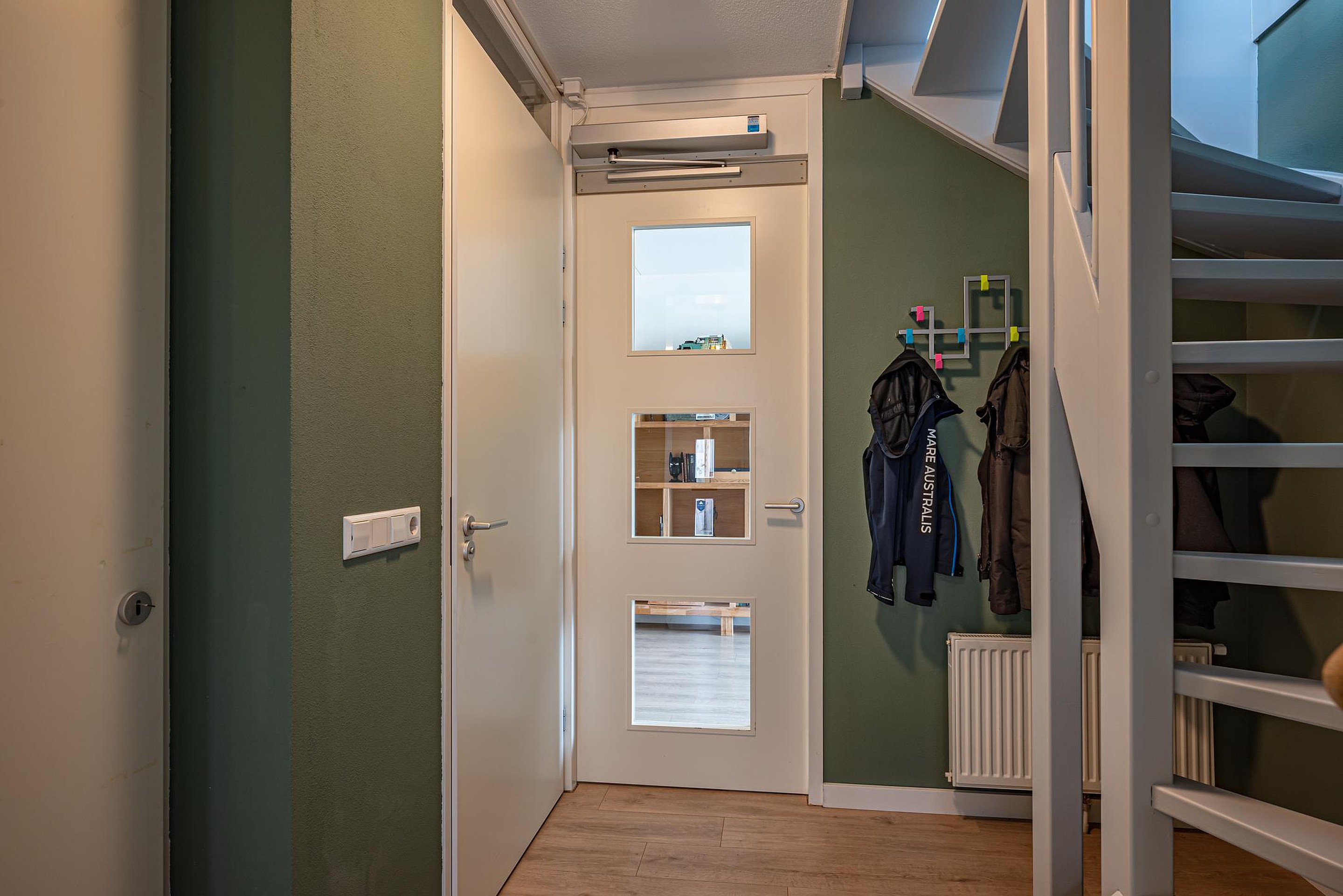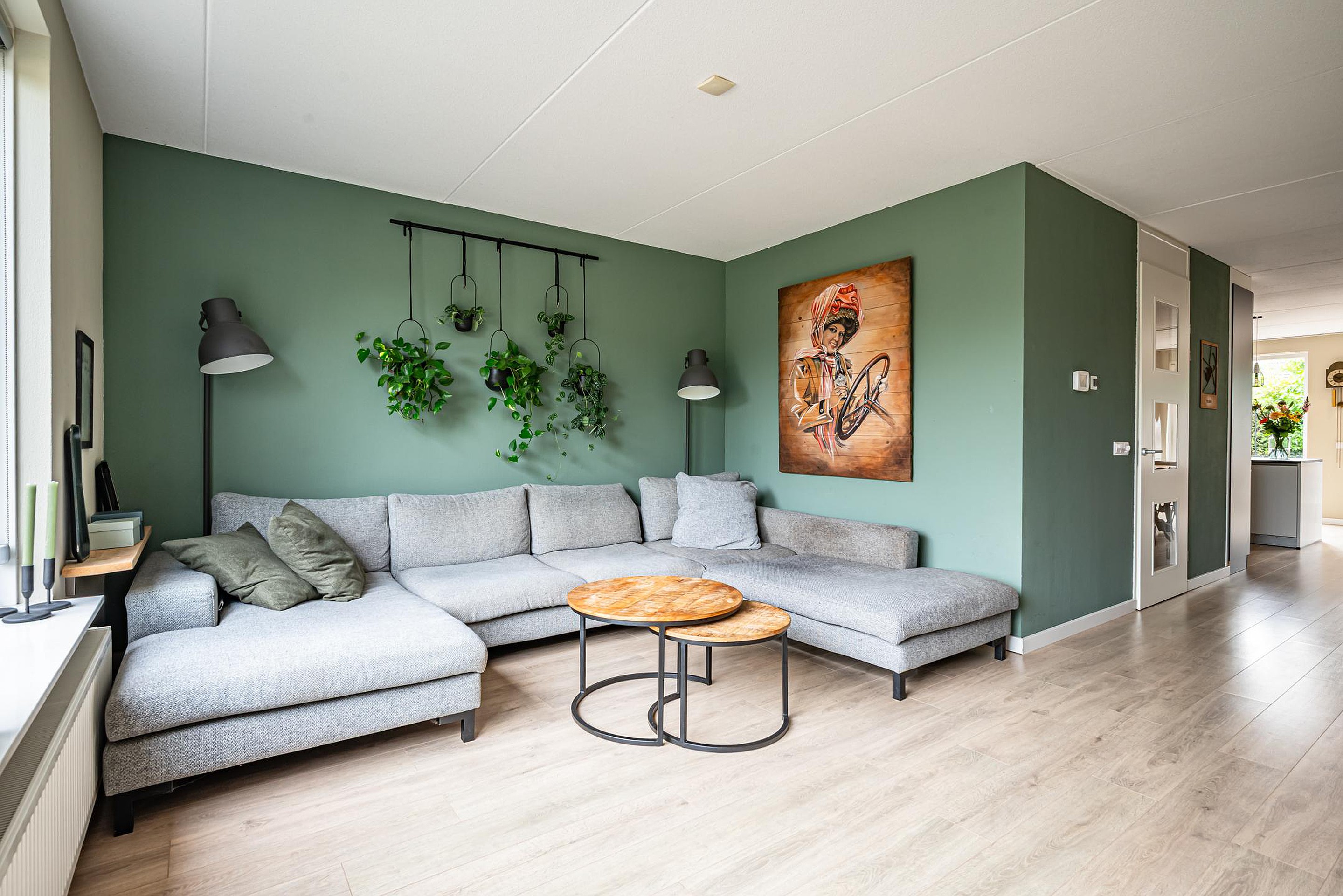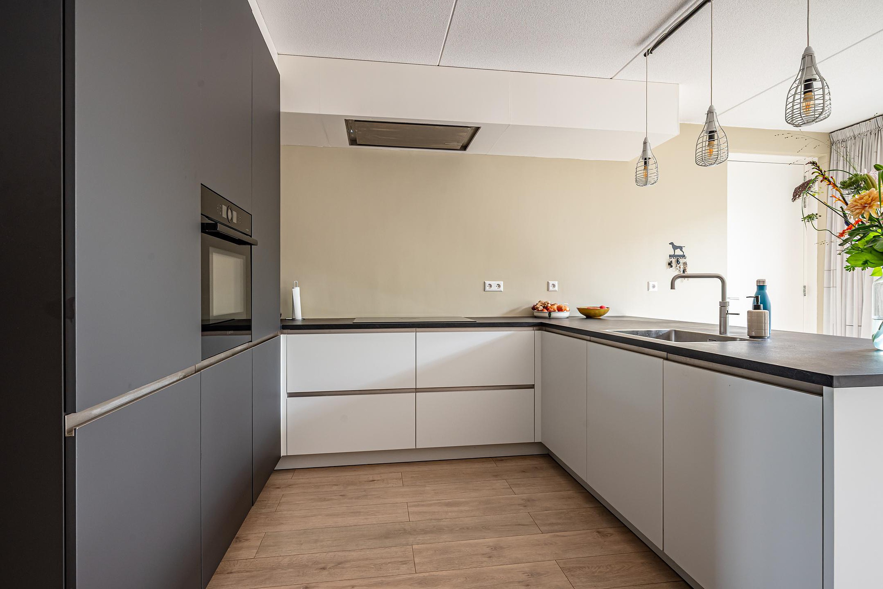 Straatgerichte, lichte L-vormige woonkamer met uitzicht over groenvoorziening; royale uitgebouwde leefkeuken met openslaande deuren naar de tuin (uitvalscherm aanwezig). De luxe keuken (2022) beschikt over hoogwaardige inbouwapparatuur en volop bergruimte. Aansluitend bevindt zich de bijkeuken met witgoedaansluitingen, veel opbergmogelijkheden en toegang tot de tuin.