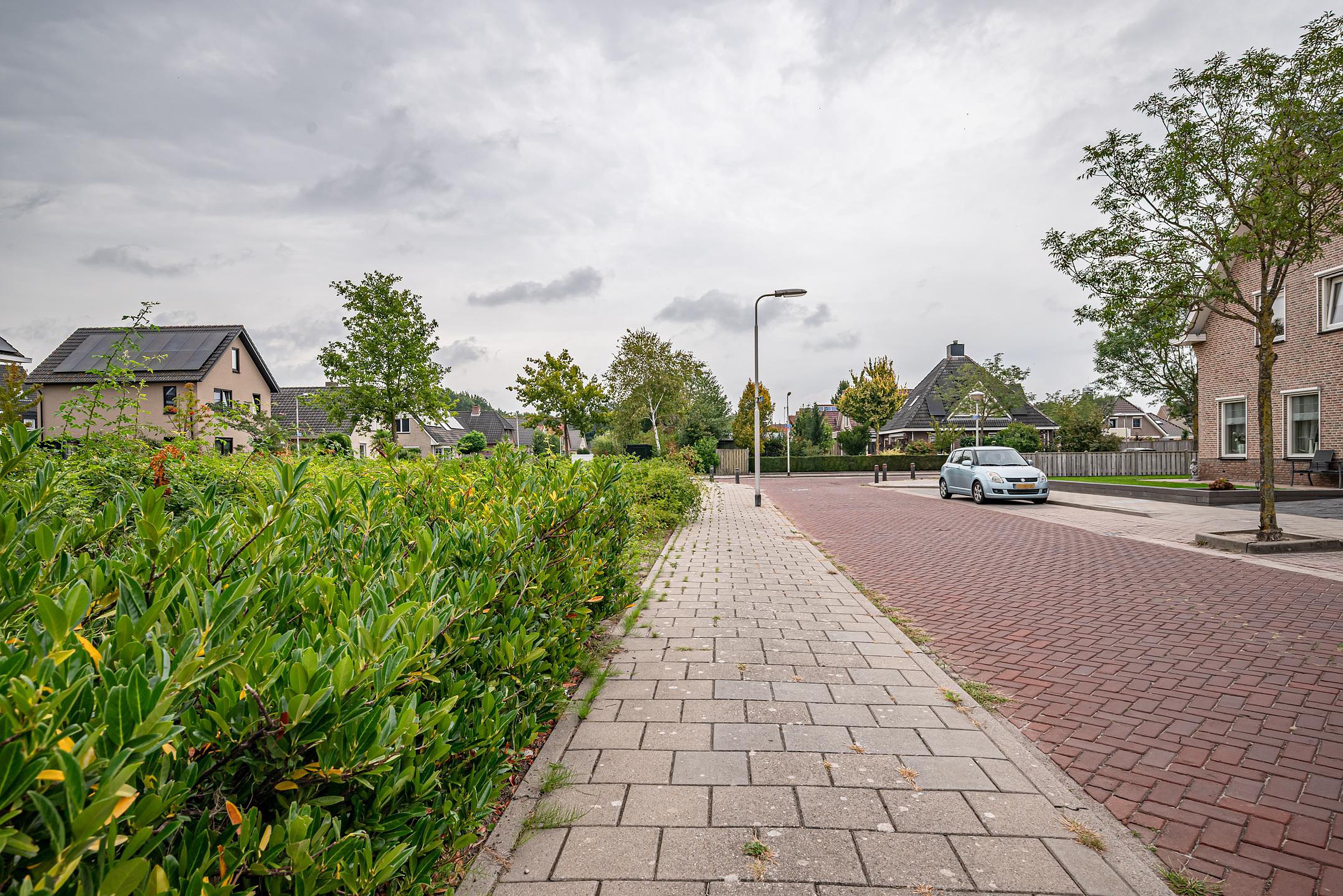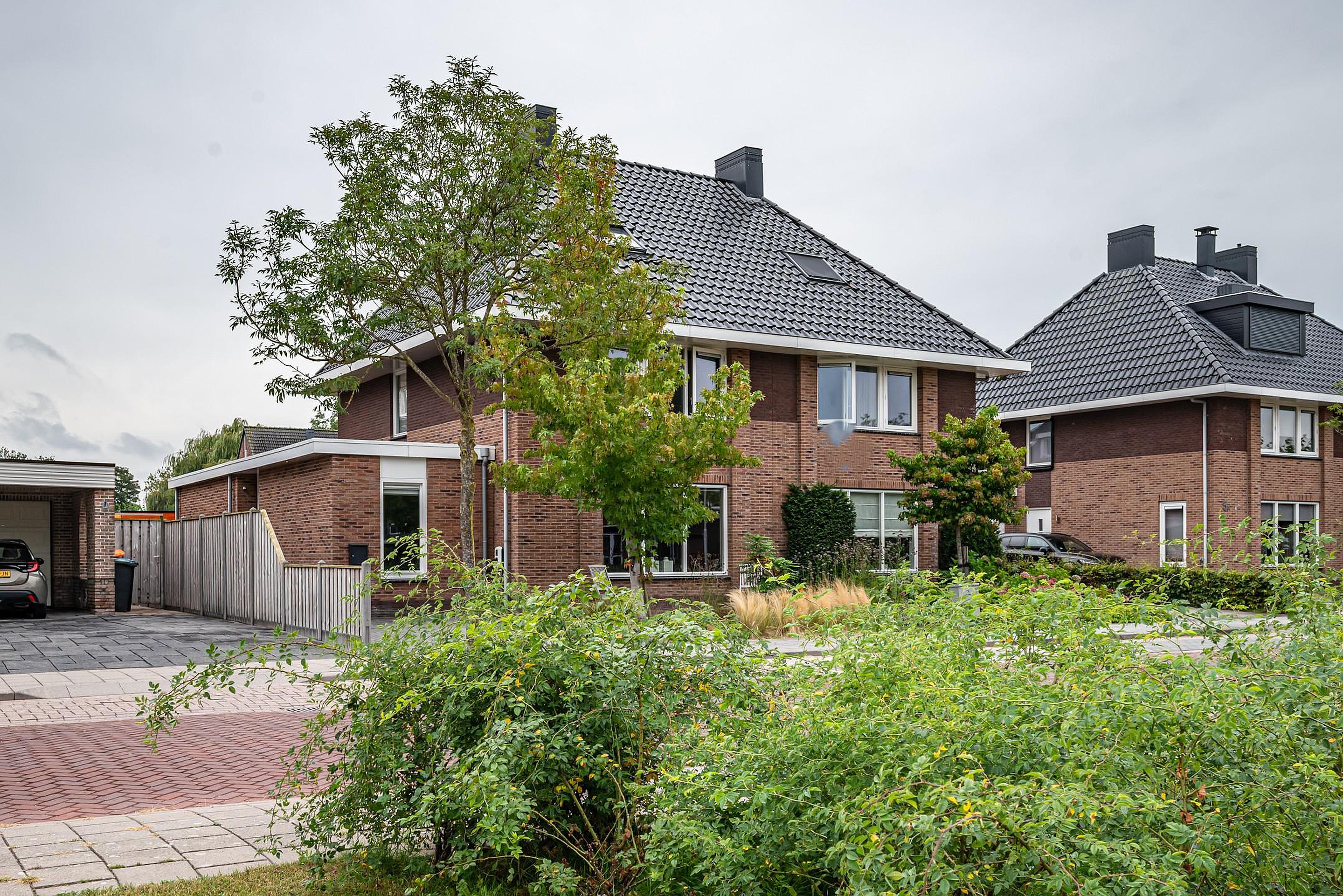 De fraai aangelegde achtertuin op het zuidoosten biedt een sfeervolle overkapping met berging (afmeting 6,05 x 3,37 meter), sierbestrating, bordes, zonwering en volop privacy. Aan de voorzijde vindt u een verzorgde tuin met oprit voor de auto.