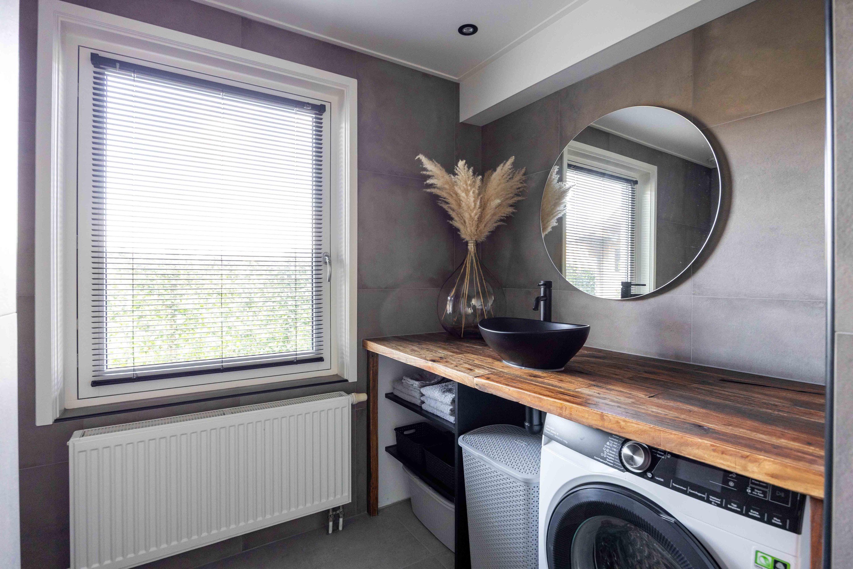 Via de entree met toilet en meterkast kom je in de lichte woonkamer, waar direct de moderne en sfeervolle uitstraling opvalt. De woonkamer en eetkamer vormen één ruim geheel met veel lichtinval dankzij de grote ramen en openslaande deuren naar de tuin. De ruimte voelt open en uitnodigend aan – perfect voor gezellige momenten met familie of vrienden.