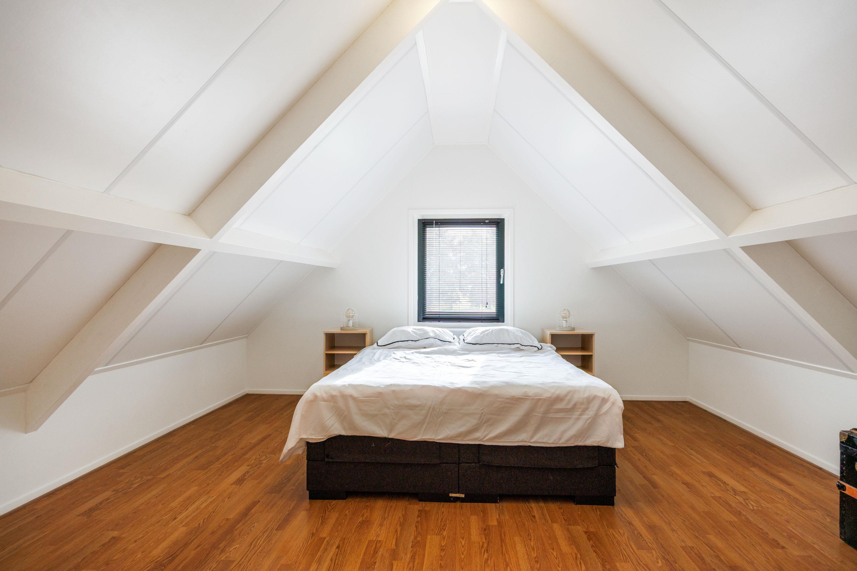 Op de verdieping bevinden zich drie comfortabele slaapkamers, geschikt voor in totaal zes slaapplaatsen. Elke kamer heeft een eigen, warme sfeer en is voorzien van voldoende opbergruimte. De royale slaapkamer aan de achterzijde voelt bijzonder ruim aan dankzij de hoge nok, en de twee slaapkamers aan de zijkanten zijn ideaal voor logees of kinderen.