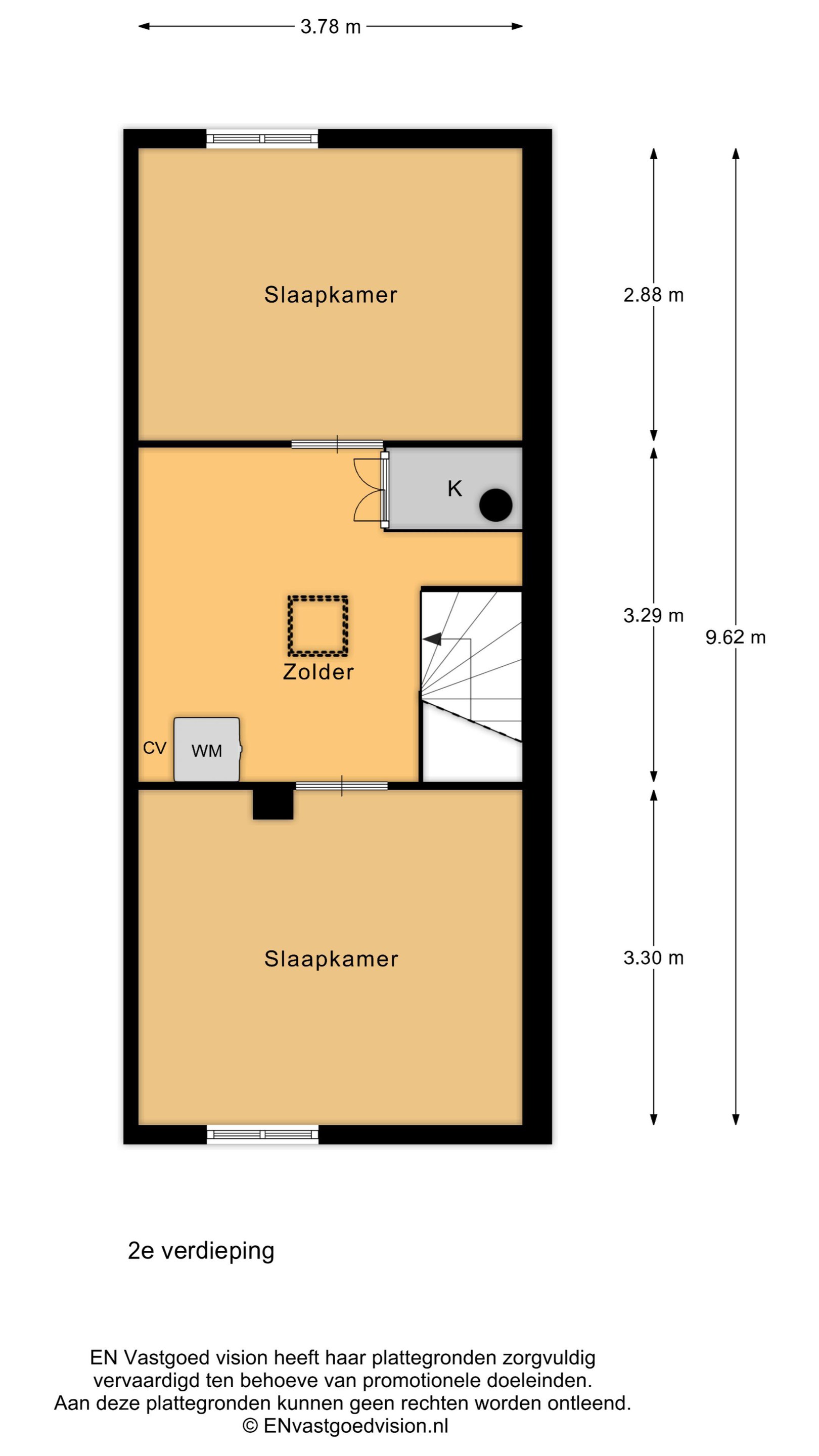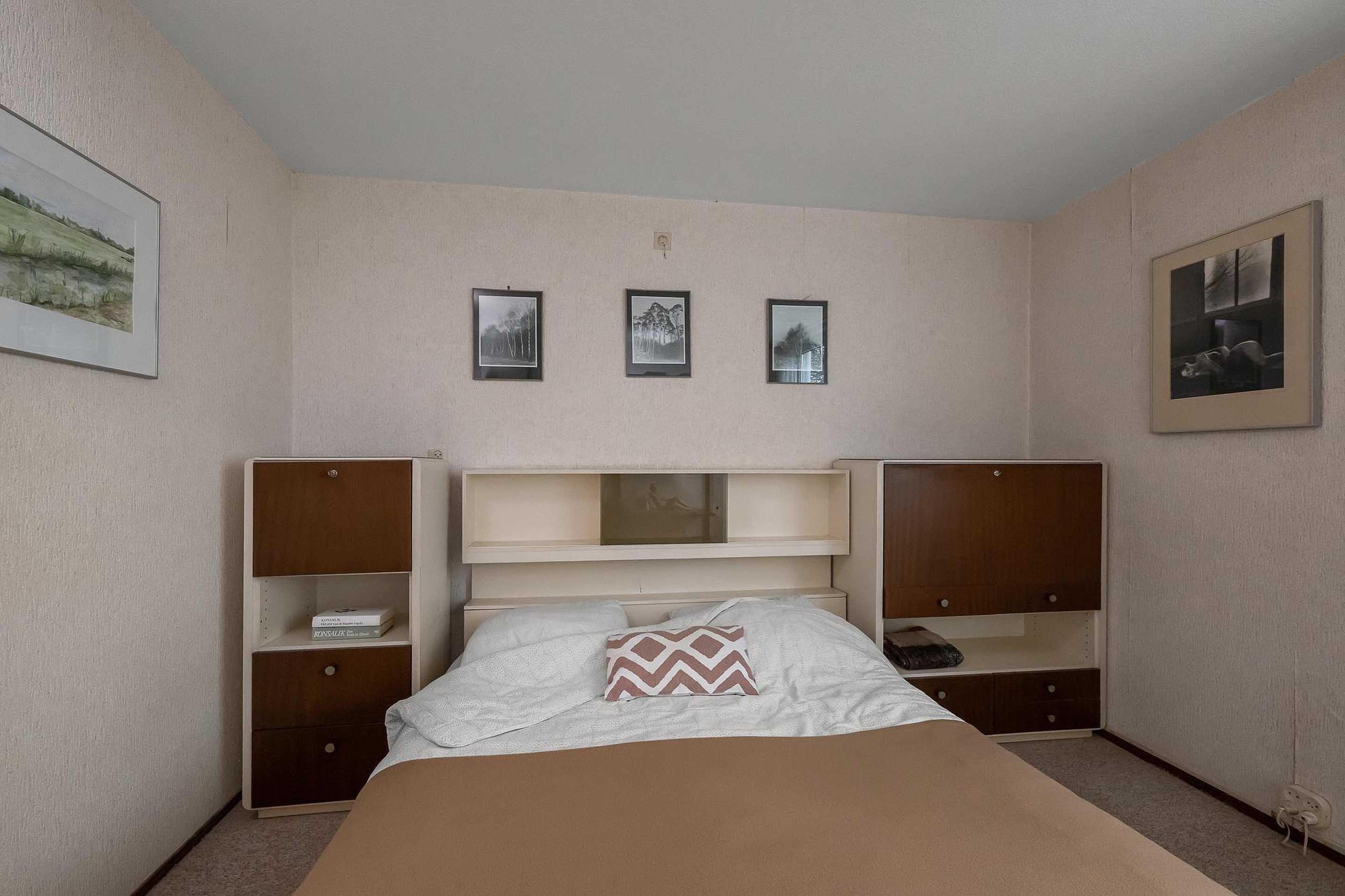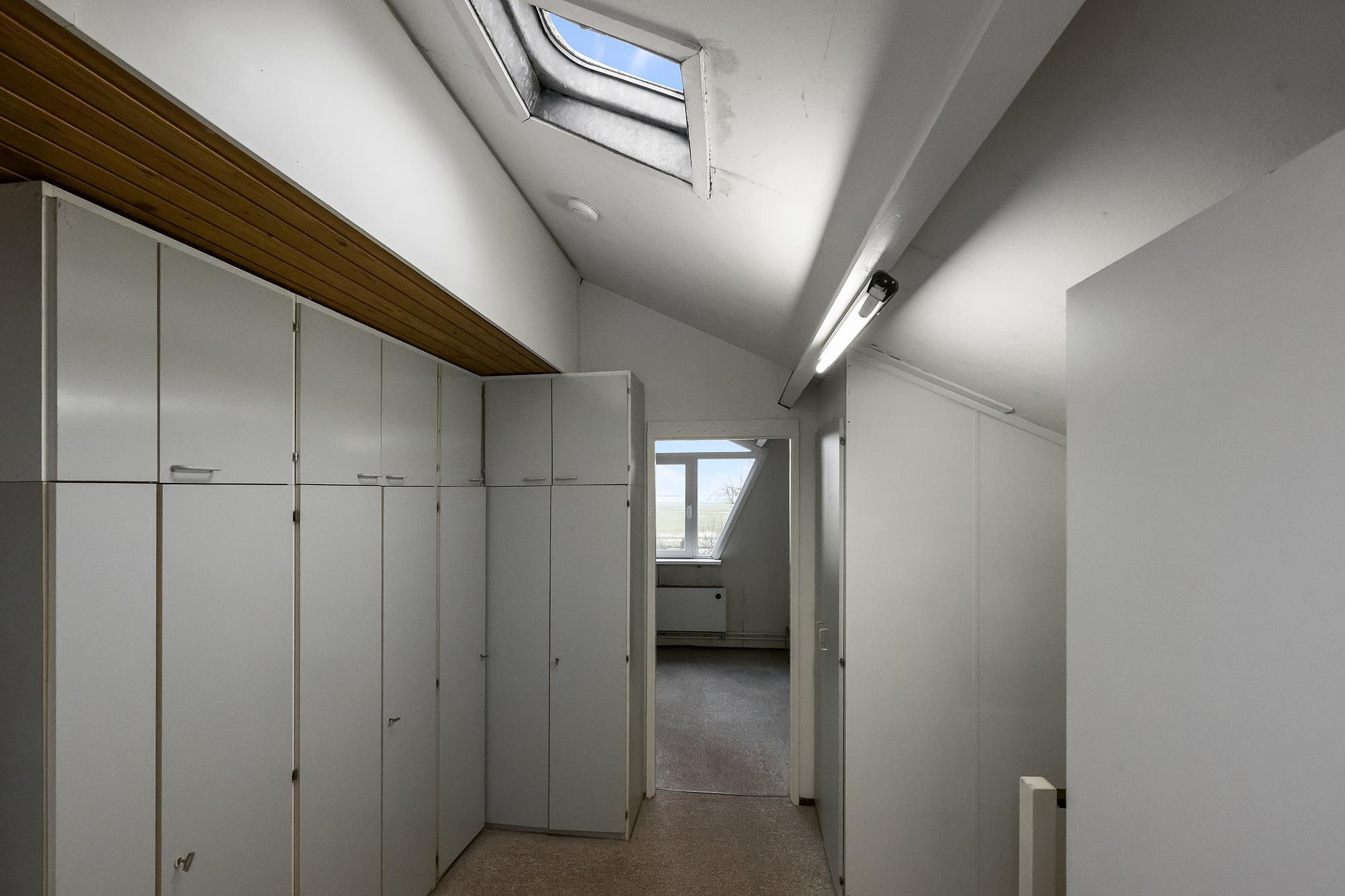 Via een vaste trap bereik je de zolderverdieping. Hier vind je een ruime overloop met bergruimte, de cv-installatie en aansluitingen voor de wasmachine. Daarnaast zijn er nog twee volwaardige slaapkamers. Dankzij de hoogte van het dak voelen deze kamers extra ruim en licht aan.