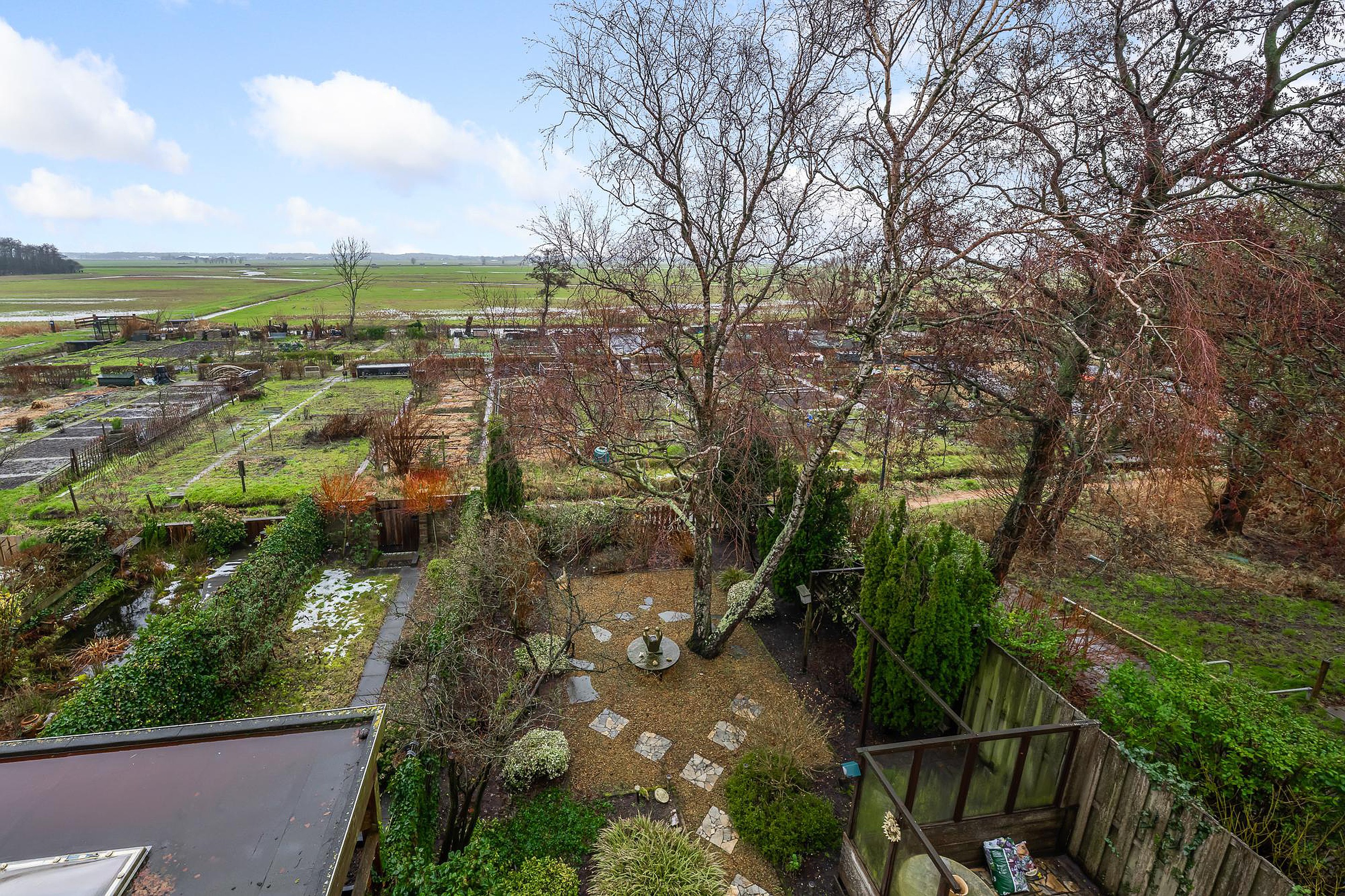 Wat deze woning echt bijzonder maakt, is de ligging aan de rand van de polder. Vanuit de tuin kijk je weids uit over de weilanden, helemaal richting Castricum. Vanaf de middag tot in de avond geniet je hier van de zon en word je beloond met schitterende zonsondergangen, een uitzicht dat nooit verveelt.