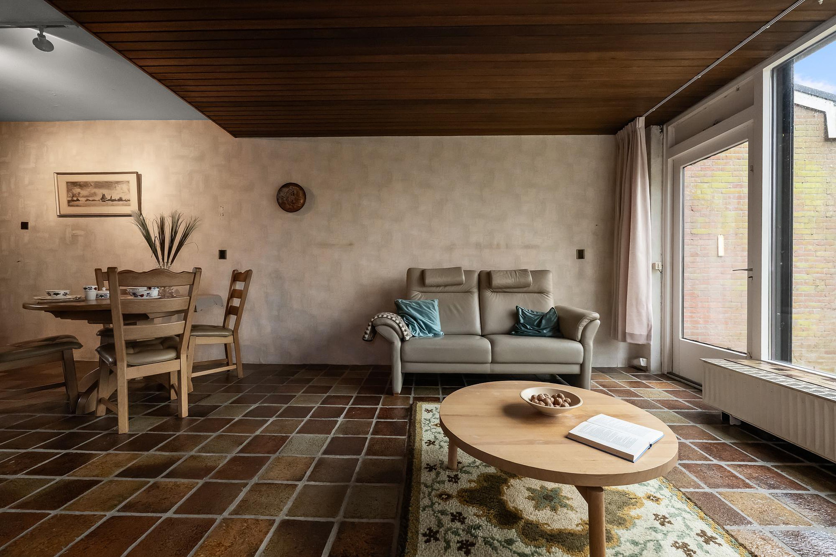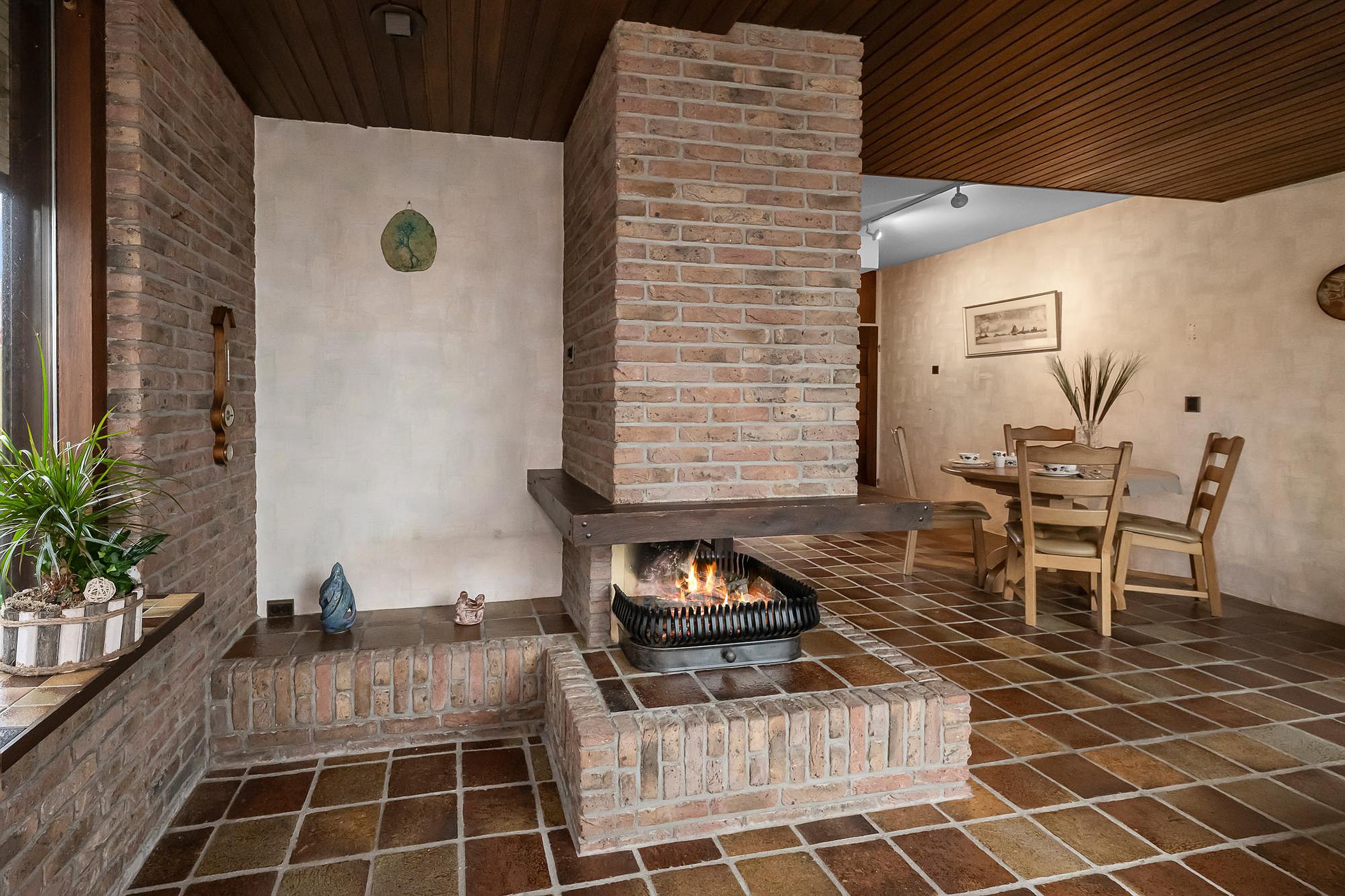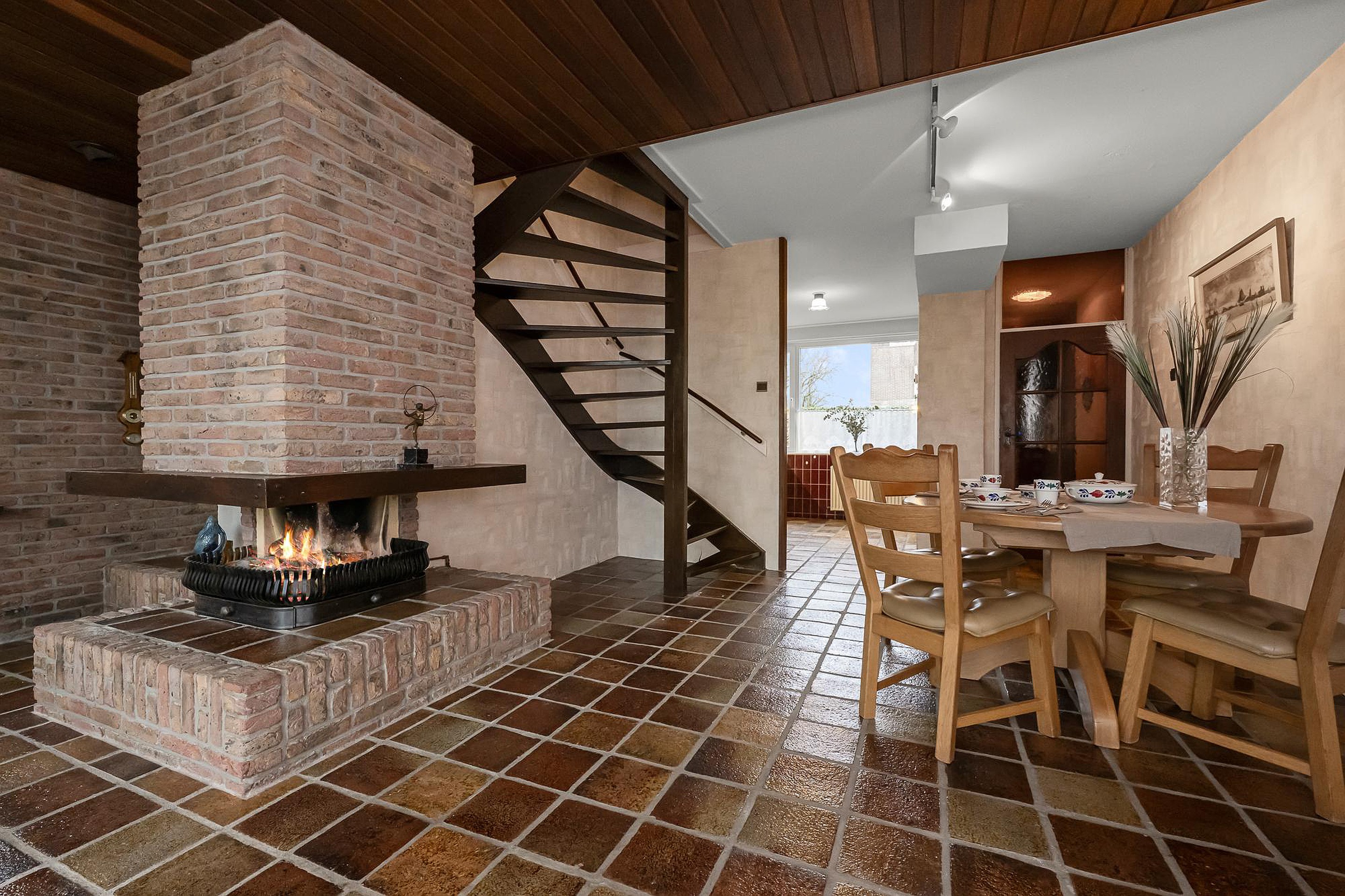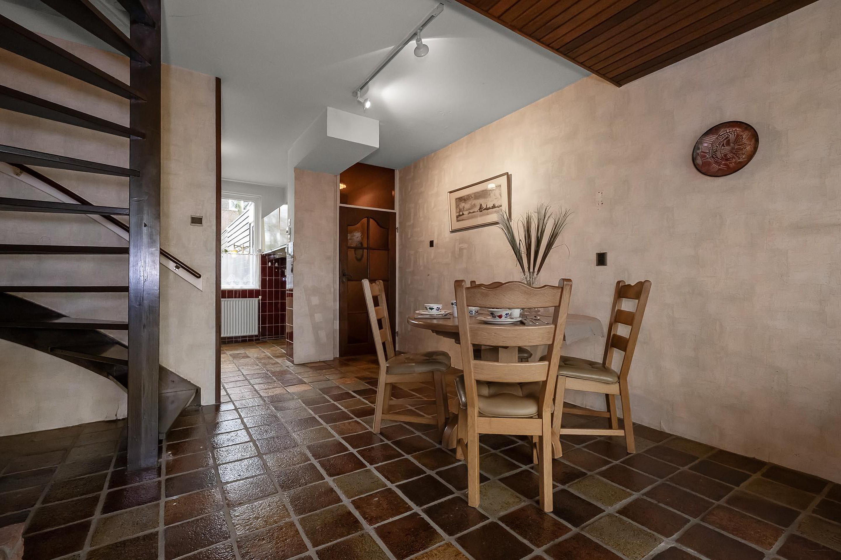 Via de entree kom je in de hal met toilet en garderoberuimte. Vanuit hier loop je door naar de woonkamer. De woonkamer is ruim opgezet en voorzien van een plavuizenvloer en een open haard, wat zorgt voor een gezellige sfeer. Grote ramen bieden veel lichtinval én een prachtig uitzicht op de tuin en de polder.
