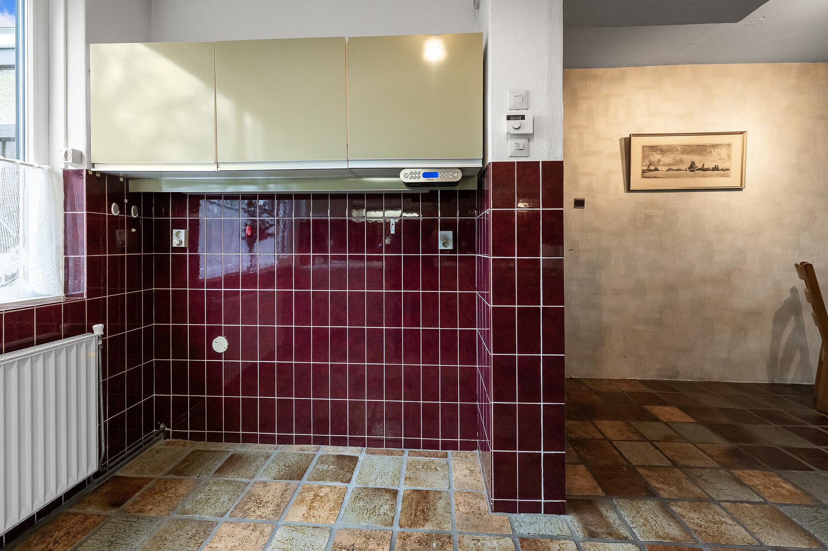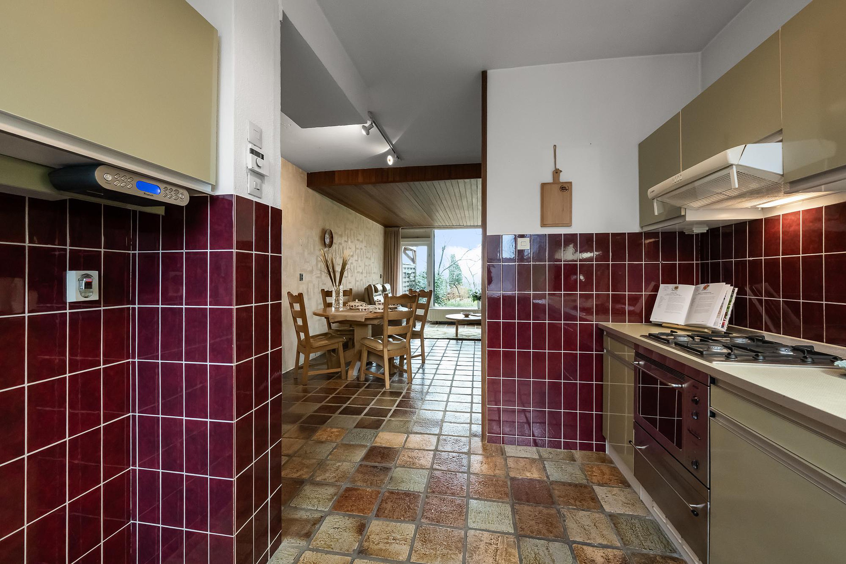 De keuken bevindt zich aan de voorzijde van de woning.