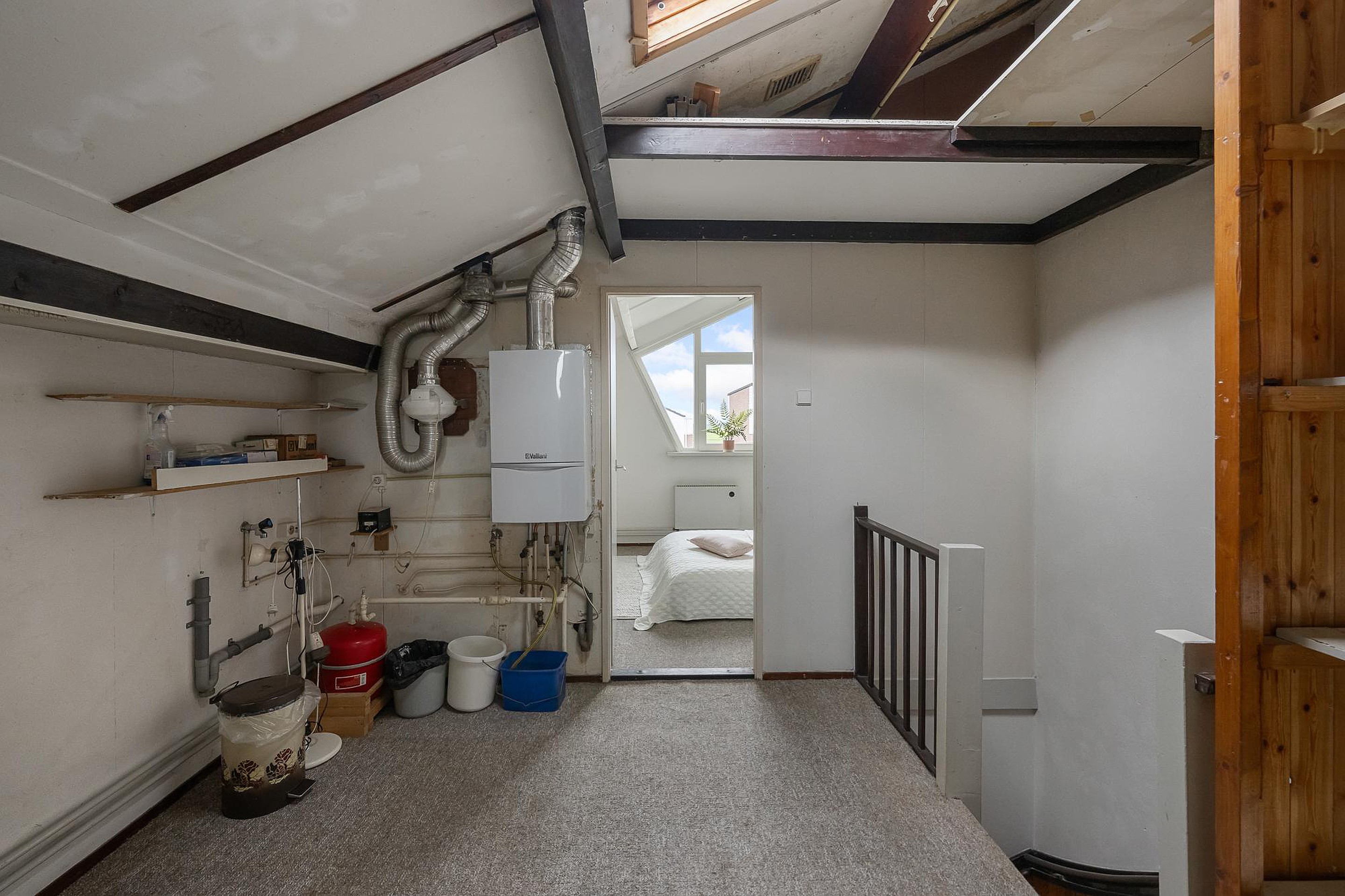 Via de vaste trap bereik je de royale zolder. Hier vind je een ruime overloop met extra bergruimte, de cv-ketel en aansluitingen voor de wasmachine. Daarnaast zijn er nog twee ruime slaapkamers, zodat ieder gezinslid zijn of haar eigen plekje heeft. Dankzij de hoge plafonds voelen de kamers extra ruim aan en geven ze een speels effect.